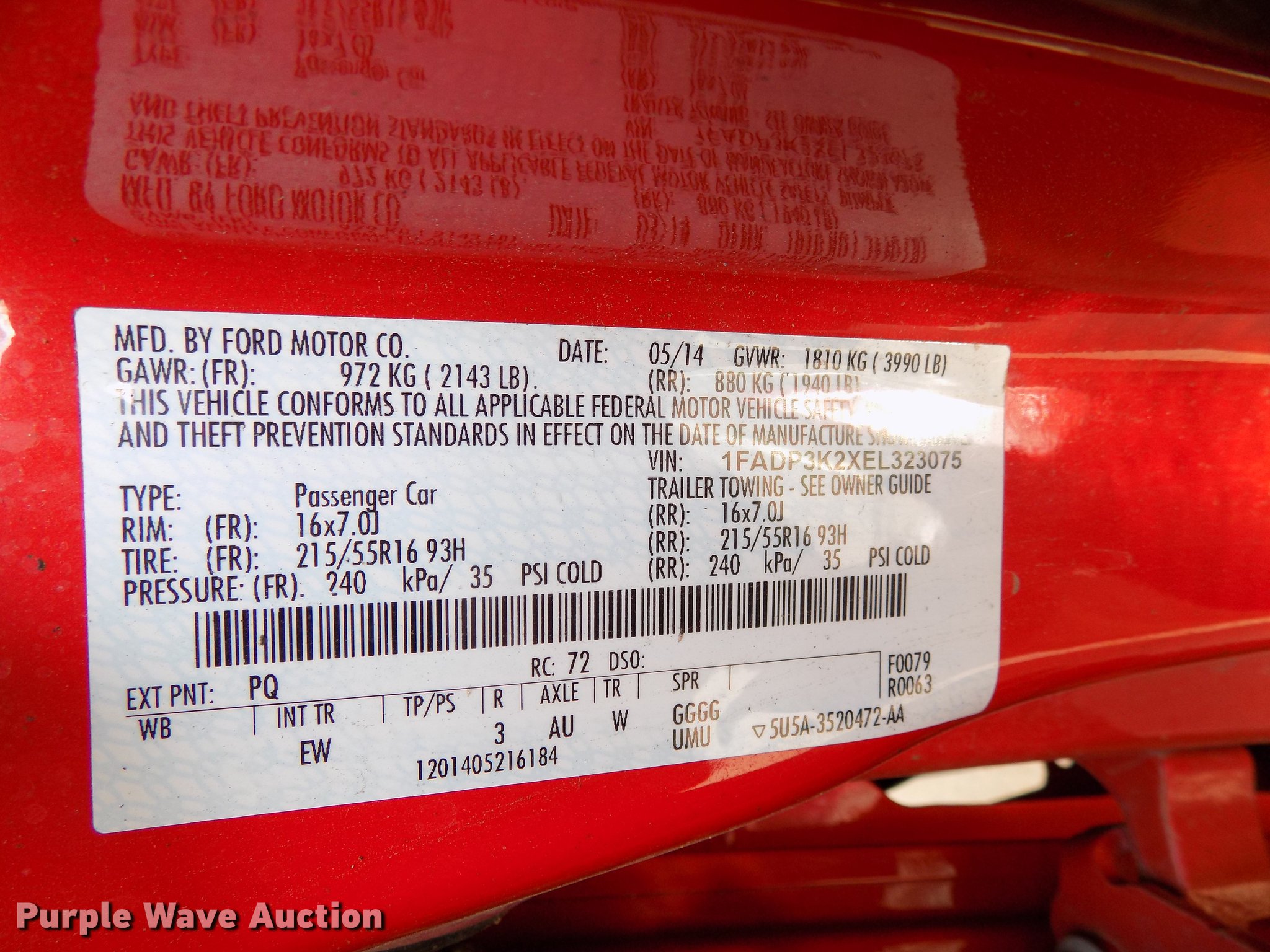 Purple Wave is selling a used Passenger Vehicle in Kansas. This item is a 2014 Ford Focus with the following: 120,115 miles on odometer, 2.0L L4 DOHC 16V gas engine, Automatic transmission, AC and heat, Tilt, Cruise, AM/FM, Power windows, locks, and mirrors, Cloth interior, 215/55R16 tires