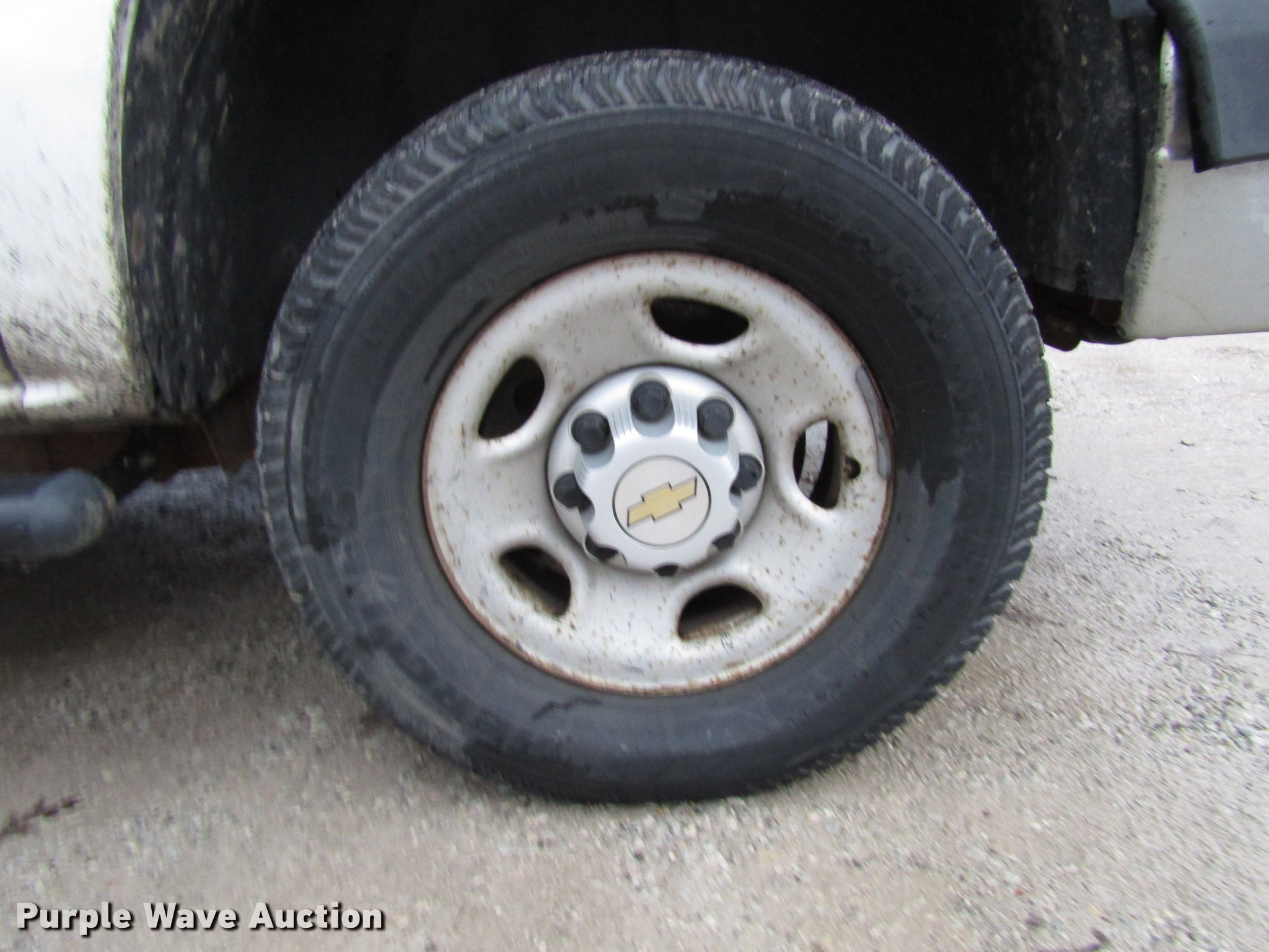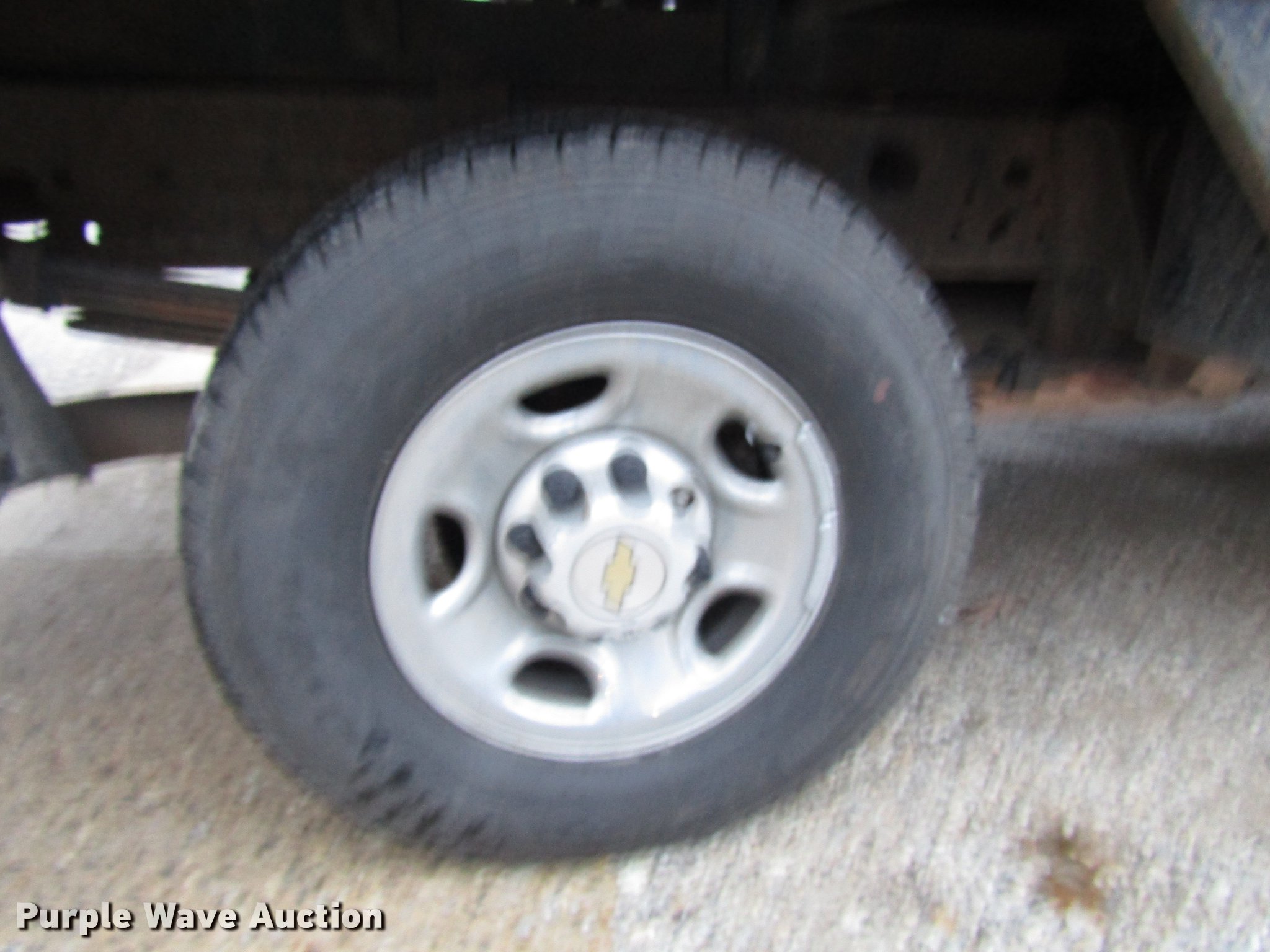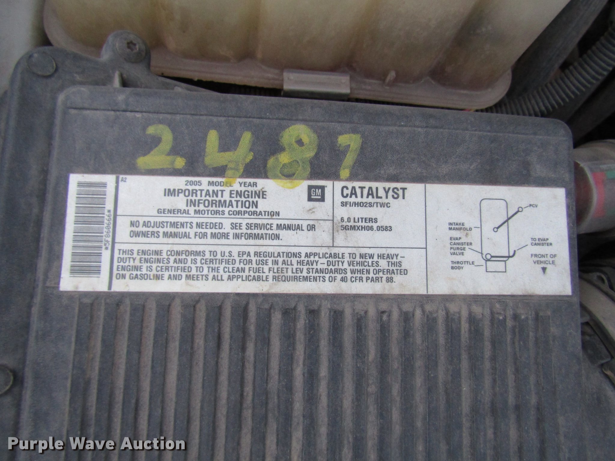 Purple Wave is selling a used 3/4 or 1 Ton Pickup or Van in Illinois. This item is a 2005 Chevrolet Silverado 2500HD Crew Cab flatbed pickup truck with the following: 260,937 miles on odometer, 6.0L V8 OHV 16V gas engine, Automatic transmission, AC and heat, Tilt, Cruise, AM/FM, Vinyl interior, Backup camera, Front tow hooks, Running boards, 8.5'L x 80"W flatbed, Gooseneck ball, Receiver hitch, Trailer wiring, 245/75R16 tires, Airbag light on, Check engine light on