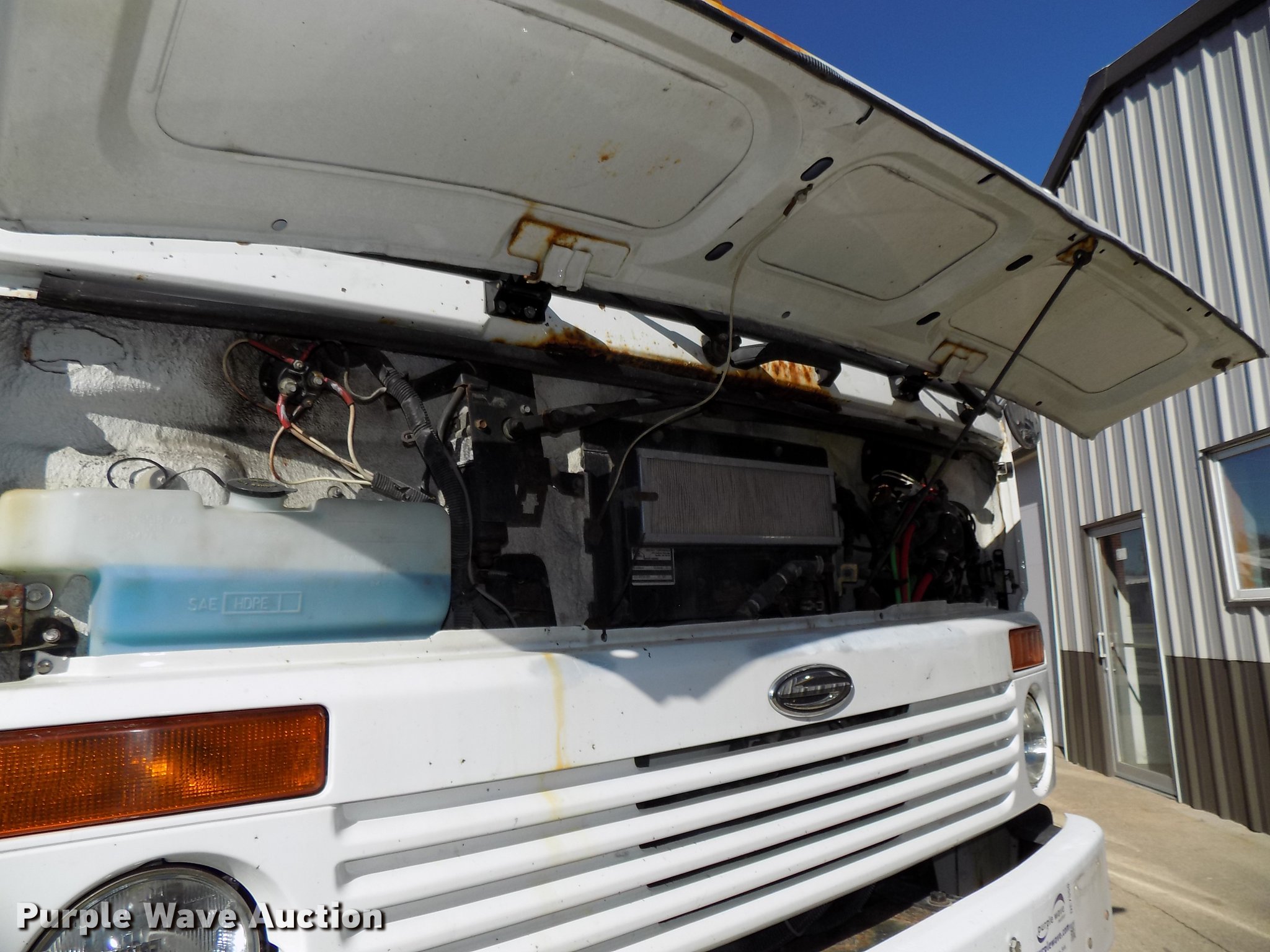 Purple Wave is selling a used Box Truck in Iowa. This item is a 2007 Sterling SC8000 shredder box truck with the following: 228,736 miles on odometer, 22,165 hours on meter, Cummins ISB 5.9L L6 turbo diesel engine, Automatic transmission, Single axle, Heat, Cruise, AM/FM, Heated mirrors, Air suspension seat, Backup alarm, Front tow hooks, Passenger daylight doors, PTO, Wet kit, Single exhaust stack, Toolboxes, Durabody shredder box bed, 22.5'L x 101"W, 85"H I.D., Aluminum floor, Swing side door, Swinging rear door, 68.5"W rubber conveyor belt, 13'9"L I.D. conveyor section, 43"W side lift gate, Hydraulic lift and extend, Serial 18641NT, Single fuel tank, Spring suspension, Air brakes, 206" wheelbase, 11R22.5 tires, GVWR 33,000 lbs, FAWR 12,000 lbs, RAWR 21,000 lbs, Some components missing