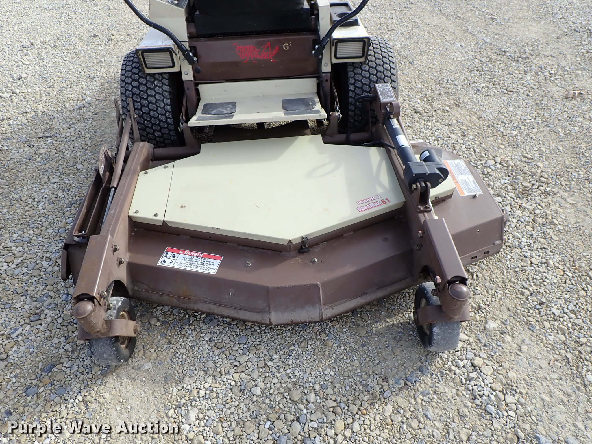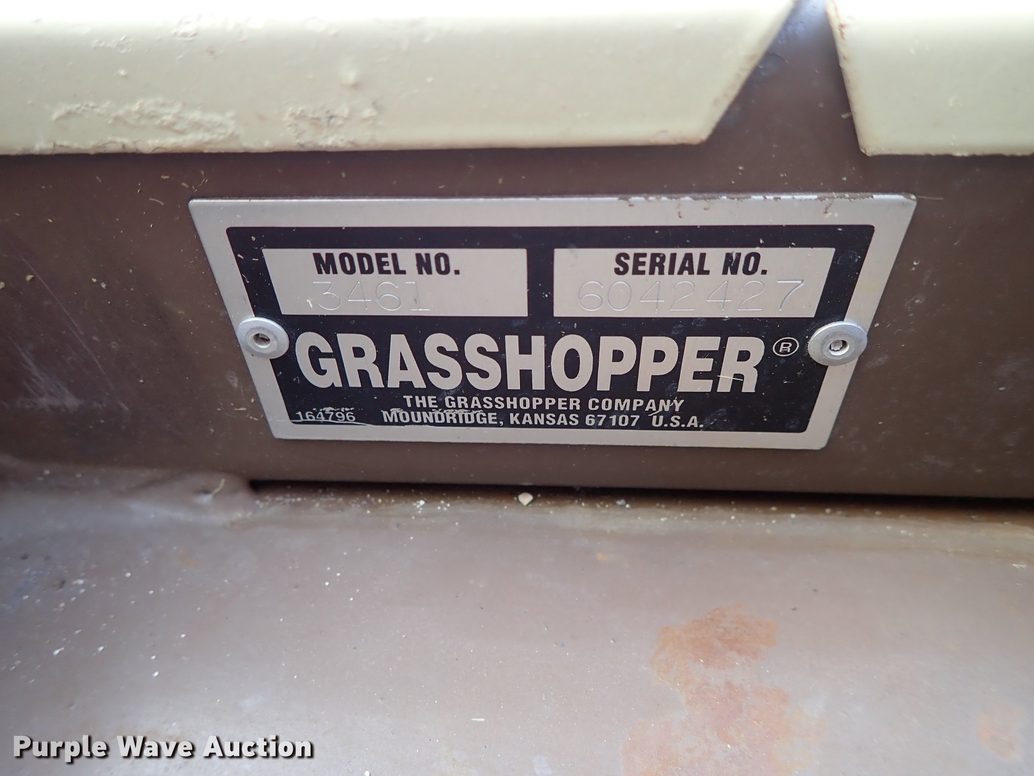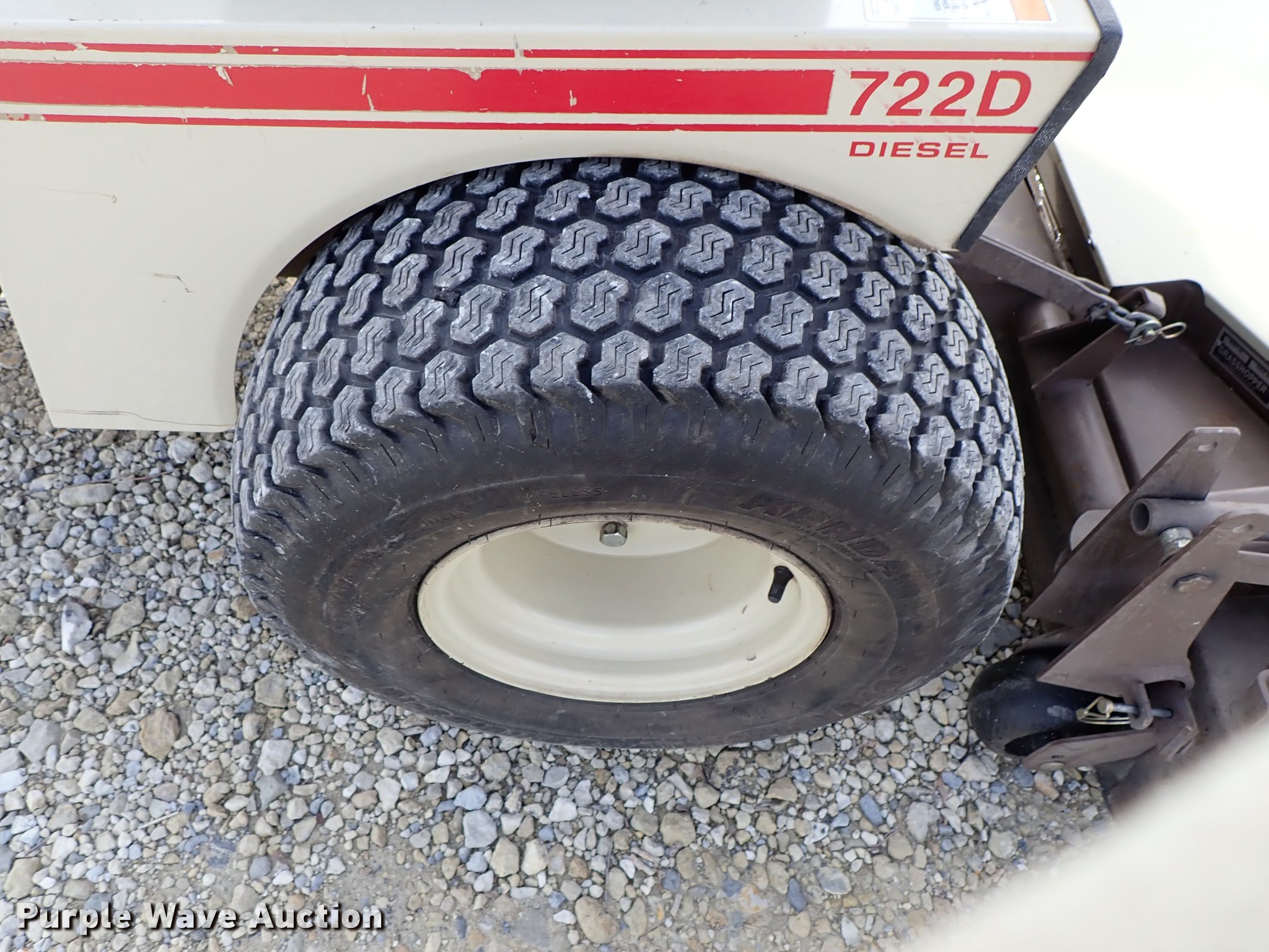 Purple Wave is selling a used Commercial Turf Mower in Kansas. This item is a Grasshopper 722D ZTR lawn mower with the following: 1,850 hours on meter, 61" cut, Kubota D902-E three cylinder diesel engine, Hydrostatic transmission, Work lights, Electric folding deck, 22x10.00-10 tires, Serial 6042427