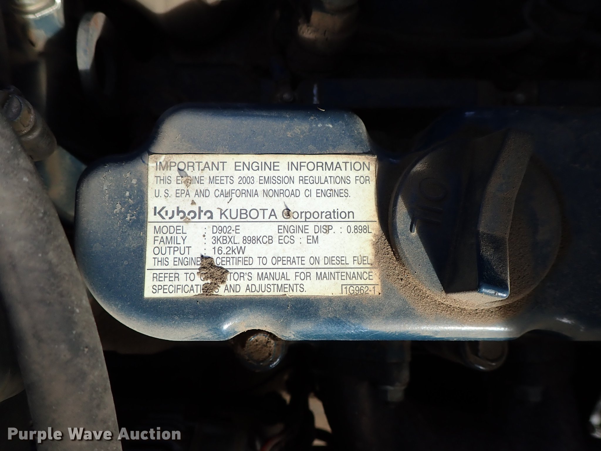 • Kubota D902-E three cylinder diesel engine