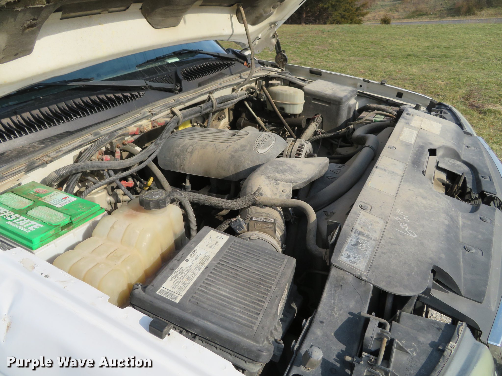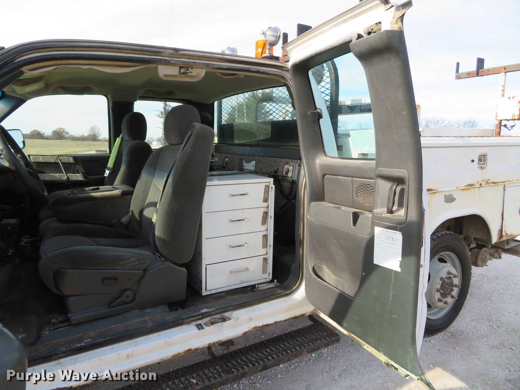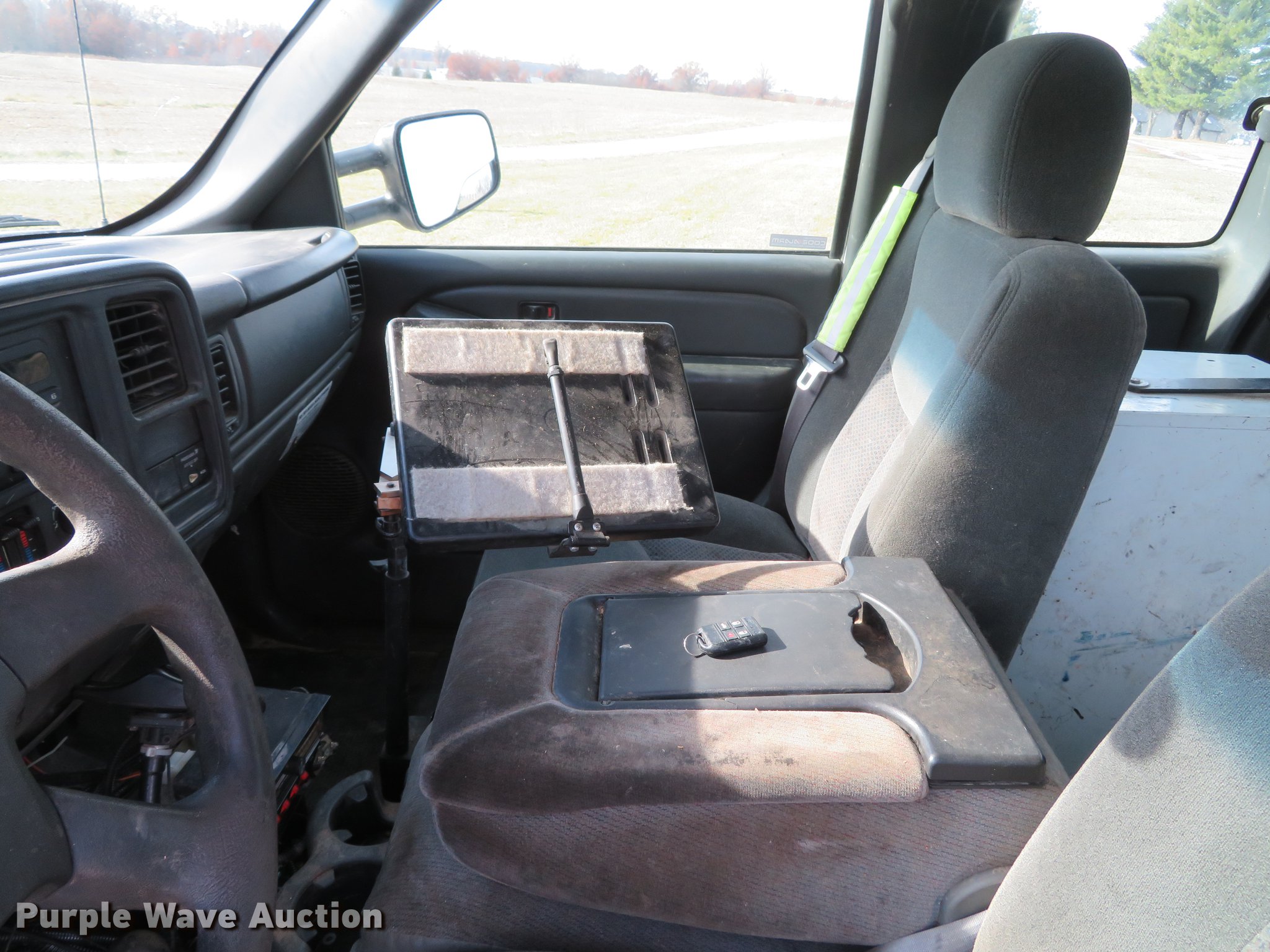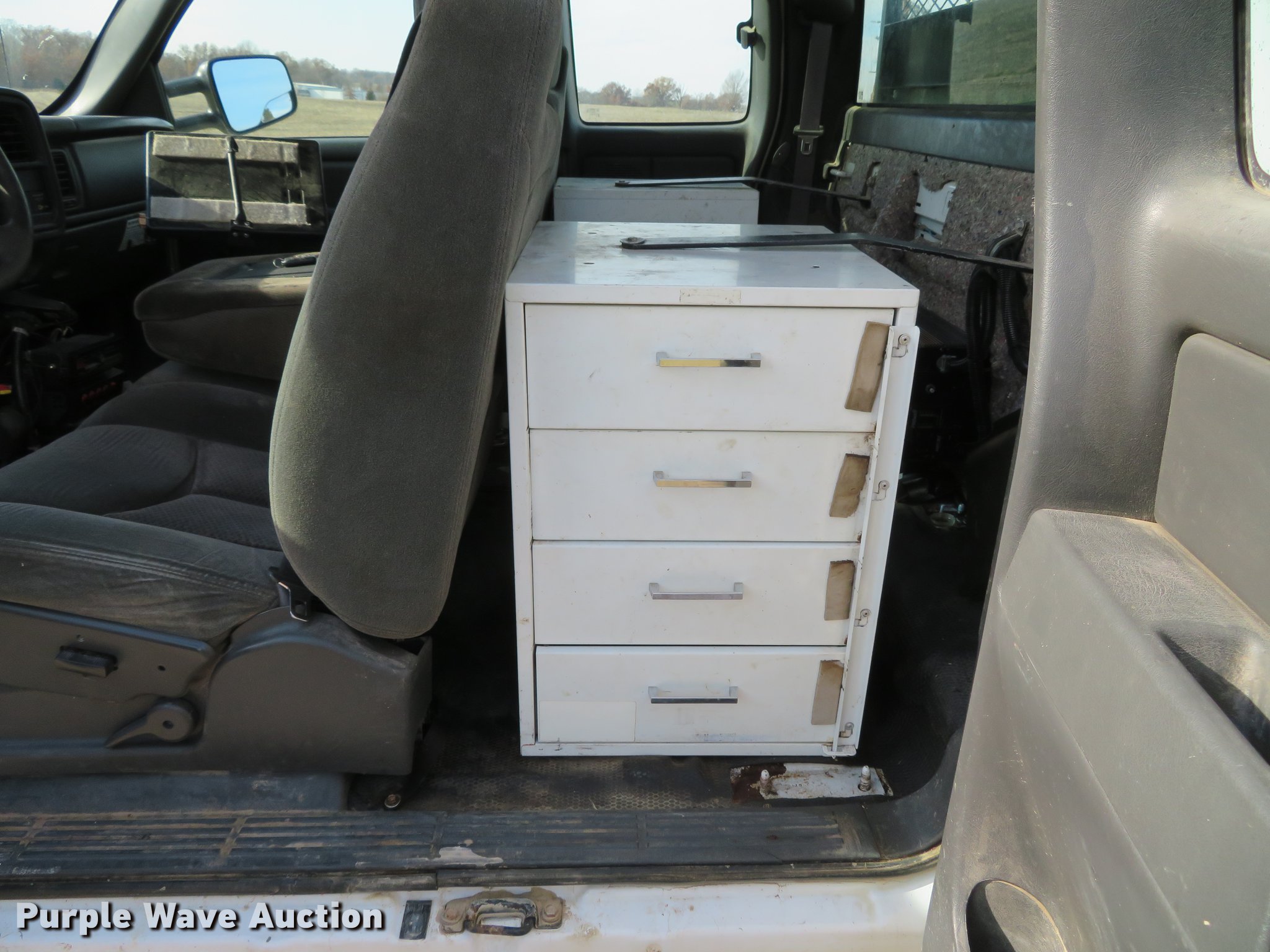 Purple Wave is selling a used 3/4 or 1 Ton Pickup or Van in Missouri. This item is a 2005 Chevrolet Silverado 2500HD Ext. Cab pickup truck with the following: 271,554 miles on odometer, 6,901 hours on meter, 6.0L V8 OHV 16V gas engine, Automatic transmission, Four wheel drive, AC and heat, Tilt, Cruise, AM/FM, Cloth interior, (2) beacon lights, Laptop stand, Power inverter, Reading LP78GBASW-7 enclosed utility bed, 6.5'L, Slide-out drawers, Shelving, Reel with extension cord, Work lights, Directional traffic light board, 225/70R19.5 tires, Check airbag light on, ABS light on, Non-operational radio, Rear seat missing, Driver side power seat inoperable, Driver side rear exterior door handle inoperable, Hi-Rail wheels have been cut-off