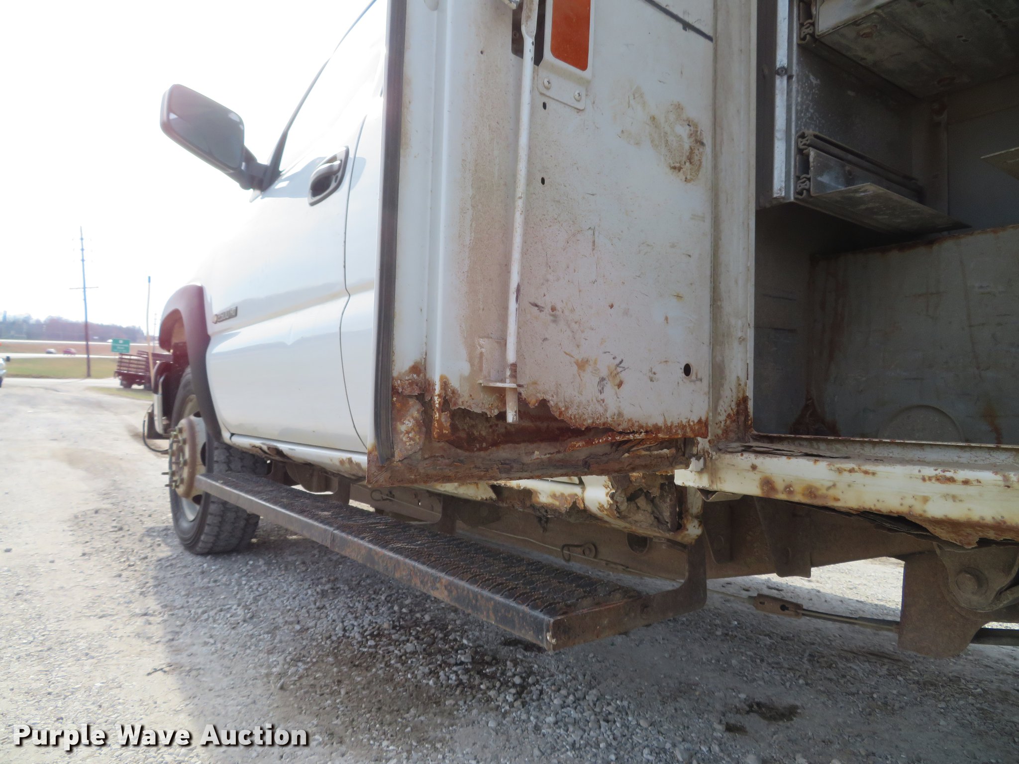 2005 Chevrolet Silverado 2500HD Ext. Cab pickup truck. 271,554 miles on odometer, 6,901 hours on meter, 6.0L V8 OHV 16V gas engine, Automatic transmission, Four wheel drive, AC and heat, Tilt, Cruise, AM/FM, Cloth interior, (2) beacon lights, Laptop stand, Power inverter, Reading LP78GBASW-7 enclosed utility bed 6.5'L, Slide-out drawers, Shelving, Reel with extension cord, Work lights, Directional traffic light board, 225/70R19.5 tires, Check airbag light on, ABS light on, Non-operational radio, Rear seat missing, Driver side power seat inoperable, Driver side rear exterior door handle inoperable, Hi-Rail wheels have been cut-off. Missouri title. Title distribution may be delayed up to 30 days from verification of funds. Seller is a Missouri licensed motor vehicle dealer. Title will be assigned and distributed by the dealer. Please contact the seller for distribution questions. 1GCHK29U75E308520. Fruendly Auto Source, Inc.. 2177 W Outer Hwy 61. Moscow Mills, MO 63362