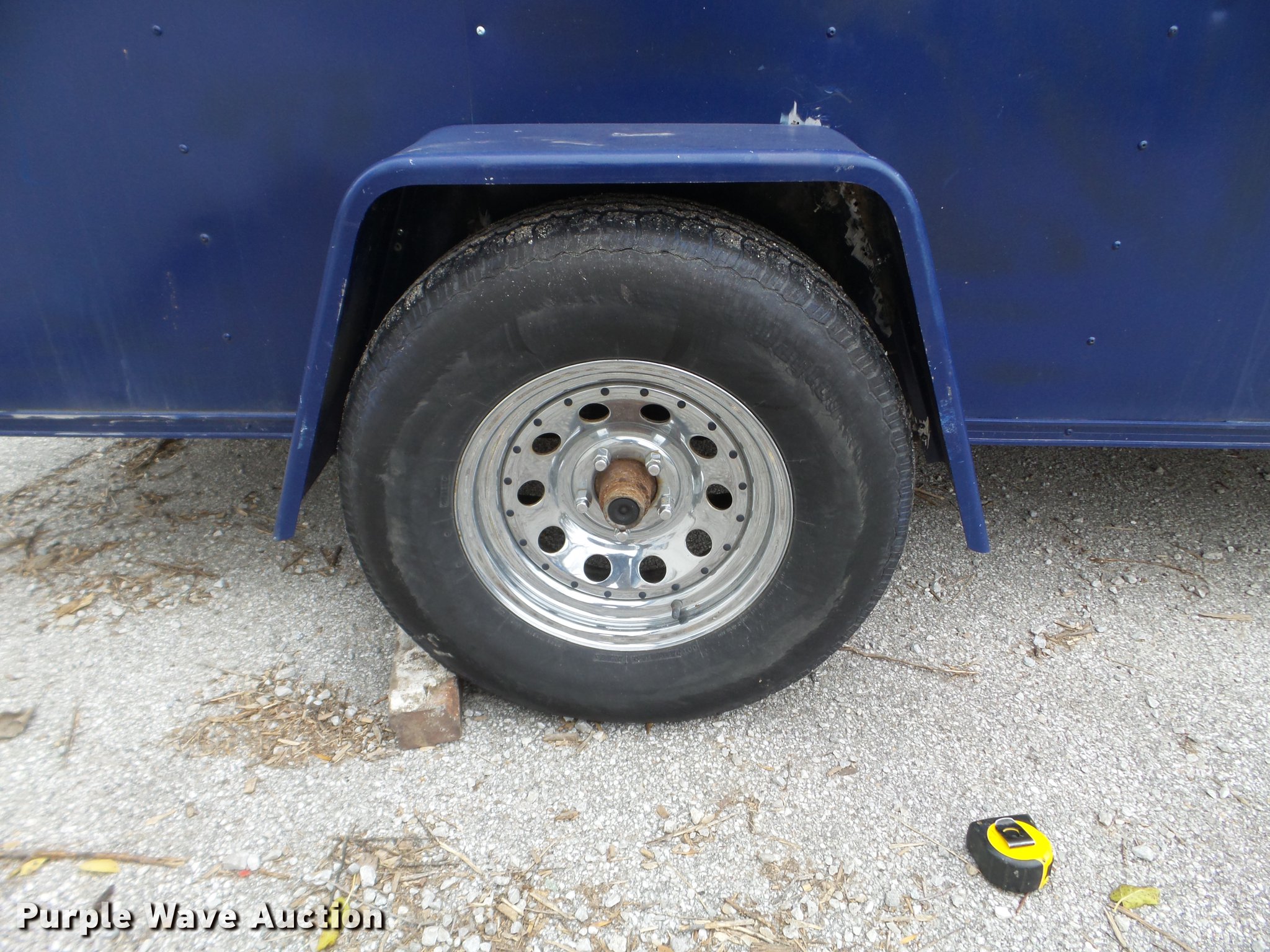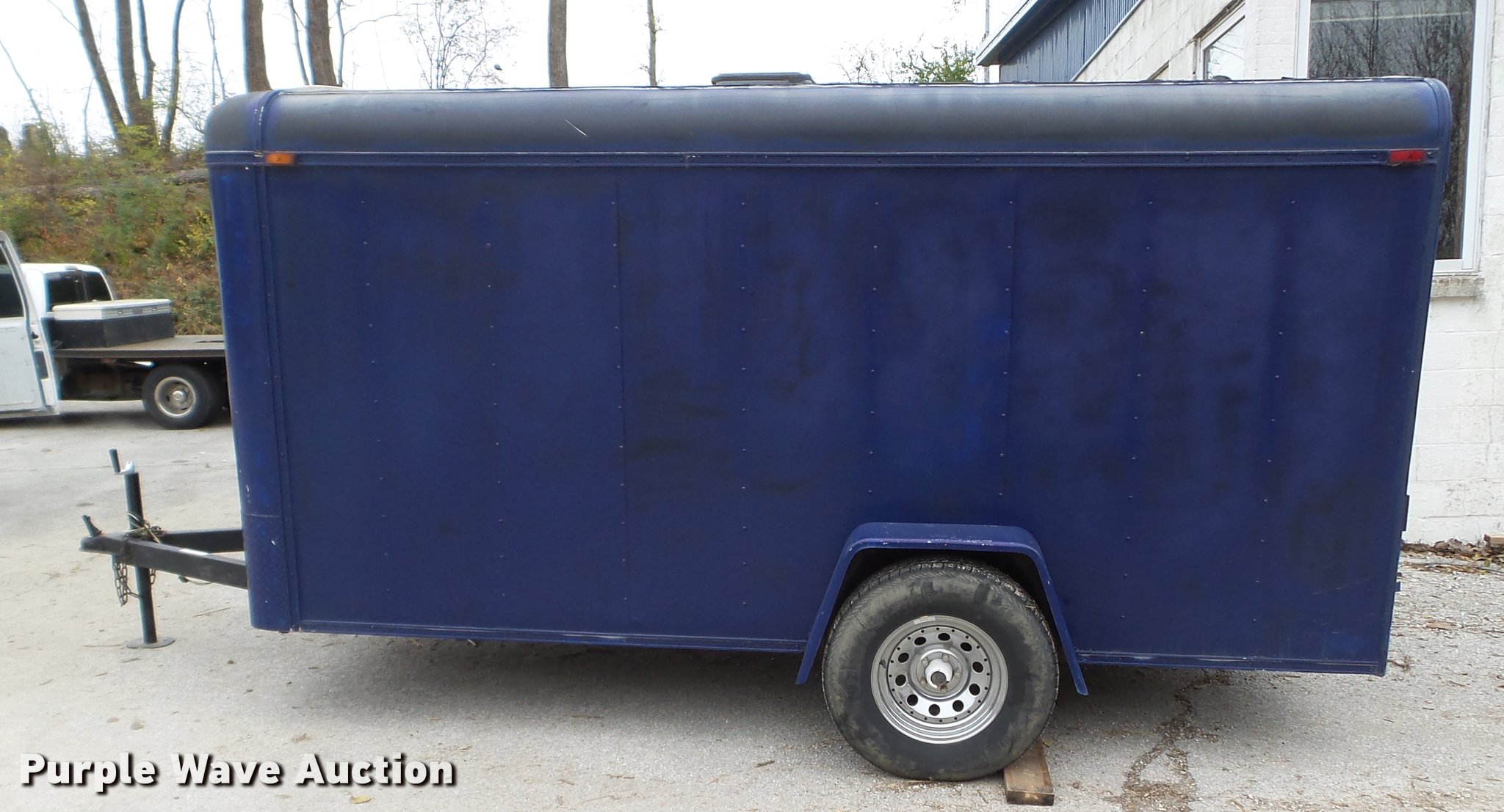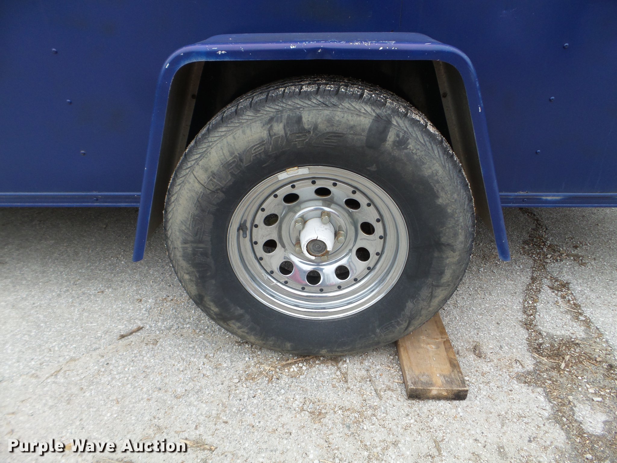Purple Wave is selling a used Enclosed Cargo Trailer in Iowa. This item is a Shadow Master enclosed cargo trailer with the following: 16'L x 76"W overall, 12.5" body, Wood deck, Left side door, Ramp door, D-ring tie downs, Ball hitch, Single leg landing gear, Spring suspension, Single axle, Aluminum wheels, 235/75R15 tires