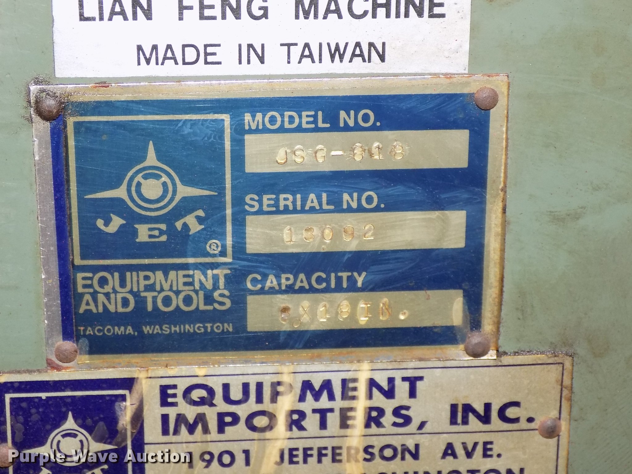 Purple Wave is selling a used Tools in Iowa. This item is a Jet JSG-618 metal surface grinder with the following: 6 x 18 capacity, Three phase, 200/220V or 400/440V, Four wire, Work light, Serial 13092