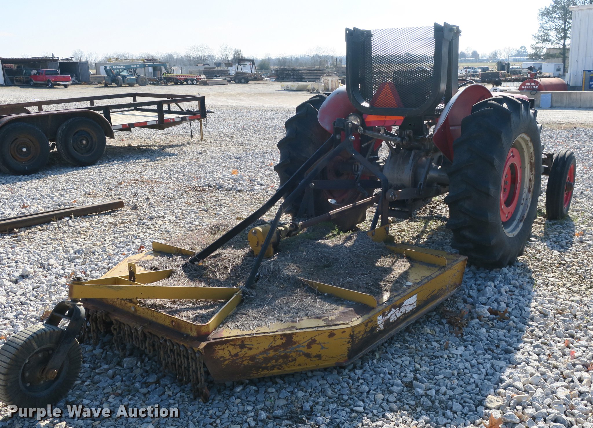 Purple Wave is selling a used Tractor in Arkansas. This item is a Massey-Ferguson 135 tractor with the following: 271 hours on meter, Three cylinder diesel engine, Multi-power transmission, 4F-1R gears, Folding ROPS, Three point, Top link, 540 PTO, Rotary mower, 74"W, 540 PTO, Three point, Rear wheel weights, 5.00-16 front tires, 13.6-28 rear tires, Engine issues, Unit starts, but will not stay running, Oil pressure sending unit leaks, has been removed and plugged