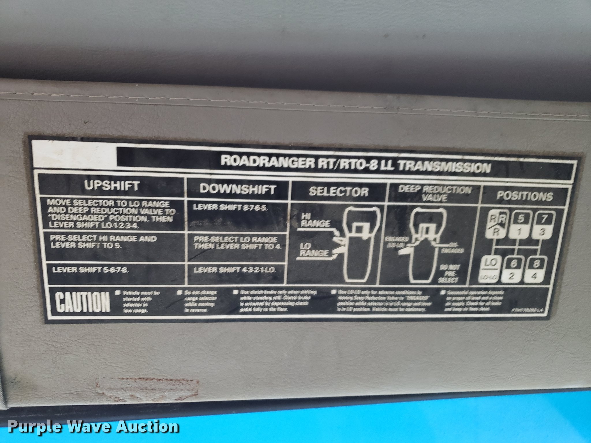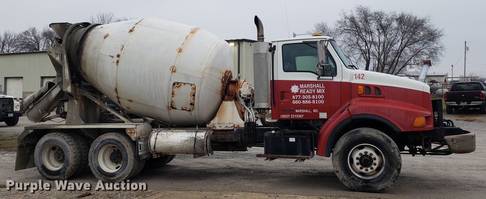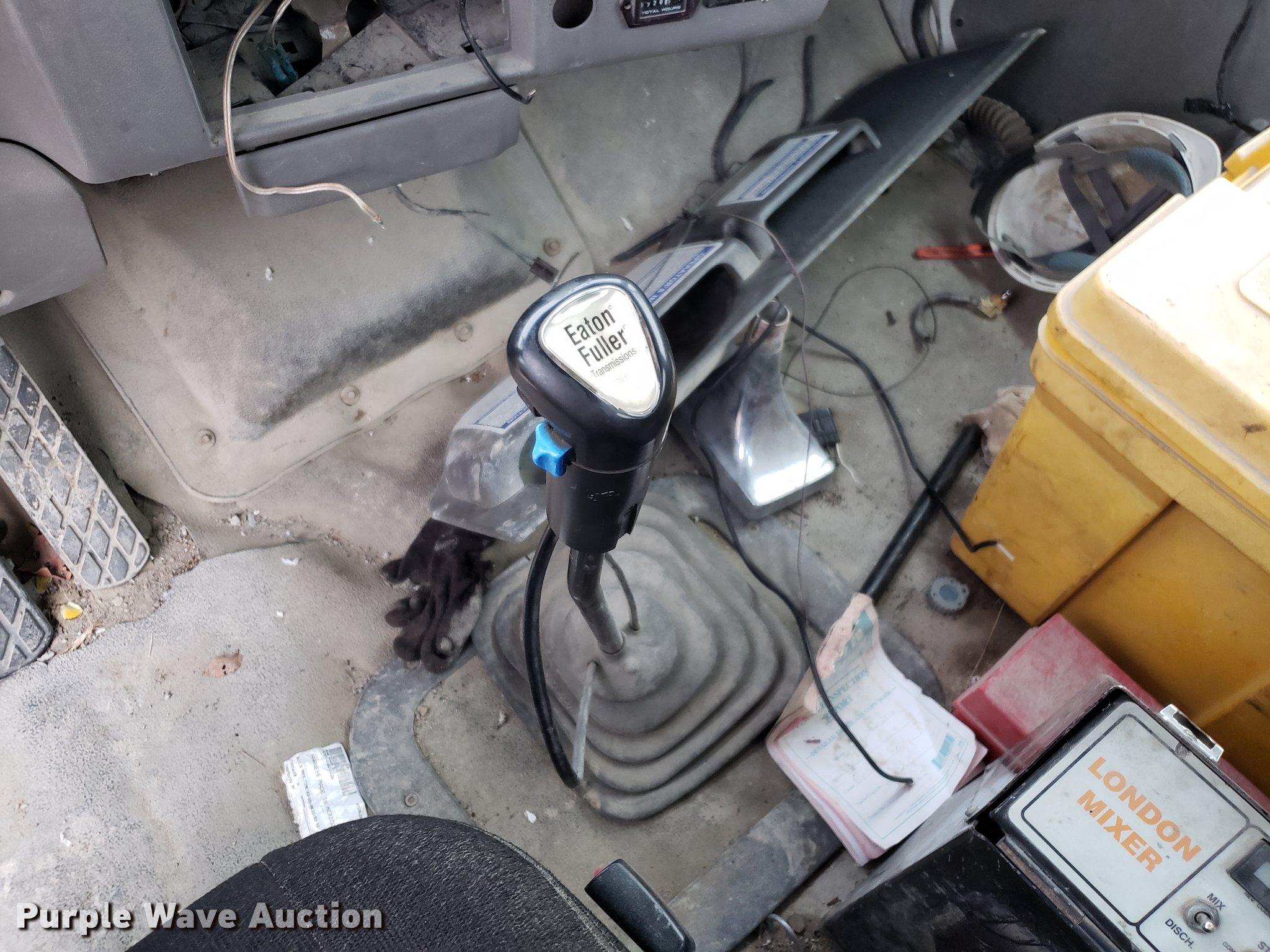 2000 Sterling L-Line ready mix truck. 146,643 miles on odometer, 8,720 hours on meter, Cummins ISC 8.3L L6 turbo diesel engine, Eaton Fuller eight speed manual transmission, Tandem axle, Heat, Cruise, Air suspension seat, Front mounted PTO, Landon nine cu.yd. mixer (3) chutes, Walking beam suspension, Air brakes, 425/65R22.5 front tires, 11R22.5 rear tires, GVWR 60,000 lbs, Unit# 142. Missouri title. Title distribution may be delayed up to 14 days from verification of funds. 2FZXMLCB1YAB49377. Fischer Concrete Services. 2300 Clinton Rd. Sedalia, MO 65301