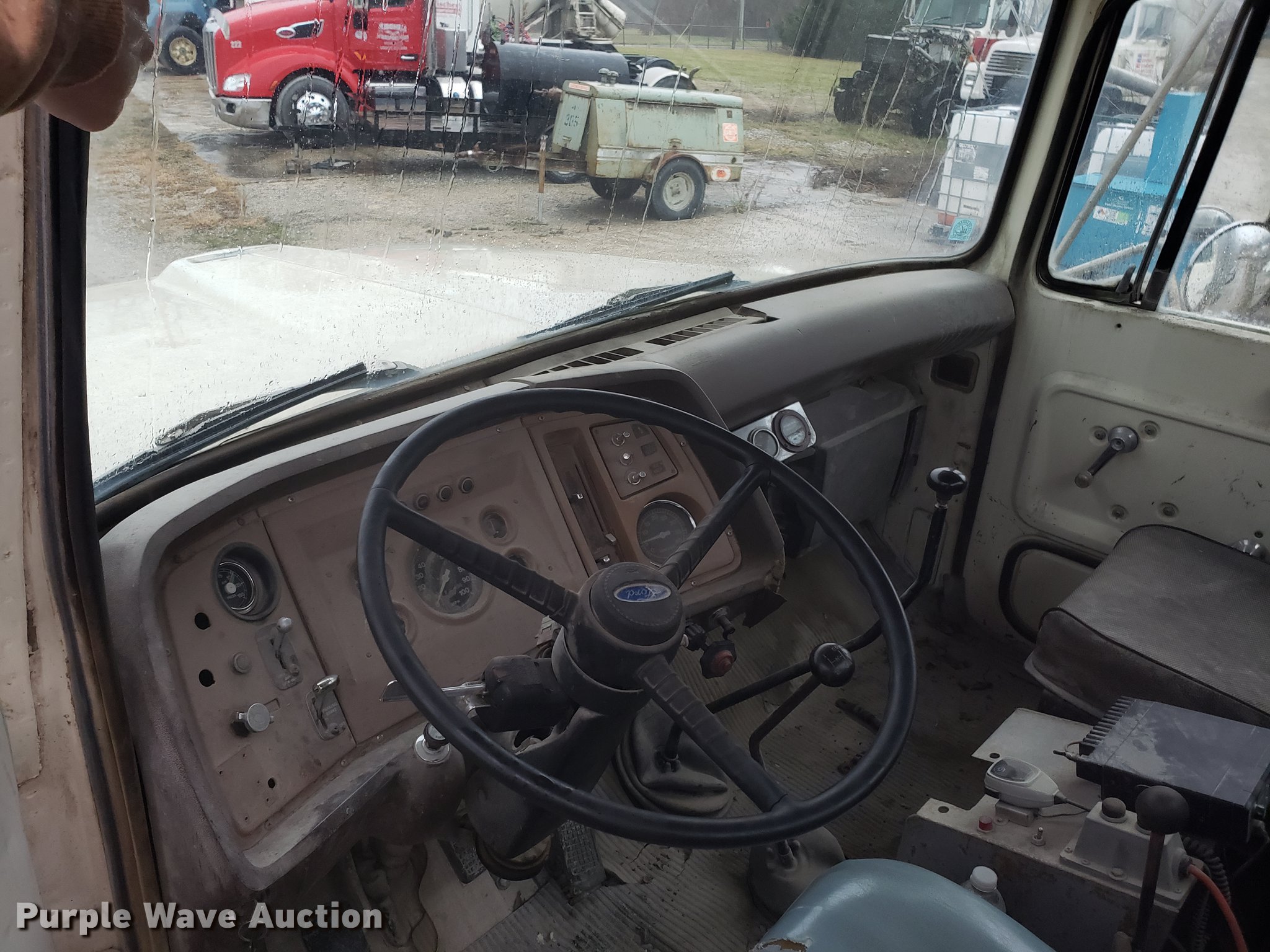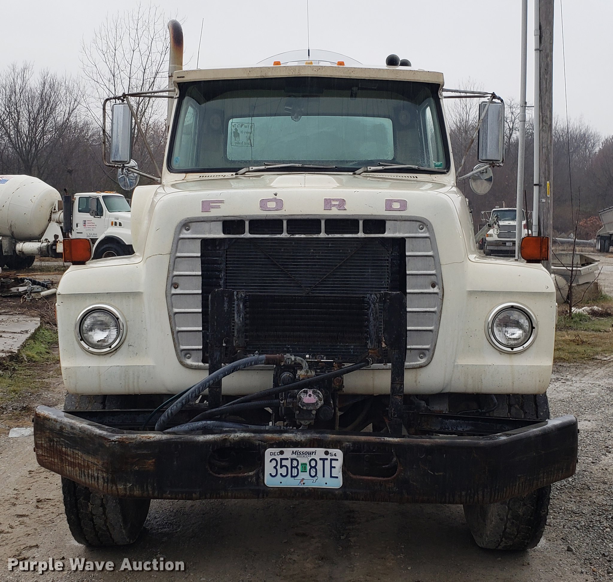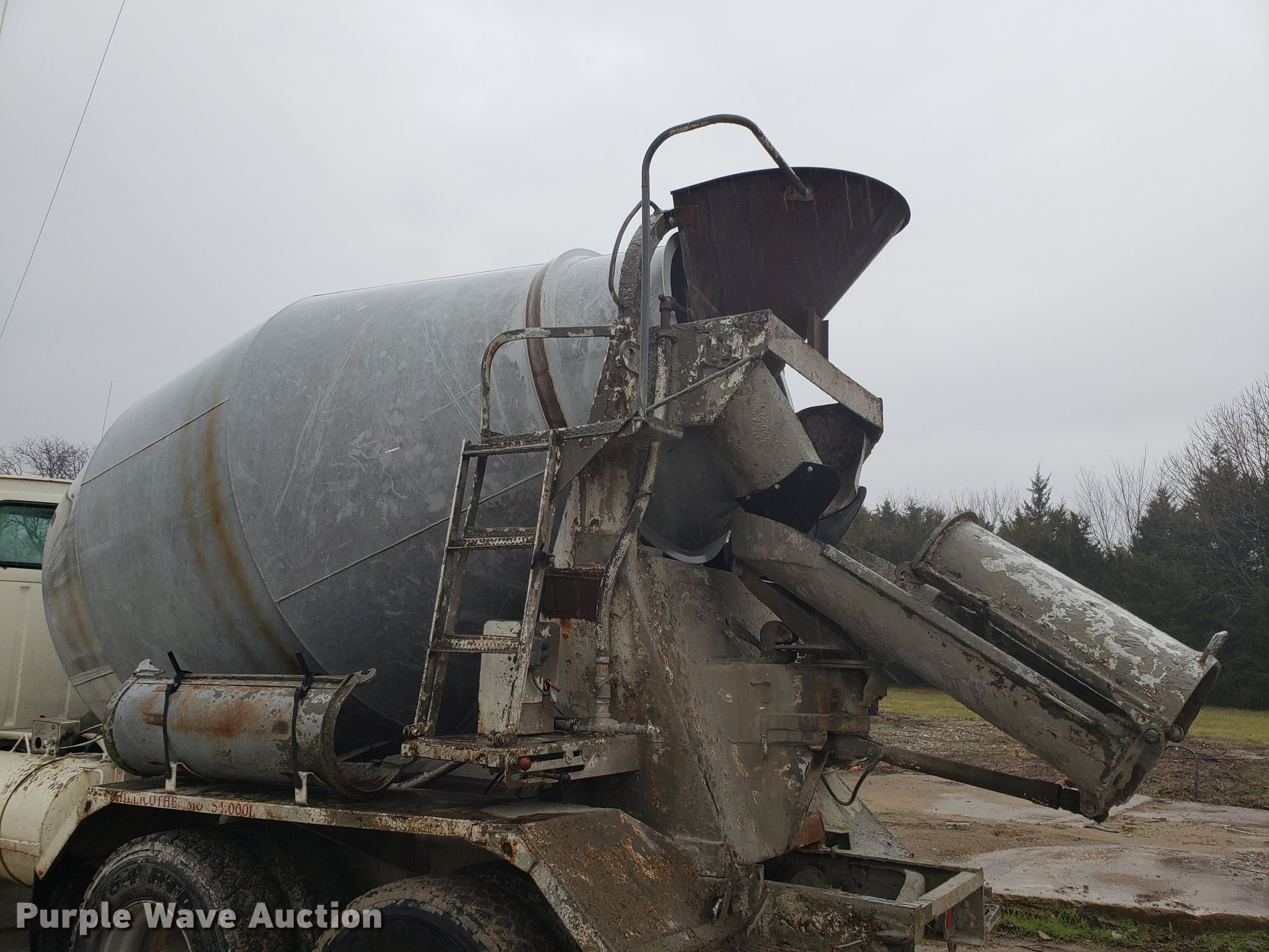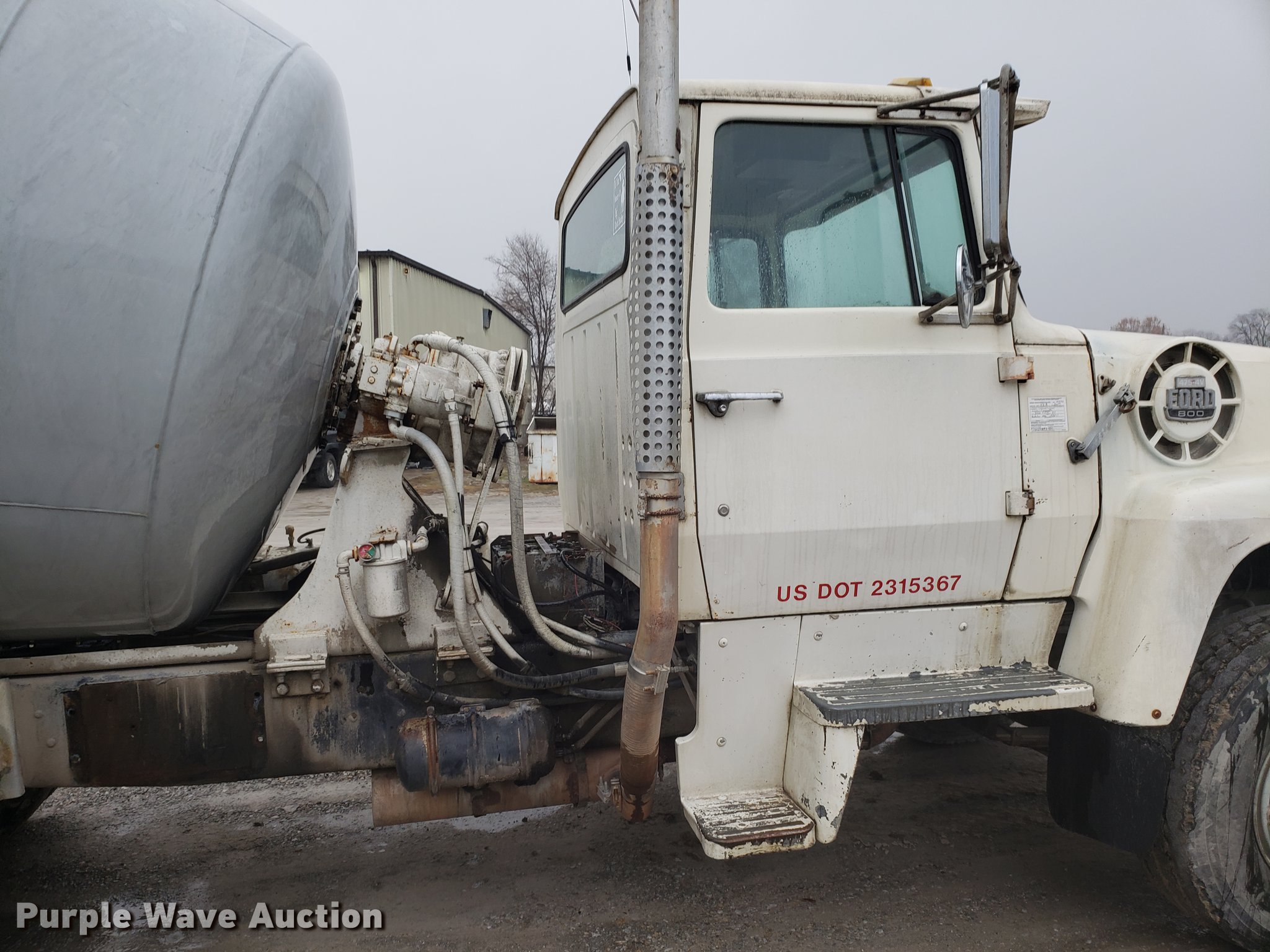 Purple Wave is selling a used Ready Mix or Pump Truck in Missouri. This item is a 1979 Ford 800 ready mix truck with the following: 86,654 miles on odometer, 4,308 hours on meter, Caterpillar 3208 eight cylinder turbo diesel engine, Manual transmission, Tandem axle, Heat, Air suspension seat, Front mounted PTO, Nine cu.yd. mixer, (3) chutes, Spring over walking beam suspension, Air brakes, 315/80R22.5 front tires, 11R22.5 rear tires