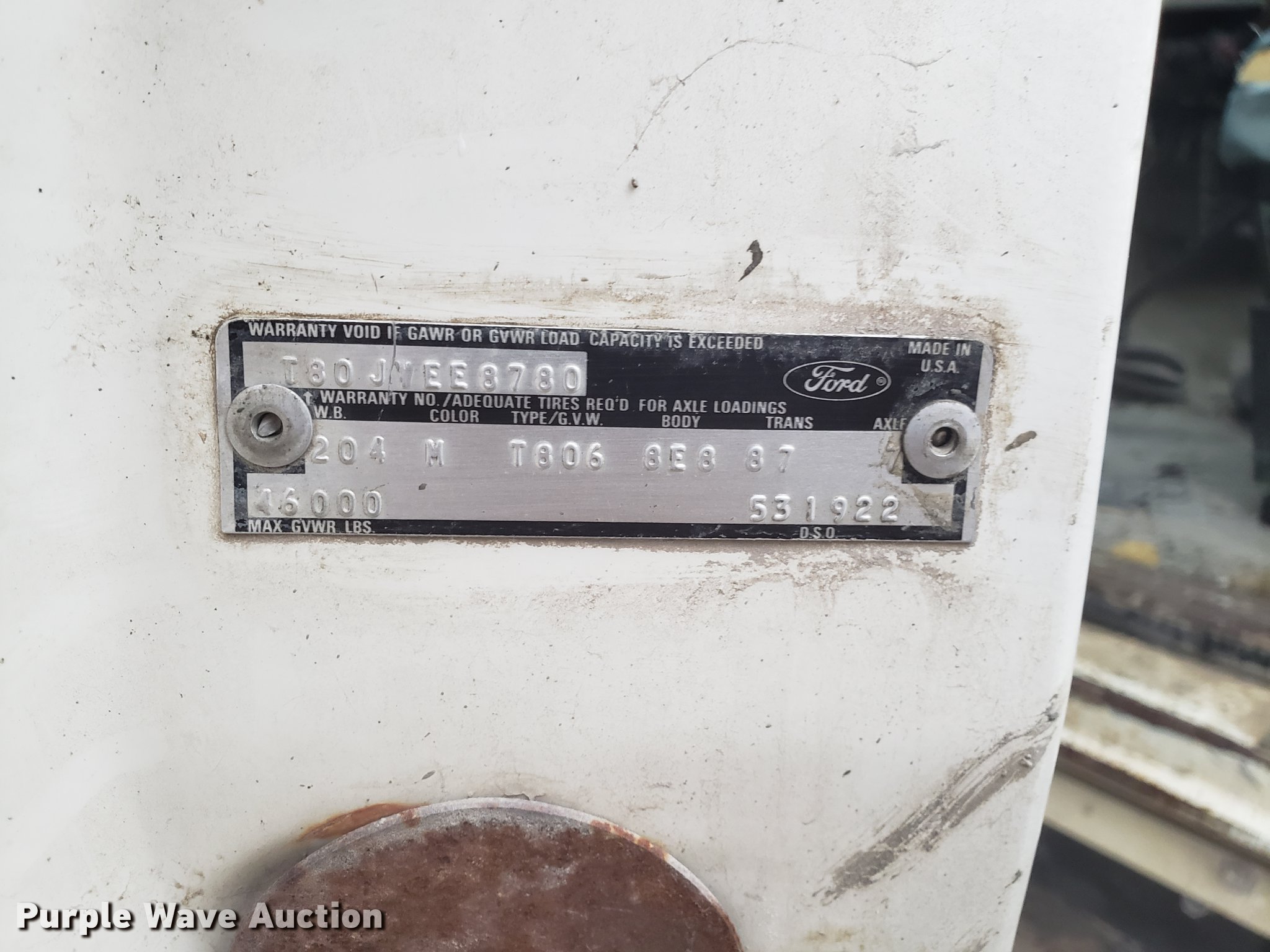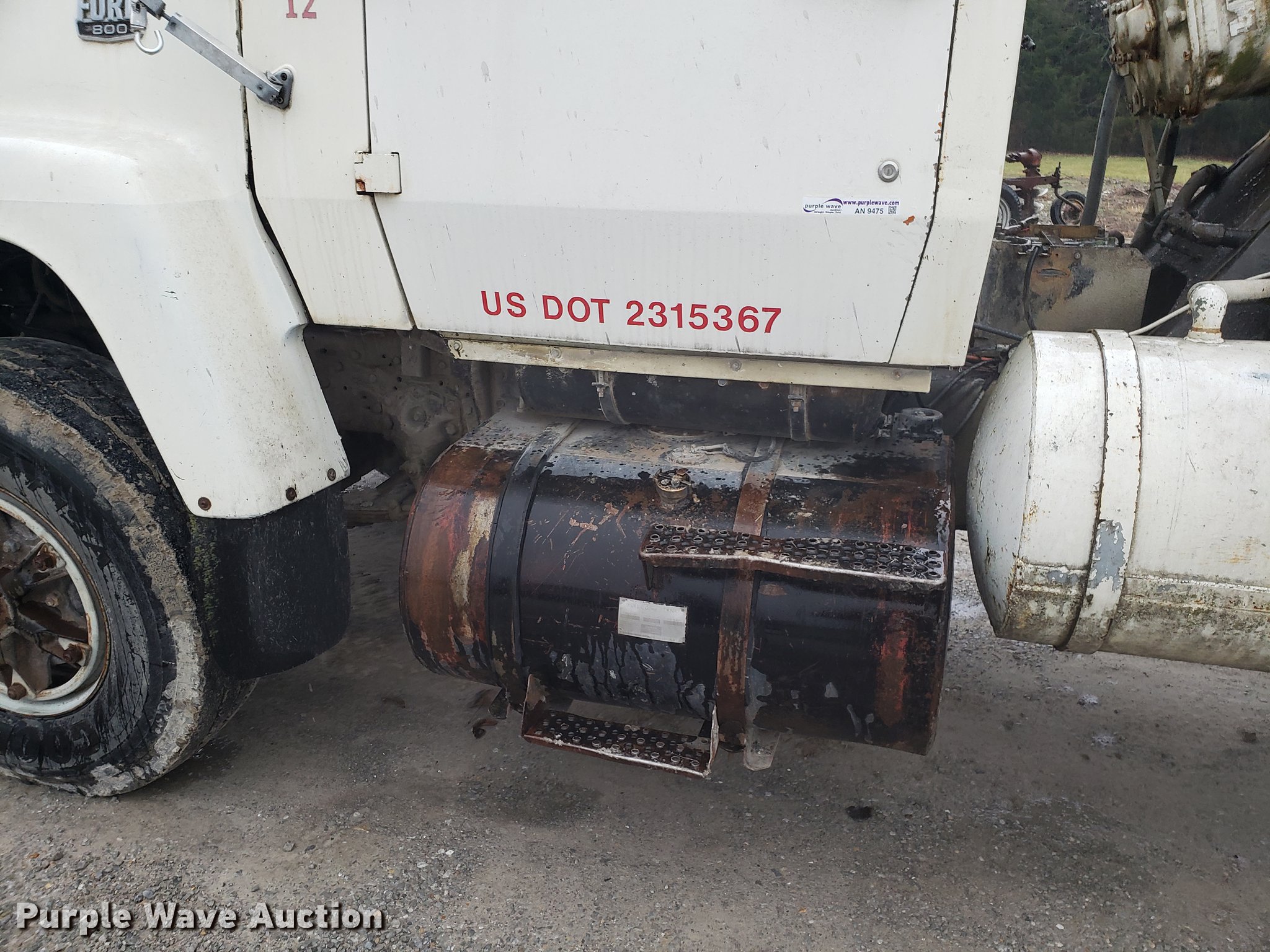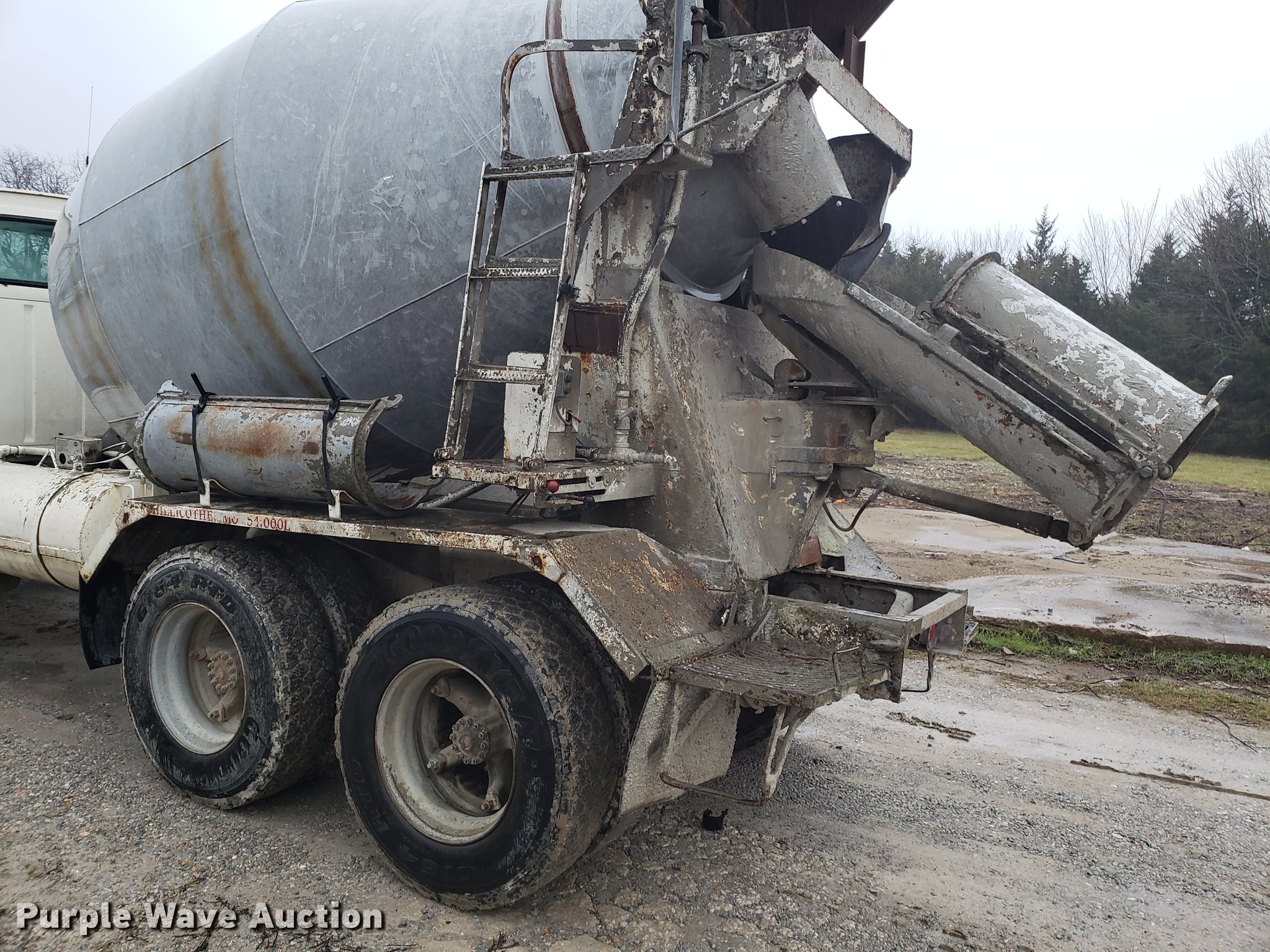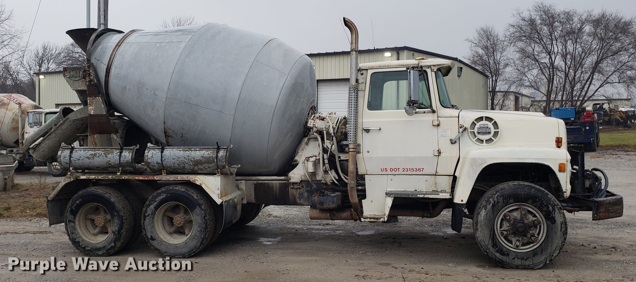 Purple Wave is selling a used Ready Mix or Pump Truck in Missouri. This item is a 1979 Ford 800 ready mix truck with the following: 86,654 miles on odometer, 4,308 hours on meter, Caterpillar 3208 eight cylinder turbo diesel engine, Manual transmission, Tandem axle, Heat, Air suspension seat, Front mounted PTO, Nine cu.yd. mixer, (3) chutes, Spring over walking beam suspension, Air brakes, 315/80R22.5 front tires, 11R22.5 rear tires