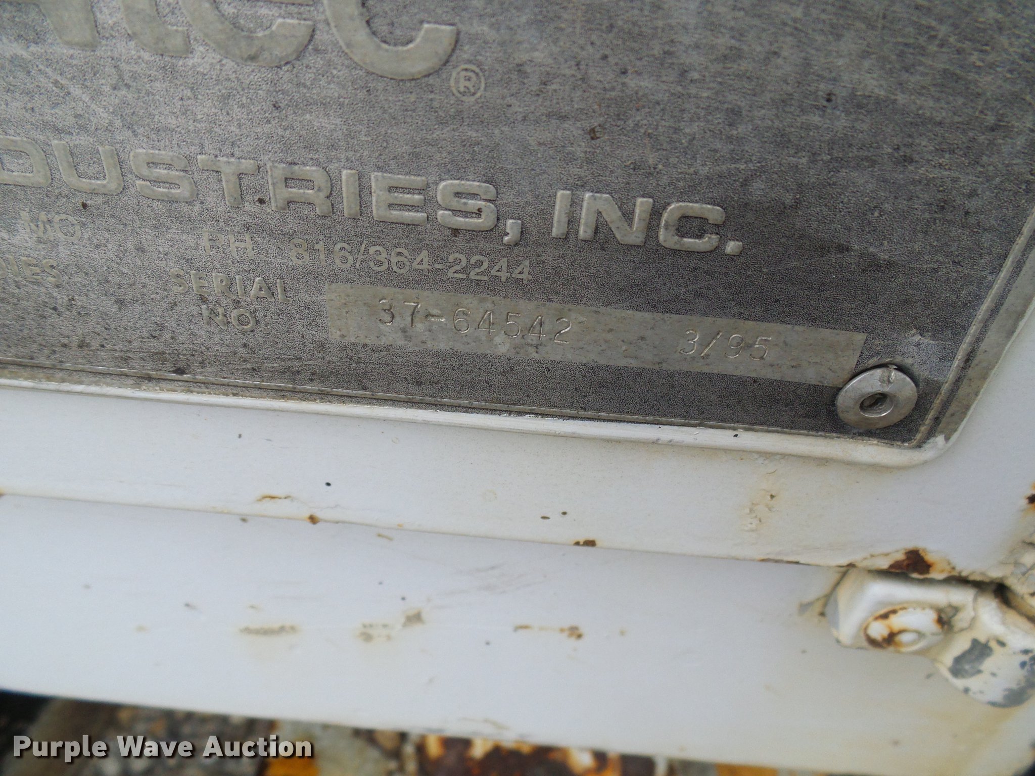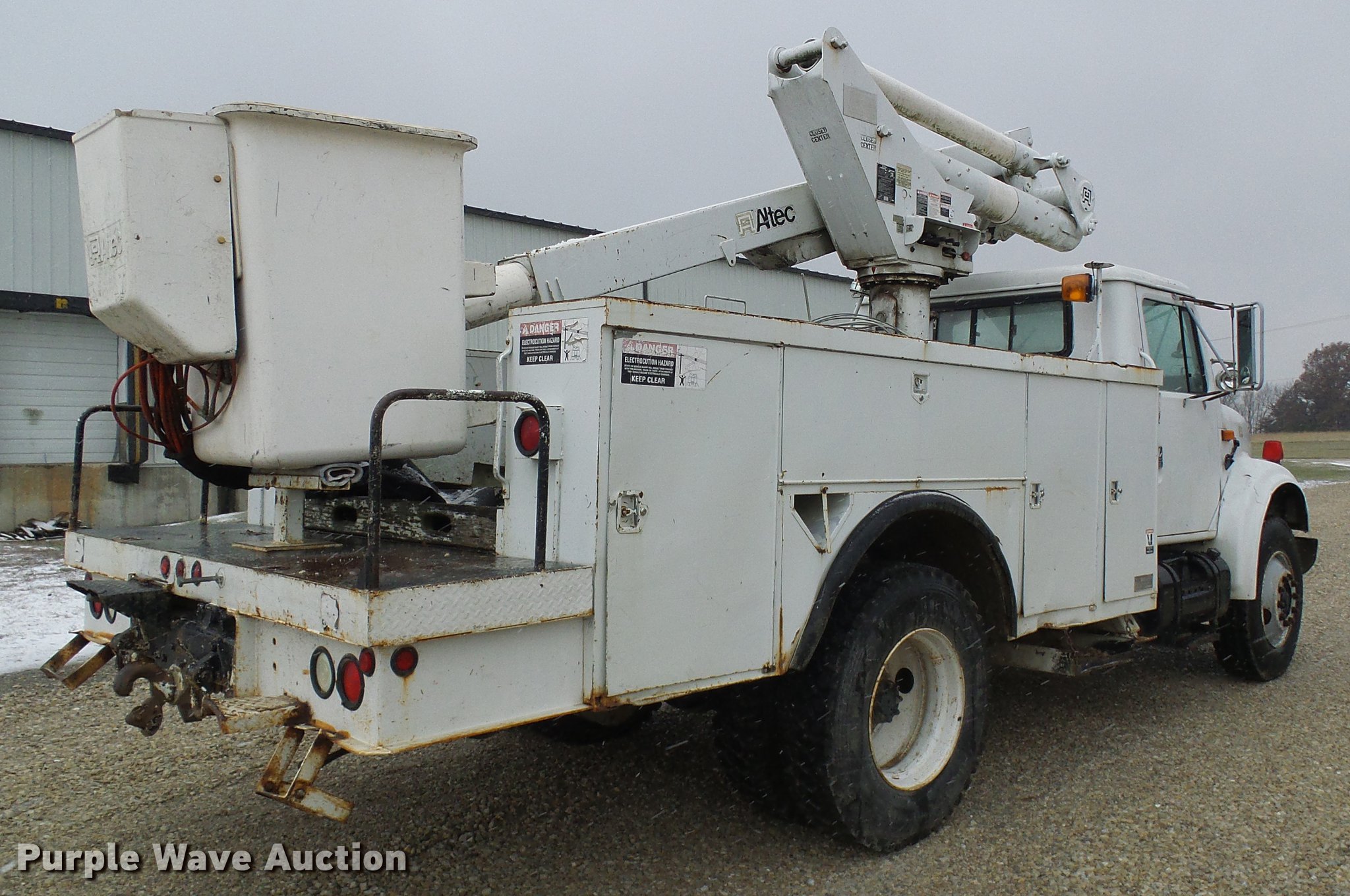 Purple Wave is selling a used Bucket Truck in Missouri. This item is a 1995 International 4700 bucket truck with the following: 111,634 miles on odometer, 22,425 hours on meter, International T444 7.6L L6 turbo diesel engine, Automatic transmission, Single axle, Heat, Suspension seat, PTO, Beacon light, Altec utility bed, 14'L, Shelving, Slide-out drawers, Serial 3764542, Altec TA40 boom, 300 lbs maximum lift capacity, 40' maximum lift height, Man gasket, Boom rotation, Articulating telescopic boom, (2) outriggers, Serial 1094CC0114, Single fuel tank, Pintle hitch, Trailer wiring, Spring suspension, Air brakes, 11R22.5 tires, Contents not included