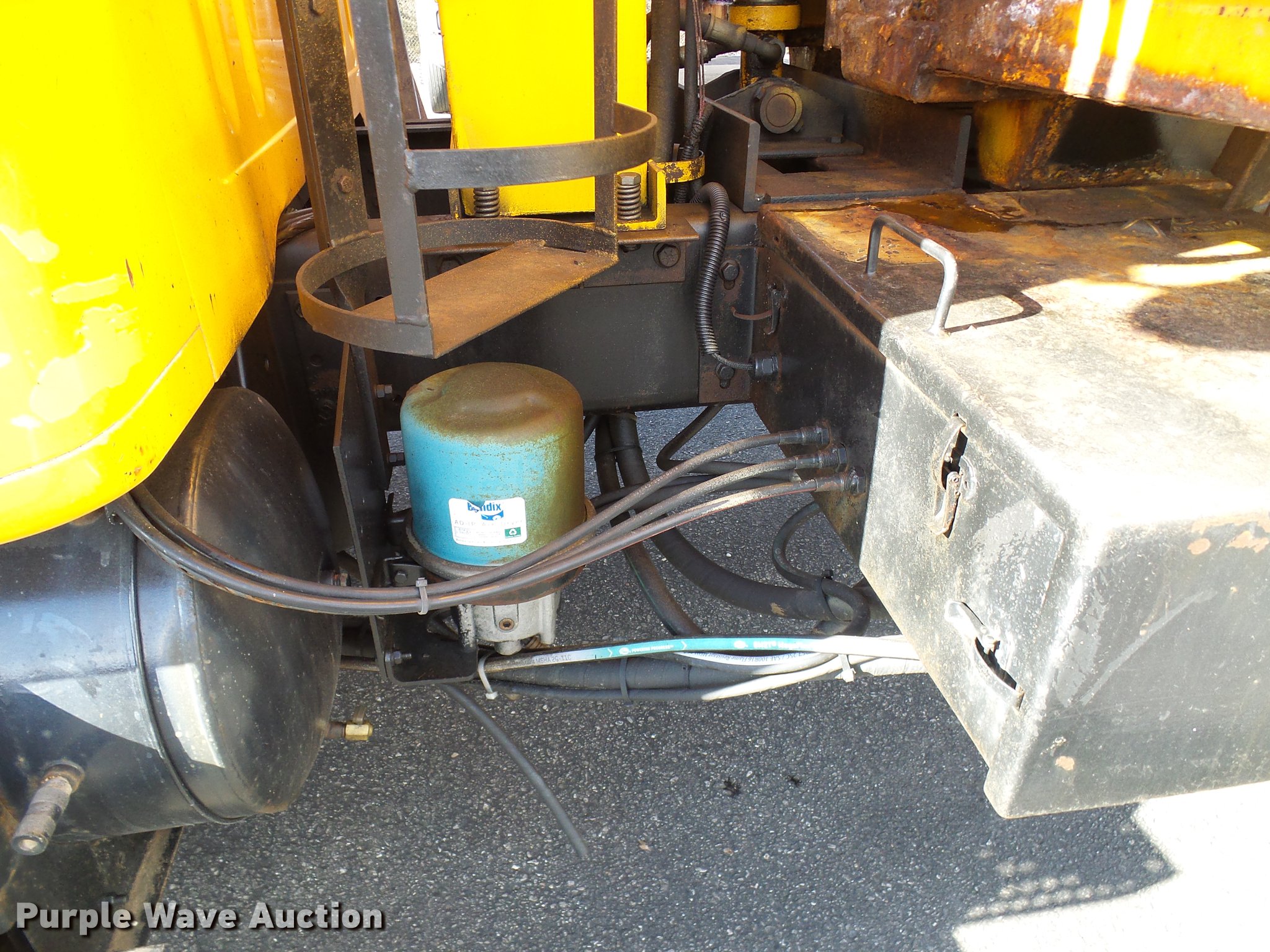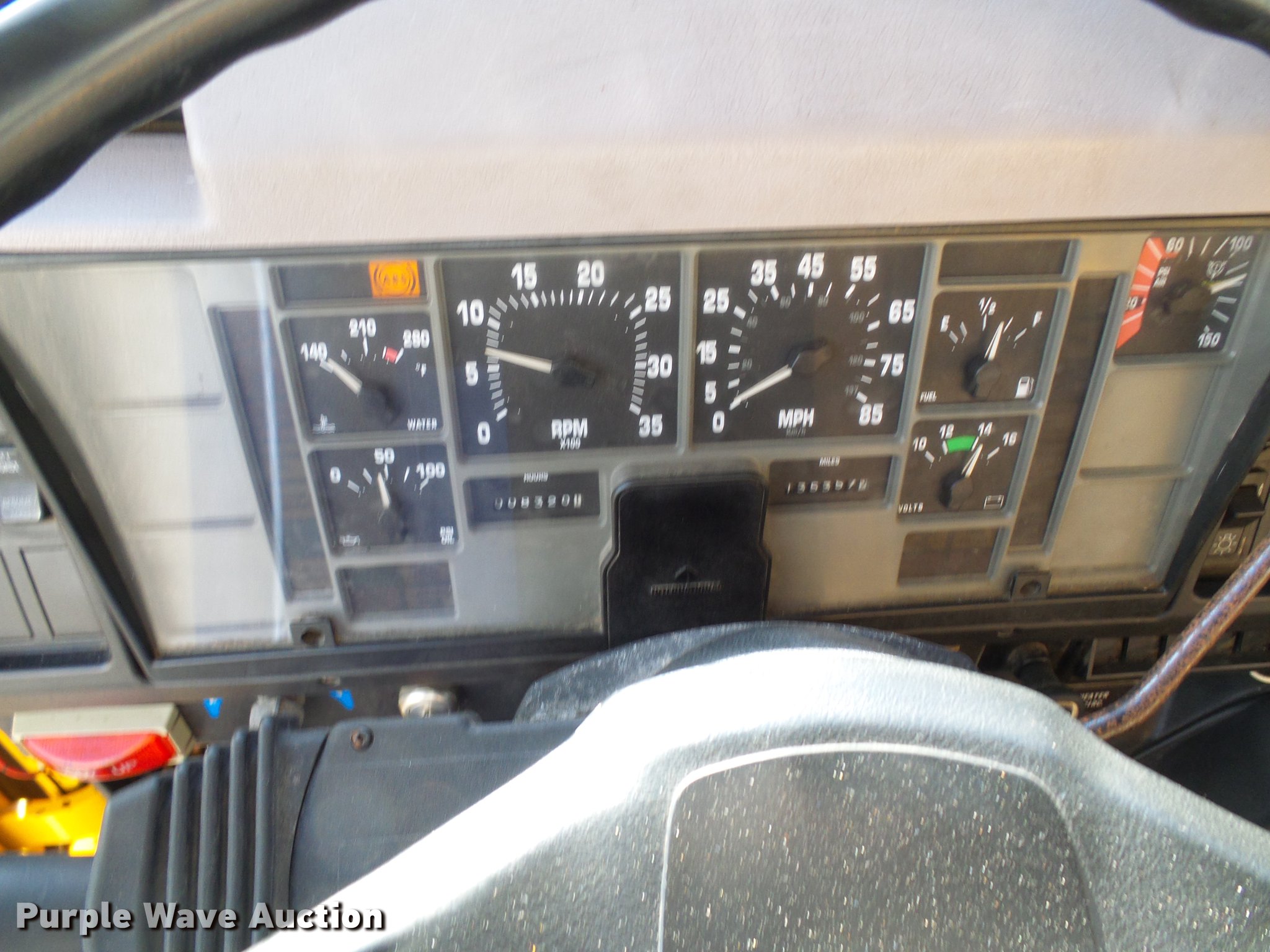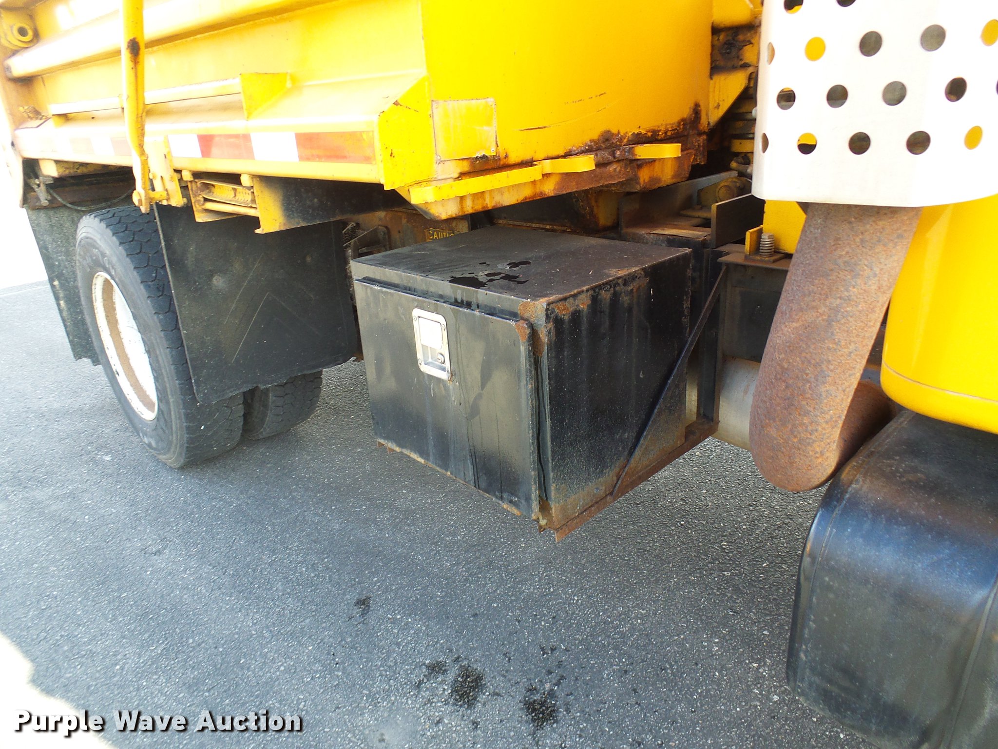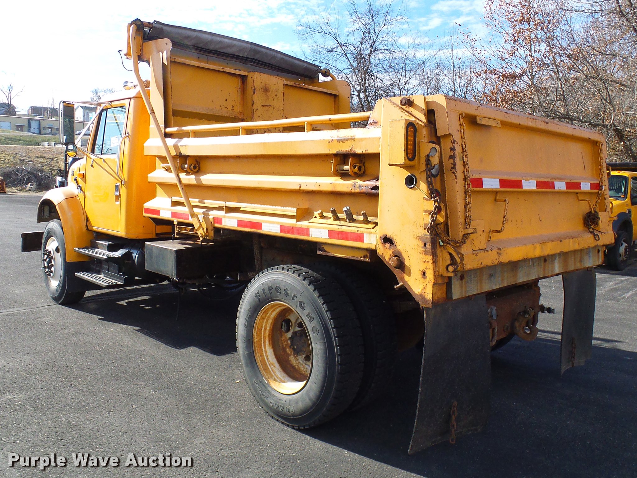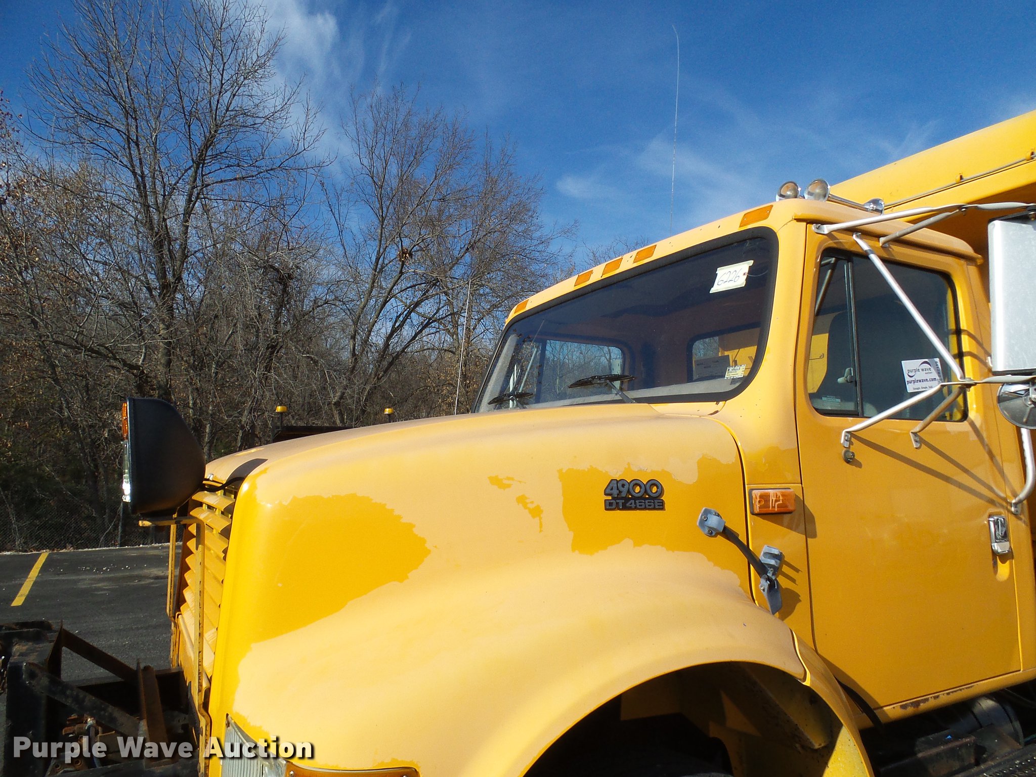 Purple Wave is selling a used Construction Dump Truck in Missouri. This item is a 2000 International 4900 dump truck with the following: 135,357 miles on odometer, 8,320 hours on meter, International DT466 7.6L L6 turbo diesel engine, Six speed manual transmission, Single axle, Heat, Cruise, AM/FM, Heated mirrors, Air suspension seat, PTO, Galion steel dump bed, 10'L x 8'W, 28" side height, Single ram hoist, Air operated end gate, Roll tarp, Single fuel tank, Pintle hitch, Trailer wiring, Spring suspension, Air brakes, 11R22.5 tires, MODOT ID 6226