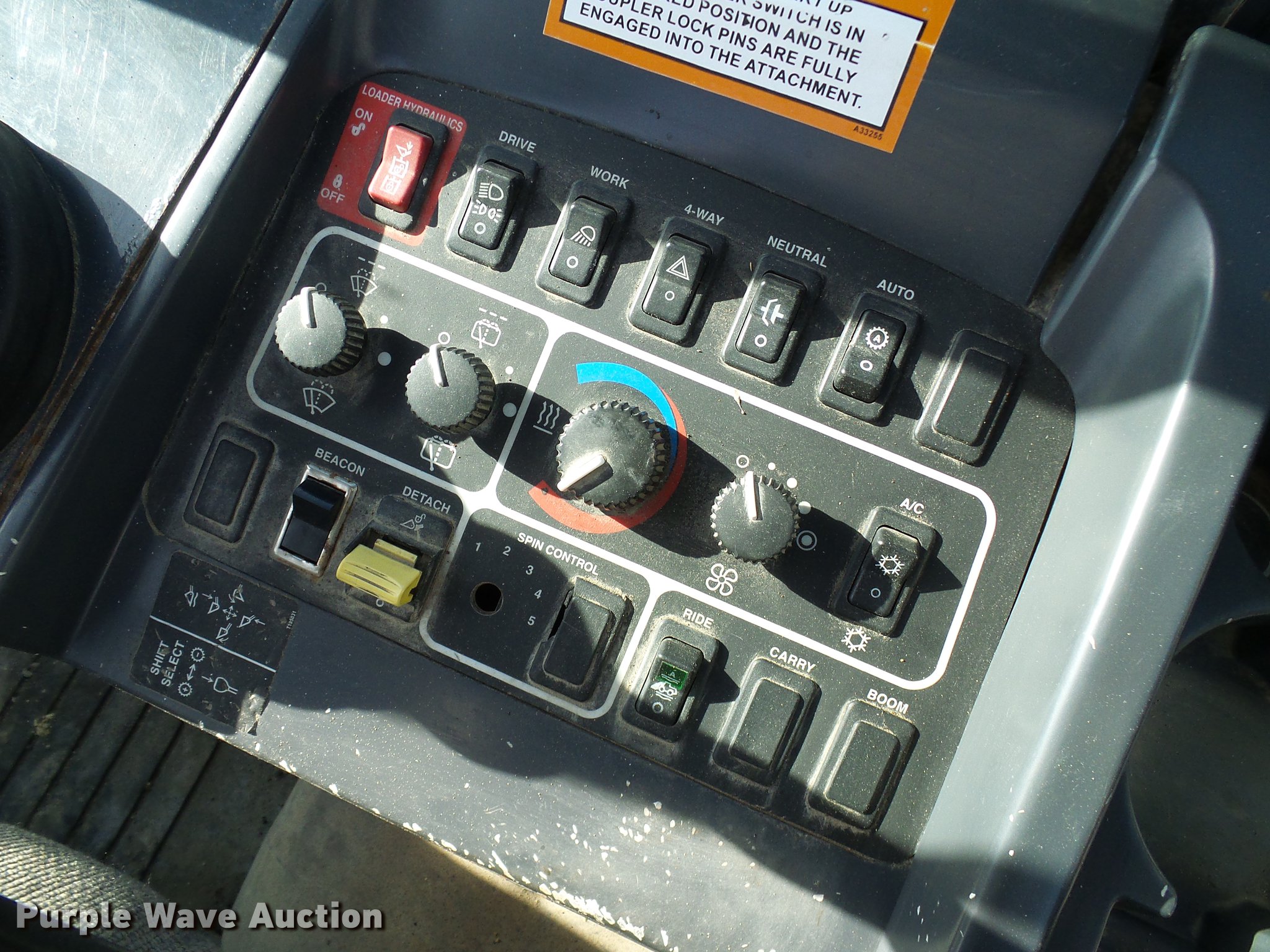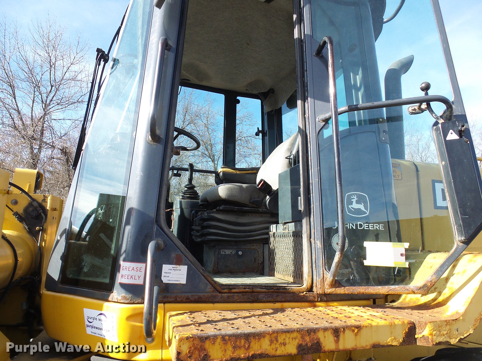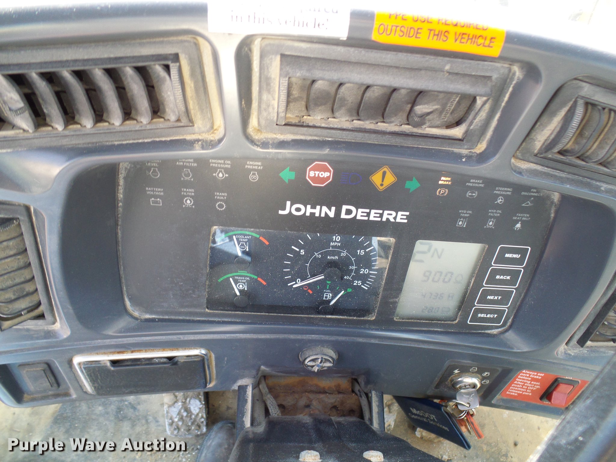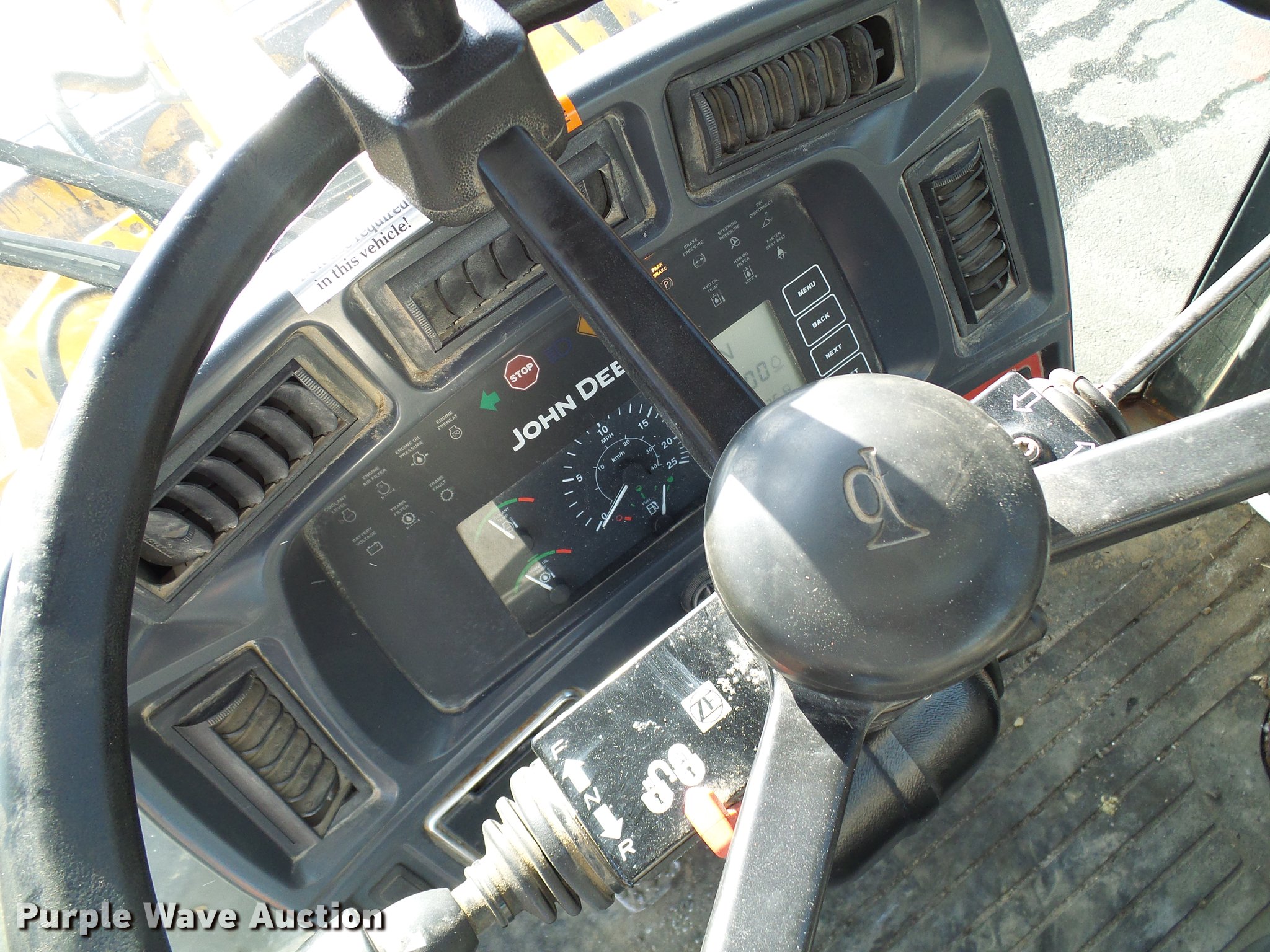 Purple Wave is selling a used Wheel Loader in Missouri. This item is a 2003 John Deere 444H wheel loader with the following: 4,736 hours on meter, John Deere four cylinder turbo diesel engine, Powershift transmission, 4F-4R gears, Front and rear differential lock, Enclosed cab, AC and heat, Tilt steering wheel, Suspension seat, Joystick bucket controls, Front and rear work lights, Wipers, 101"W general purpose bucket, Bolt-on cutting edge, Hydraulic quick coupler, Counterweights, 17.5-25 tires, Serial DW444HX586922, MODOT ID G8903