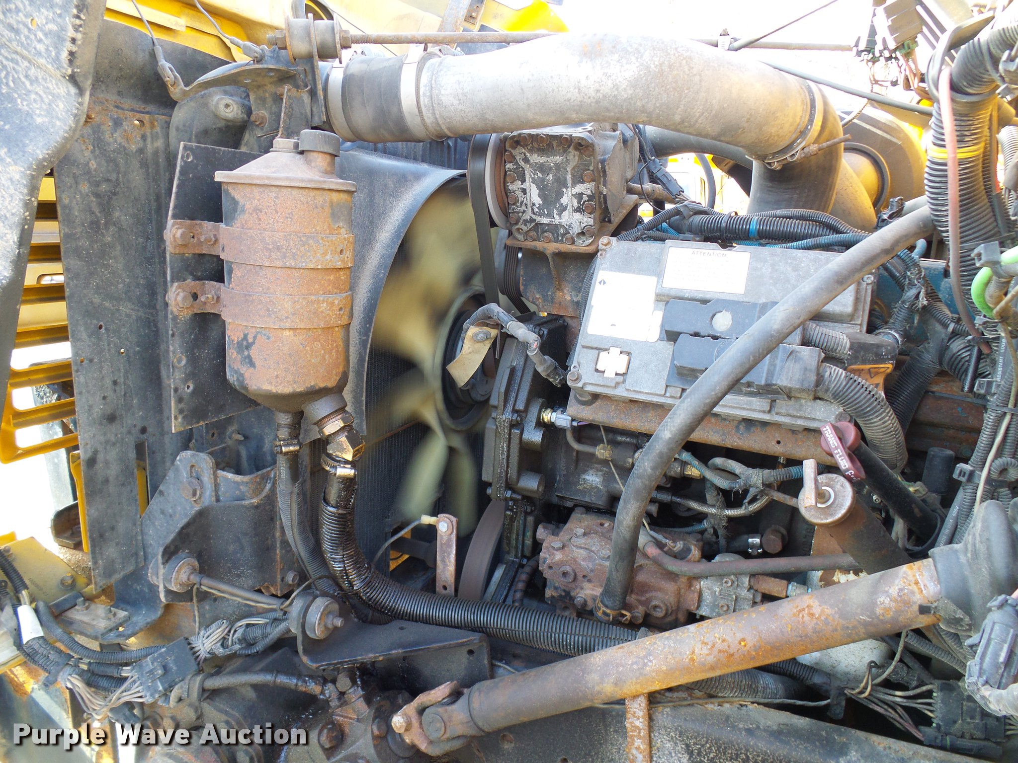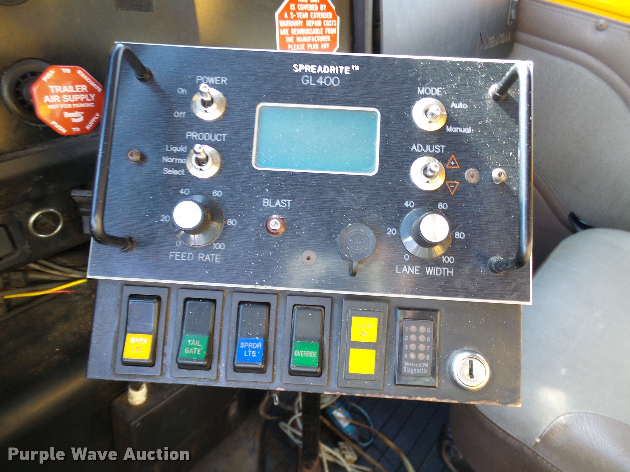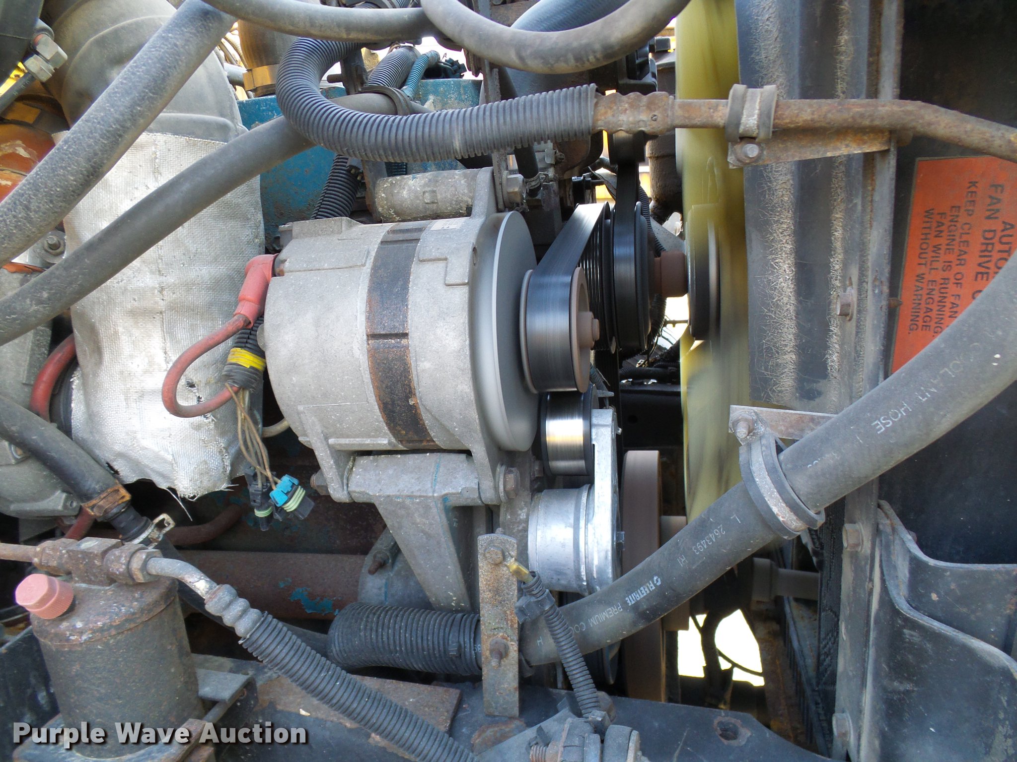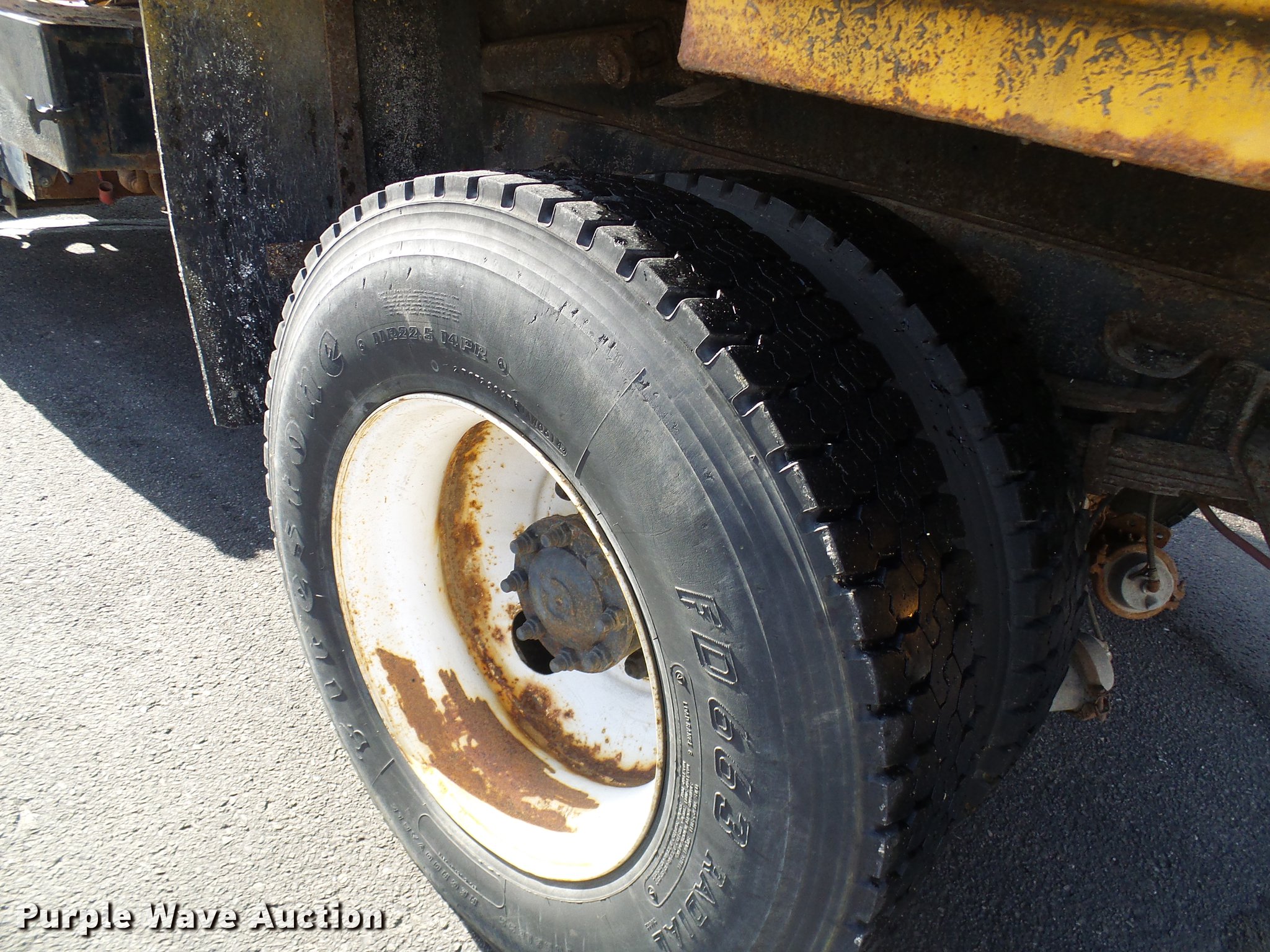 Purple Wave is selling a used Construction Dump Truck in Missouri. This item is a 2002 International 4900 dump truck with the following: 129,585 miles on odometer, 8,416 hours on meter, International DT466 7.6L L6 turbo diesel engine, Automatic transmission, Single axle, AC and heat, Cruise, Weatherband radio, Heated mirrors, Air suspension seat, PTO, Galion steel dump bed, 10'L x 8'W, 28" side height, Single ram hoist, Air operated end gate, Roll tarp, Toolboxes, Single fuel tank, Pintle hitch, Trailer wiring, Spring suspension, Air brakes, 315/80R22.5 front tires, 11R22.5 rear tires, MODOT ID 6985