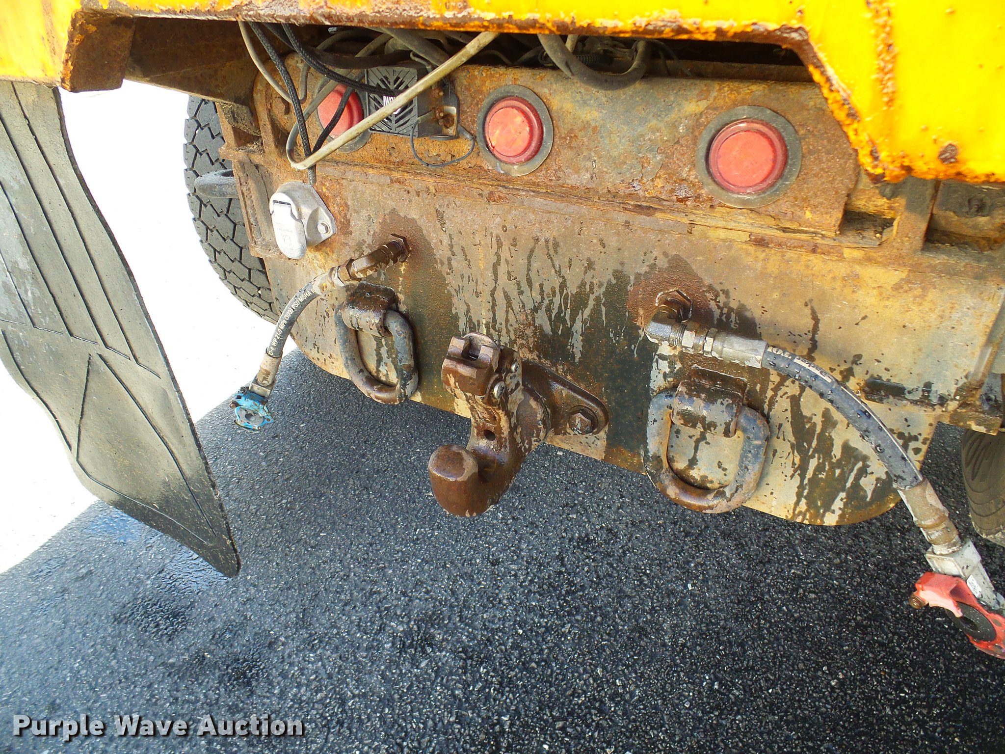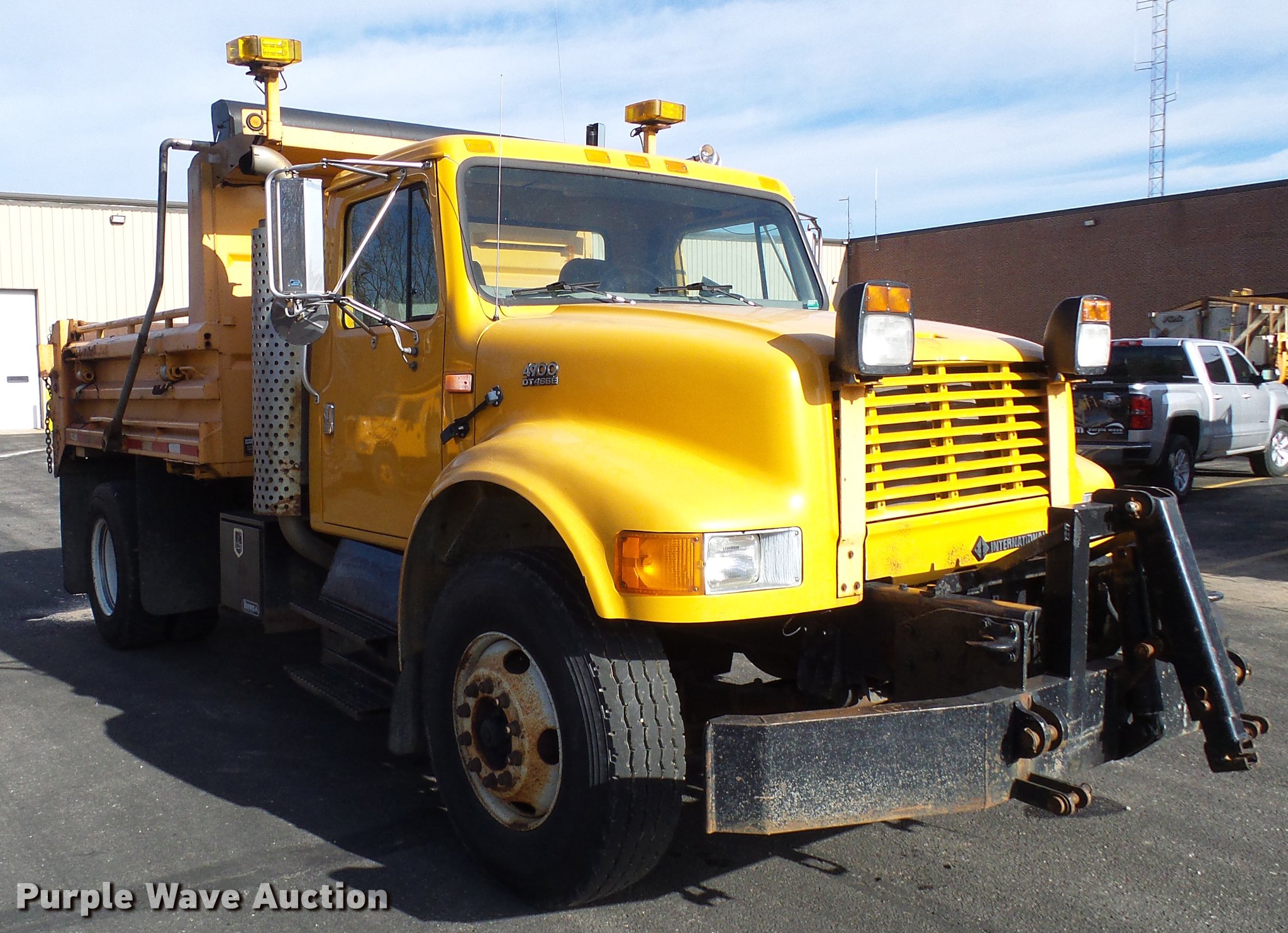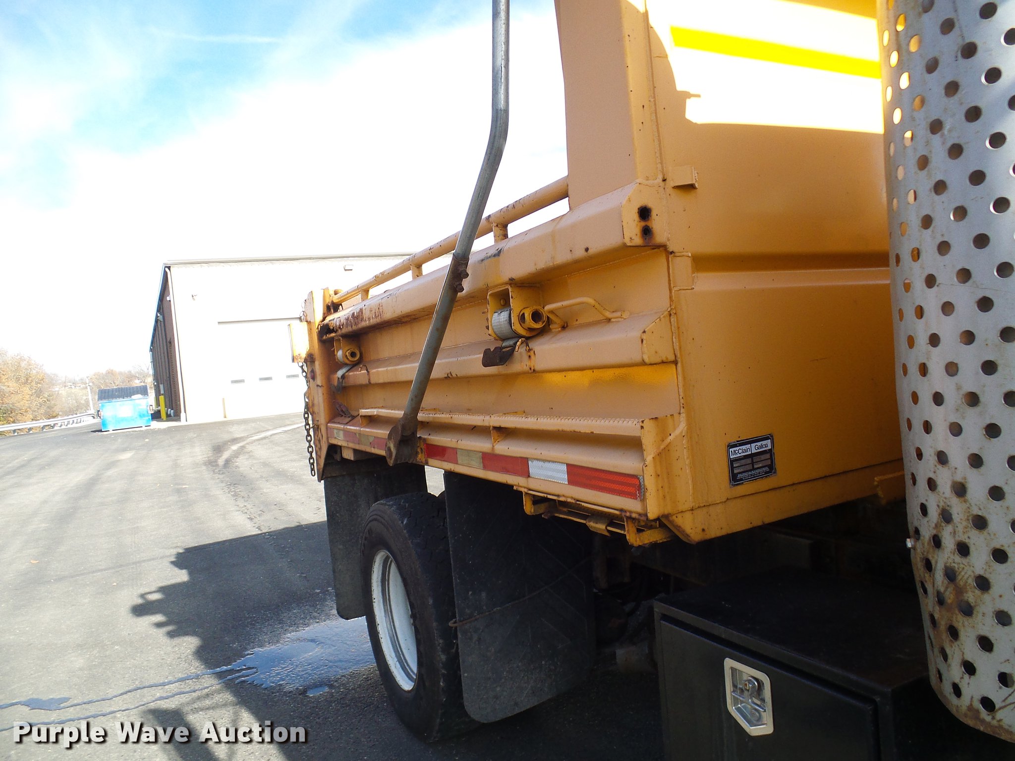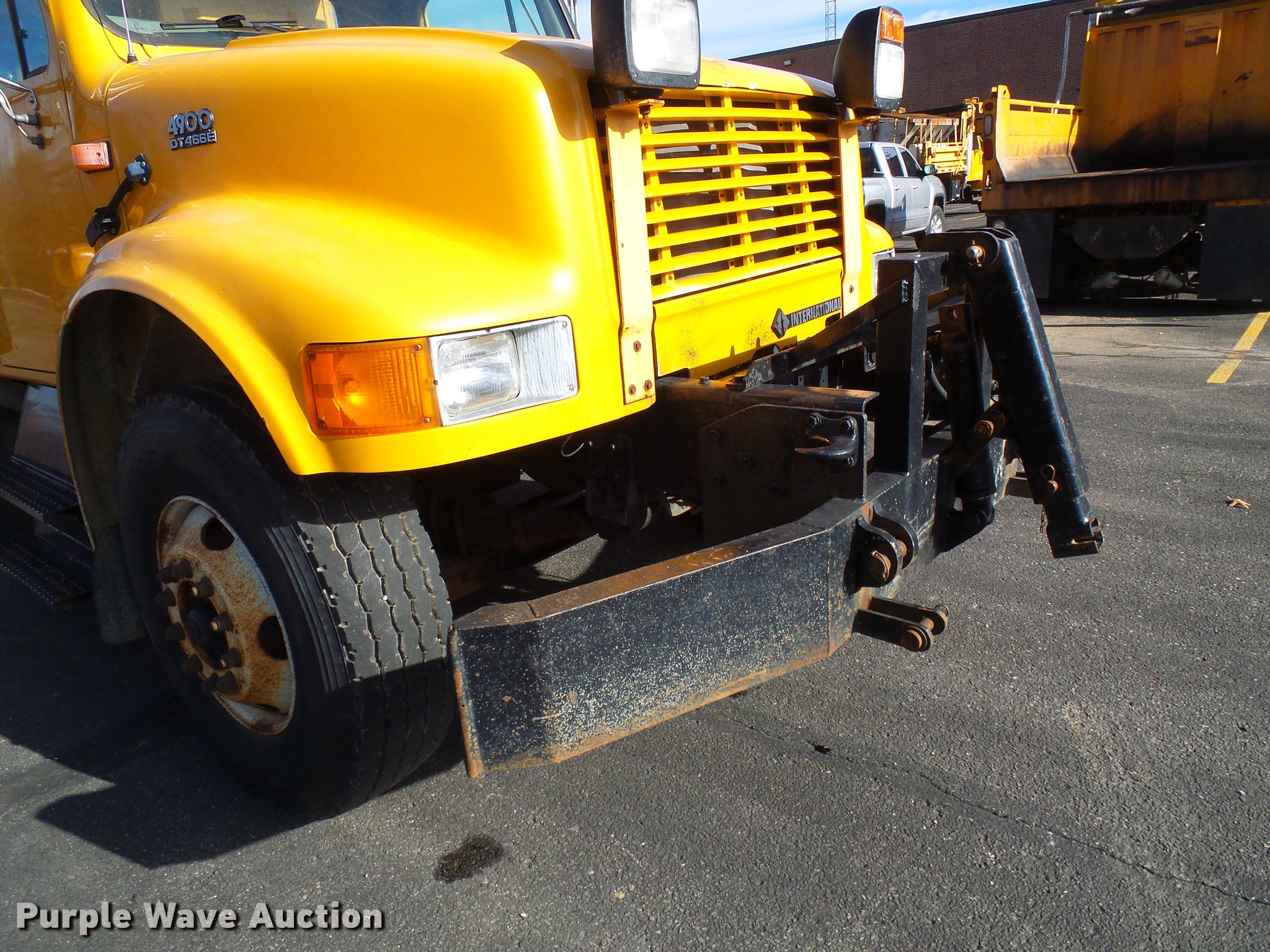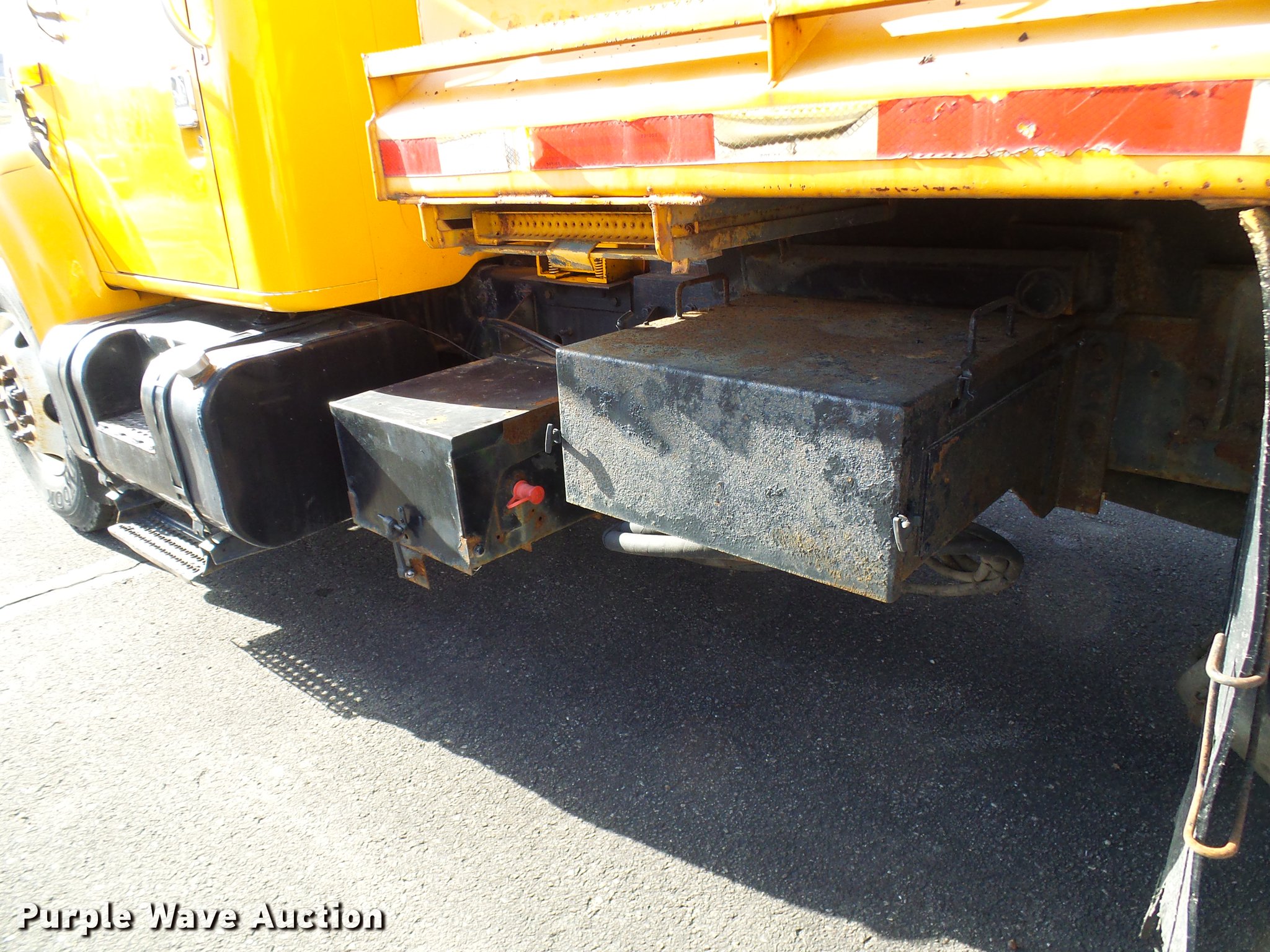 Purple Wave is selling a used Construction Dump Truck in Missouri. This item is a 2002 International 4900 dump truck with the following: 203,439 miles on odometer, 10,753 hours on meter, International DT466 7.6L L6 turbo diesel engine, Automatic transmission, Single axle, AC and heat, Weatherband radio, Power and heated mirrors, Air suspension seat, PTO, Galion steel dump bed, 10'L x 8'W, 28" side height, Single ram hoist, Air operated end gate, Roll tarp, Toolboxes, Single fuel tank, Pintle hitch, Trailer wiring, 315/80R22.5 front tires, 11R22.5 rear tires, MODOT ID 6625