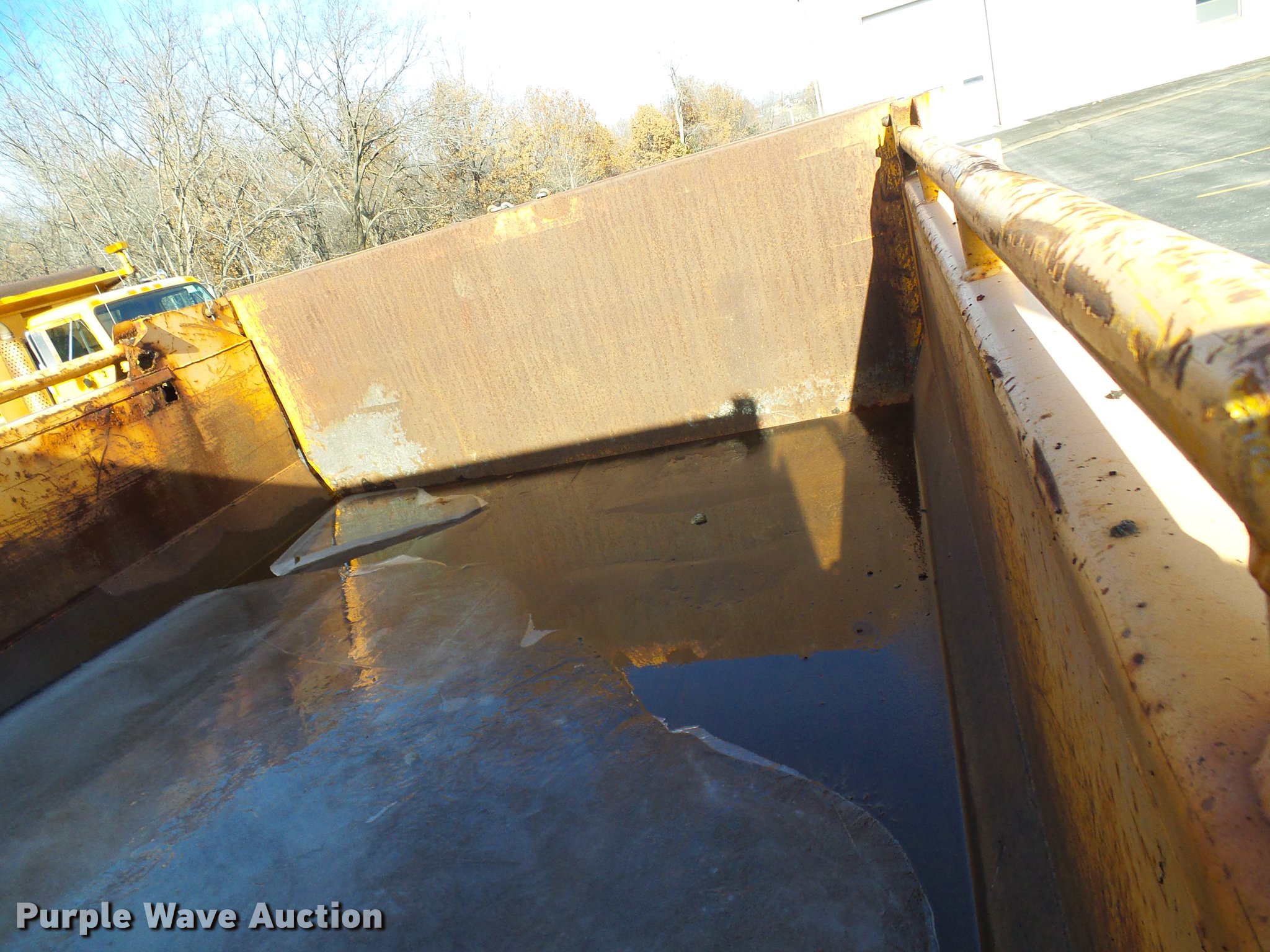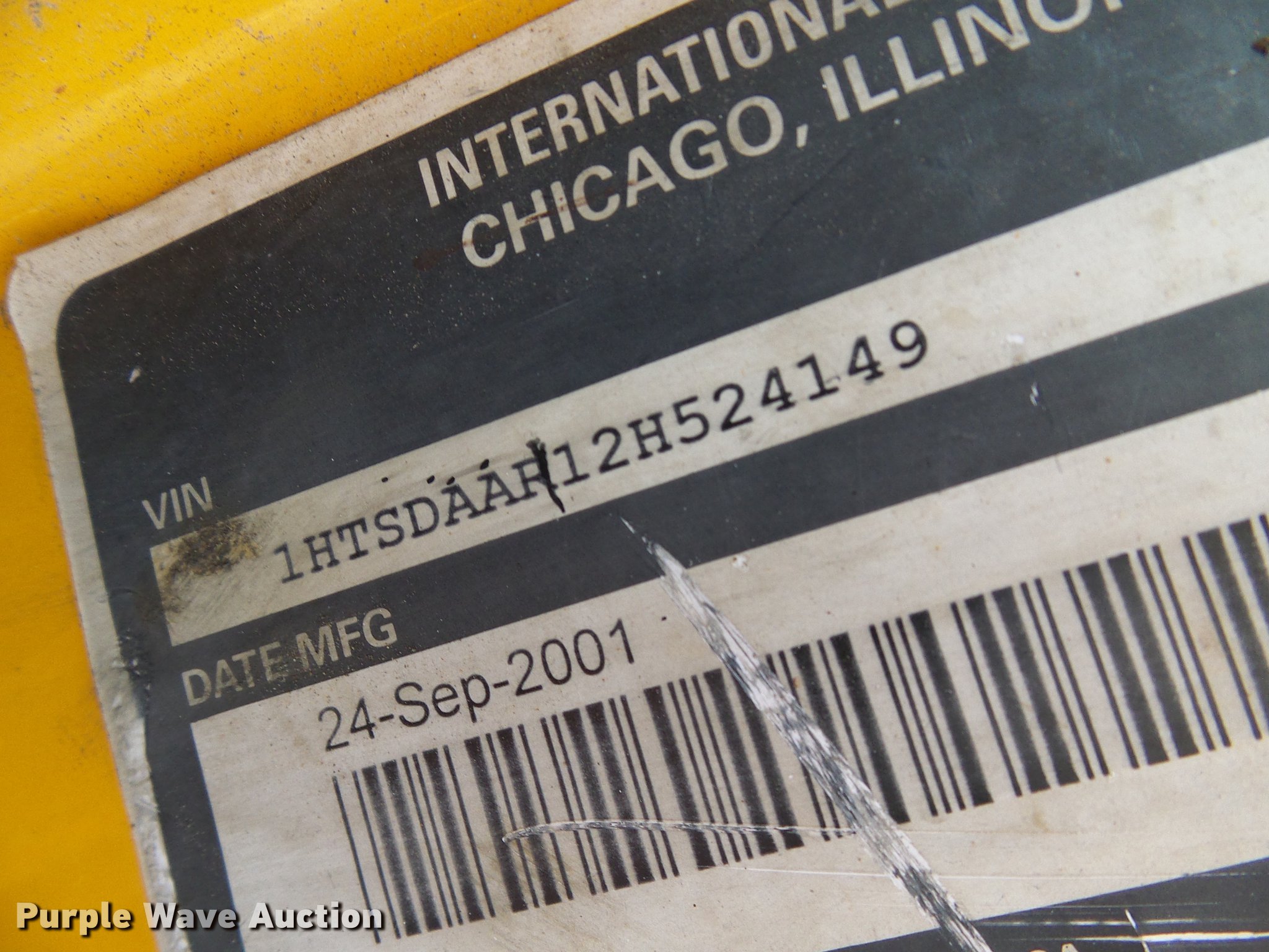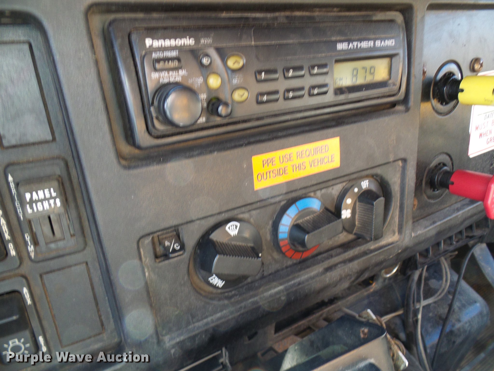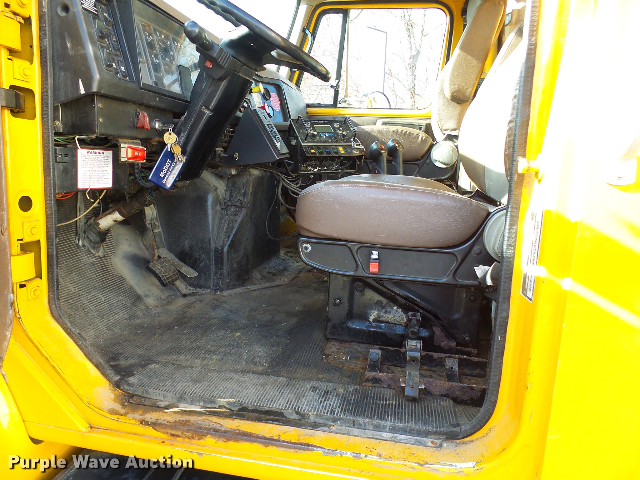 Purple Wave is selling a used Construction Dump Truck in Missouri. This item is a 2002 International 4900 dump truck with the following: 203,439 miles on odometer, 10,753 hours on meter, International DT466 7.6L L6 turbo diesel engine, Automatic transmission, Single axle, AC and heat, Weatherband radio, Power and heated mirrors, Air suspension seat, PTO, Galion steel dump bed, 10'L x 8'W, 28" side height, Single ram hoist, Air operated end gate, Roll tarp, Toolboxes, Single fuel tank, Pintle hitch, Trailer wiring, 315/80R22.5 front tires, 11R22.5 rear tires, MODOT ID 6625