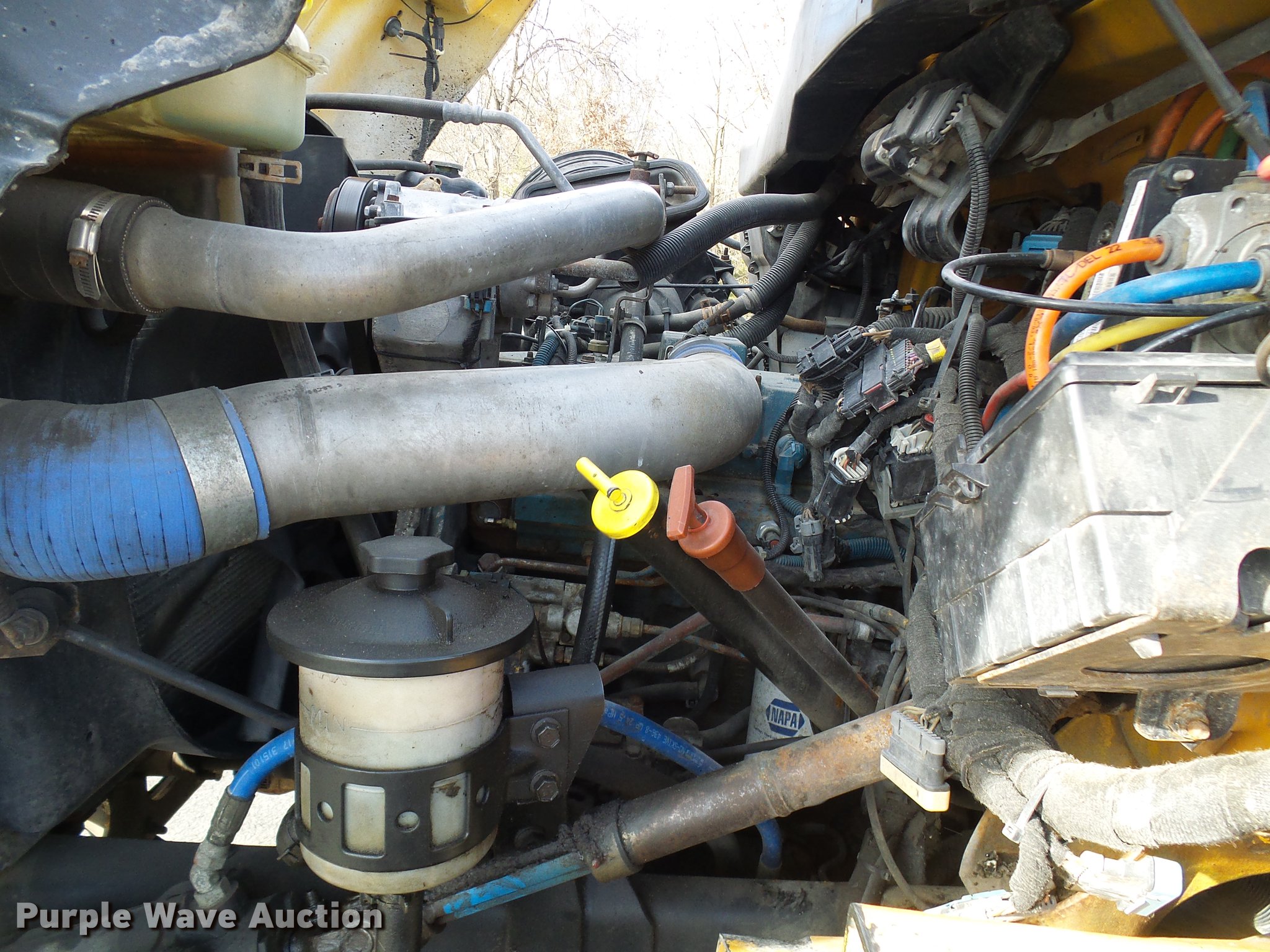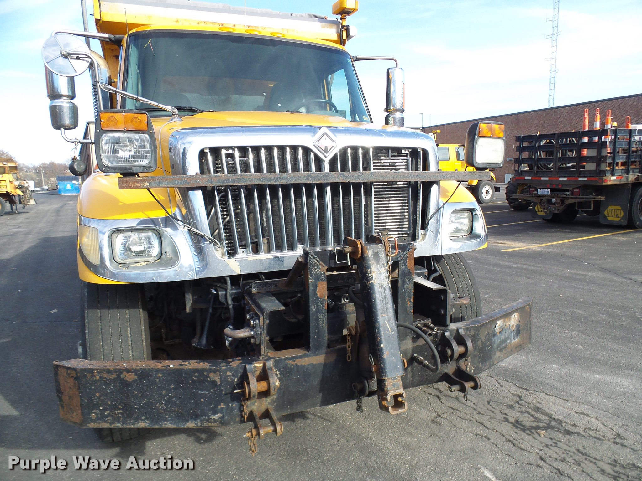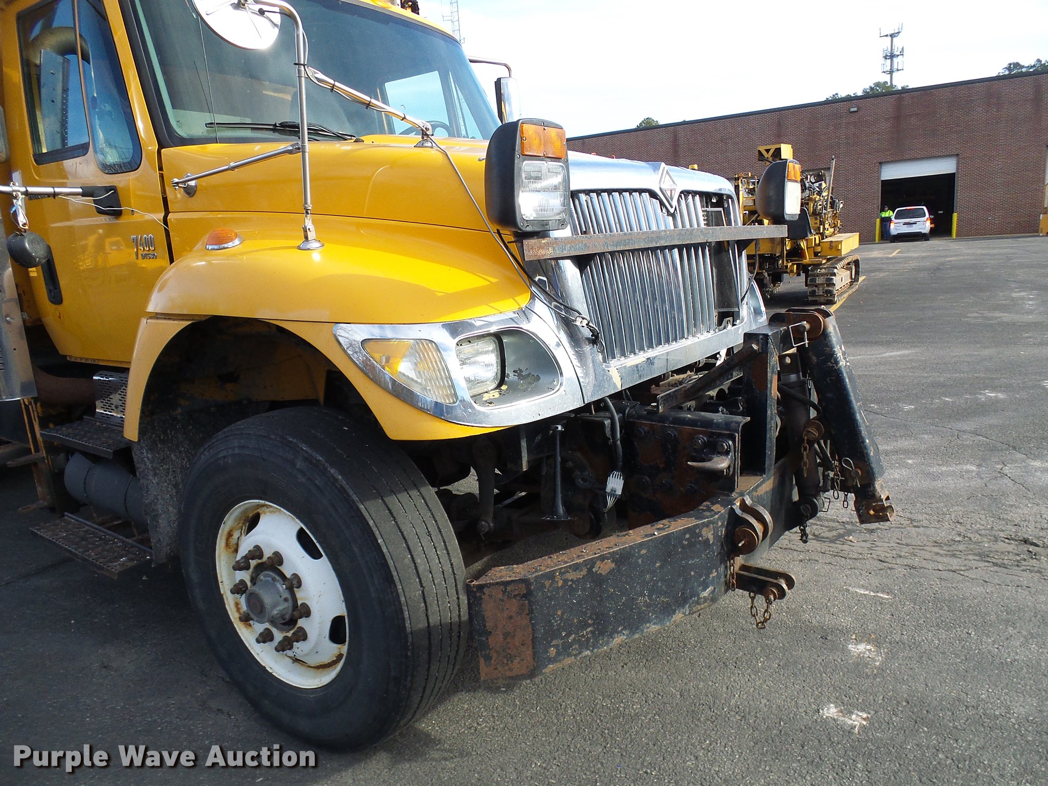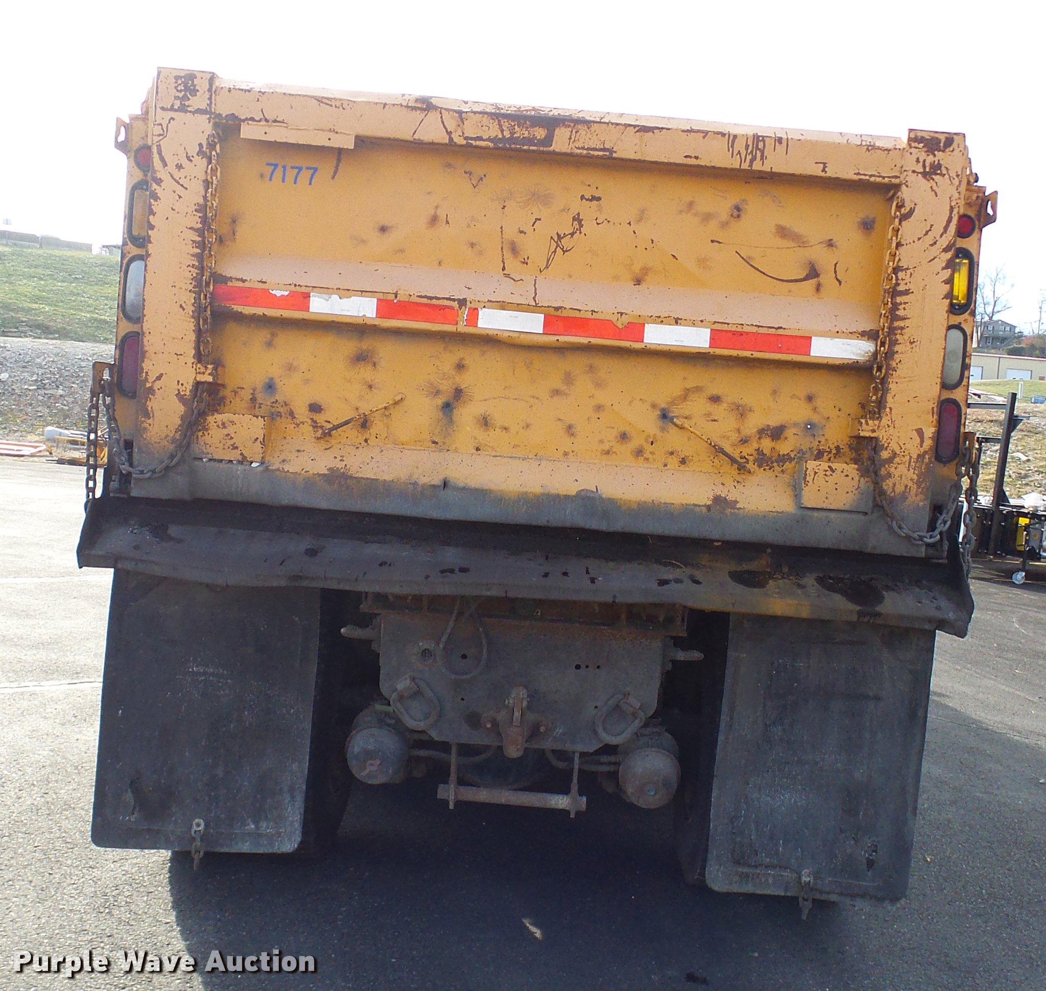 Purple Wave is selling a used Construction Dump Truck in Missouri. This item is a 2004 International 7400 dump truck with the following: 191,292 miles on odometer, 11,727 hours on meter, International DT530 8.7L L6 turbo diesel engine, Automatic transmission, Tandem axle, AC and heat, Cruise, AM/FM, Power windows and mirrors, Heated mirrors, Air suspension seat, PTO, Galion steel dump bed, 16'L x 8'W, 36" side height, Single ram hoist, Air operated end gate, Roll tarp, Toolboxes, Plow in bed, Single fuel tank, Pintle hitch, Trailer wiring, Spring suspension, Air brakes, 11R22.5 tires, MODOT ID 7177