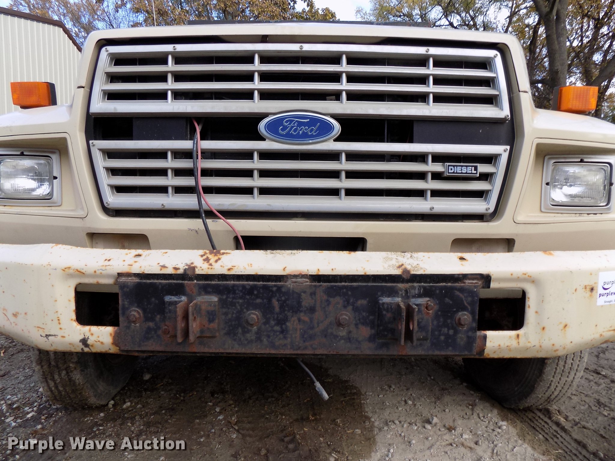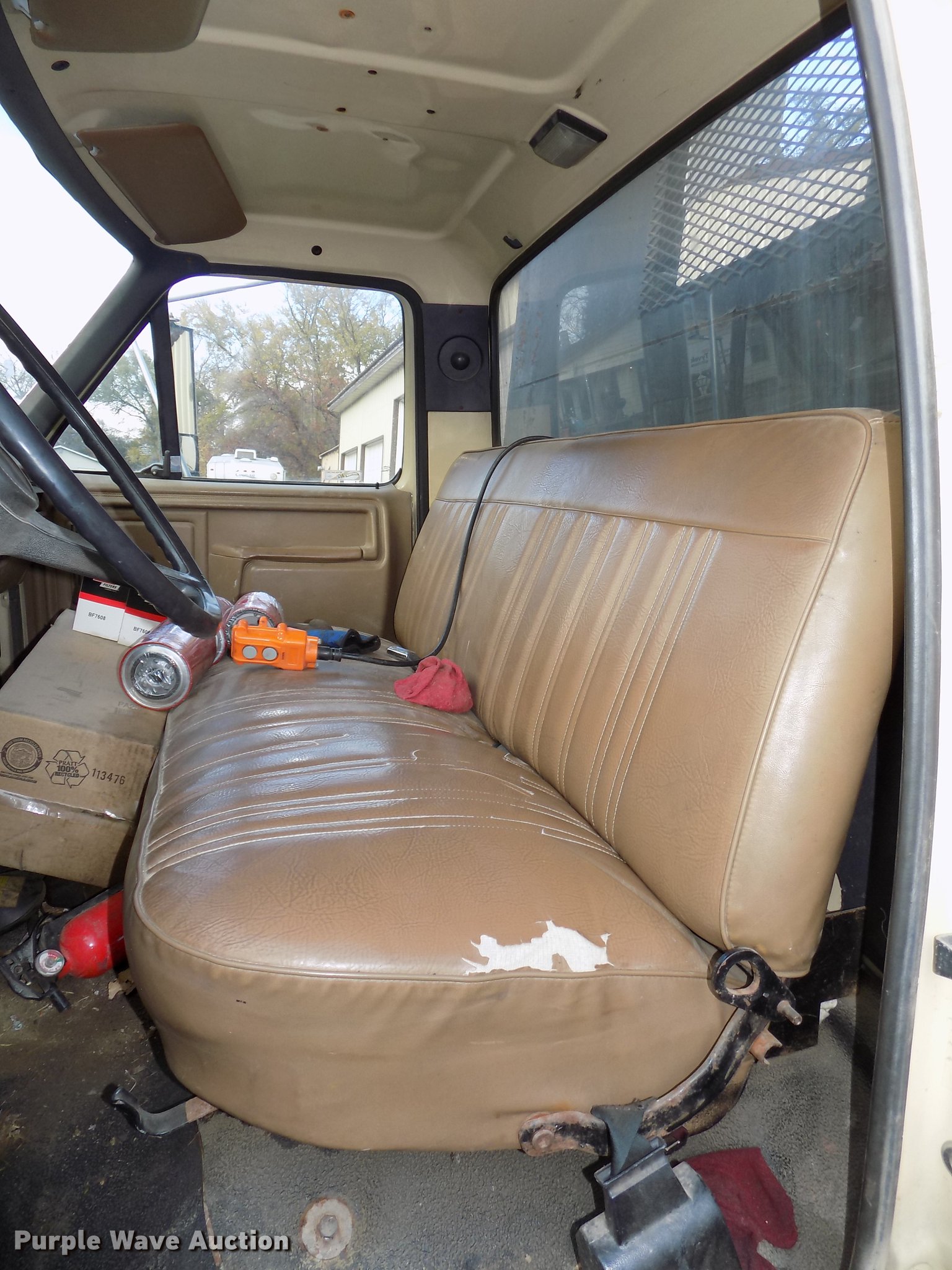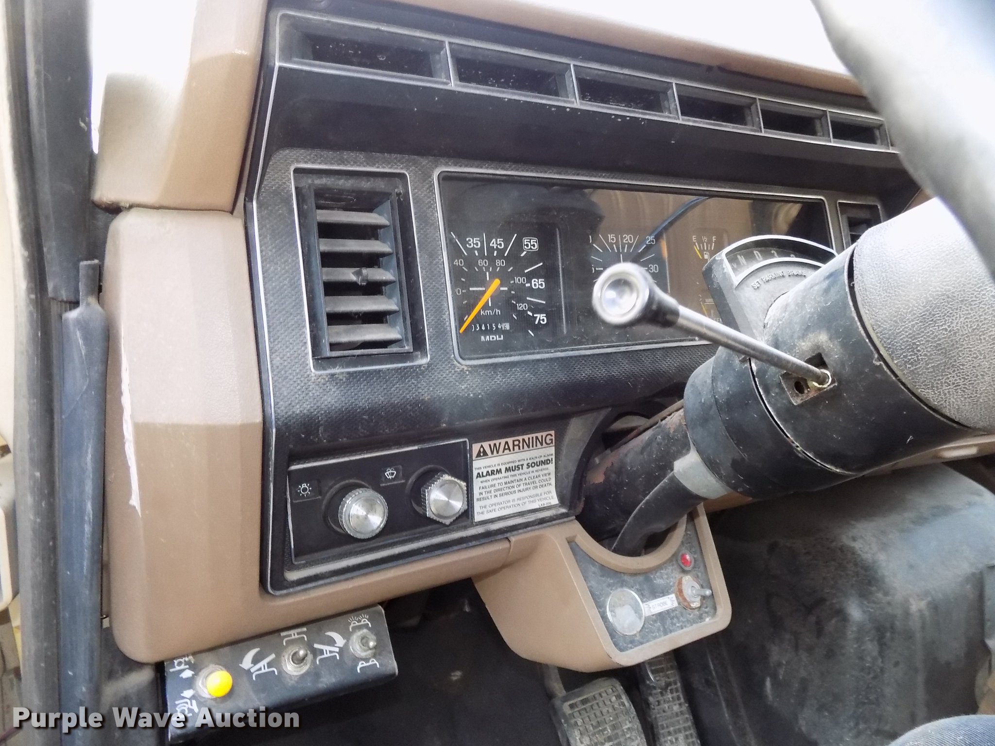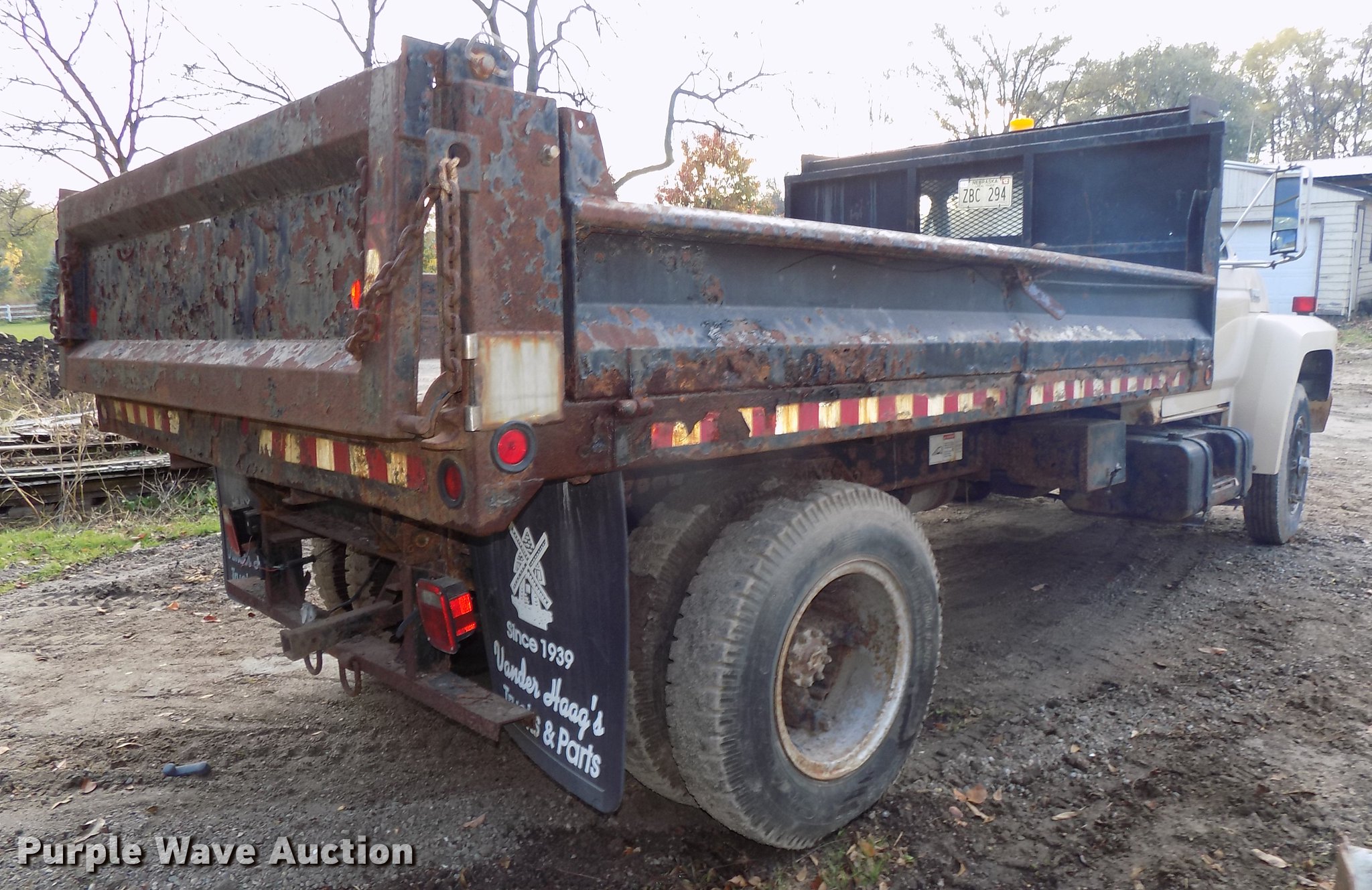 Purple Wave is selling a used Construction Dump Truck in Nebraska. This item is a 1989 Ford F600 dump truck with the following: 34,155 miles on odometer, 6.6L L6 turbo diesel engine, Automatic transmission, Single axle, AC and heat, AM/FM/cassette, Suspension seat, 12'L x 96"W steel dump bed, 14" side height, Single cylinder hoist, Electric over hydraulic operation, Manual operated end gate, Receiver hitch, Trailer wiring, Spring suspension, Air brakes, 8.25-20 tires, GVWR 24,000 lbs, Additional unused filters included, Snow plow controls and mounts not included, Right rear brake line leaks
