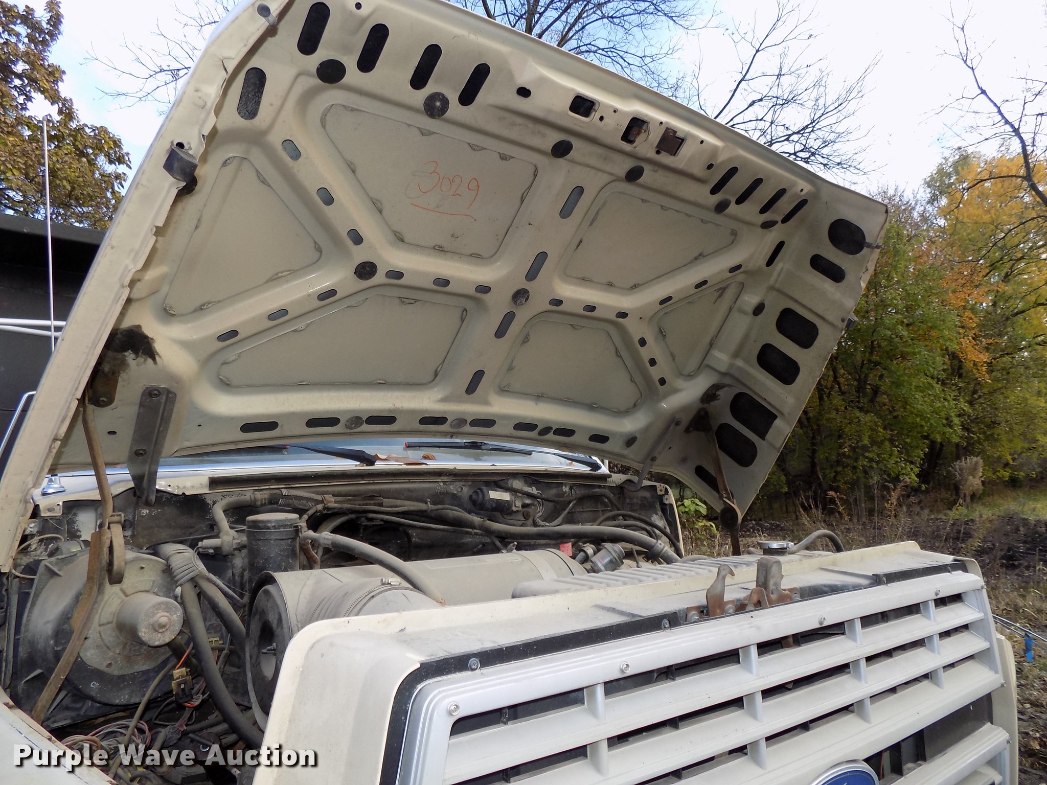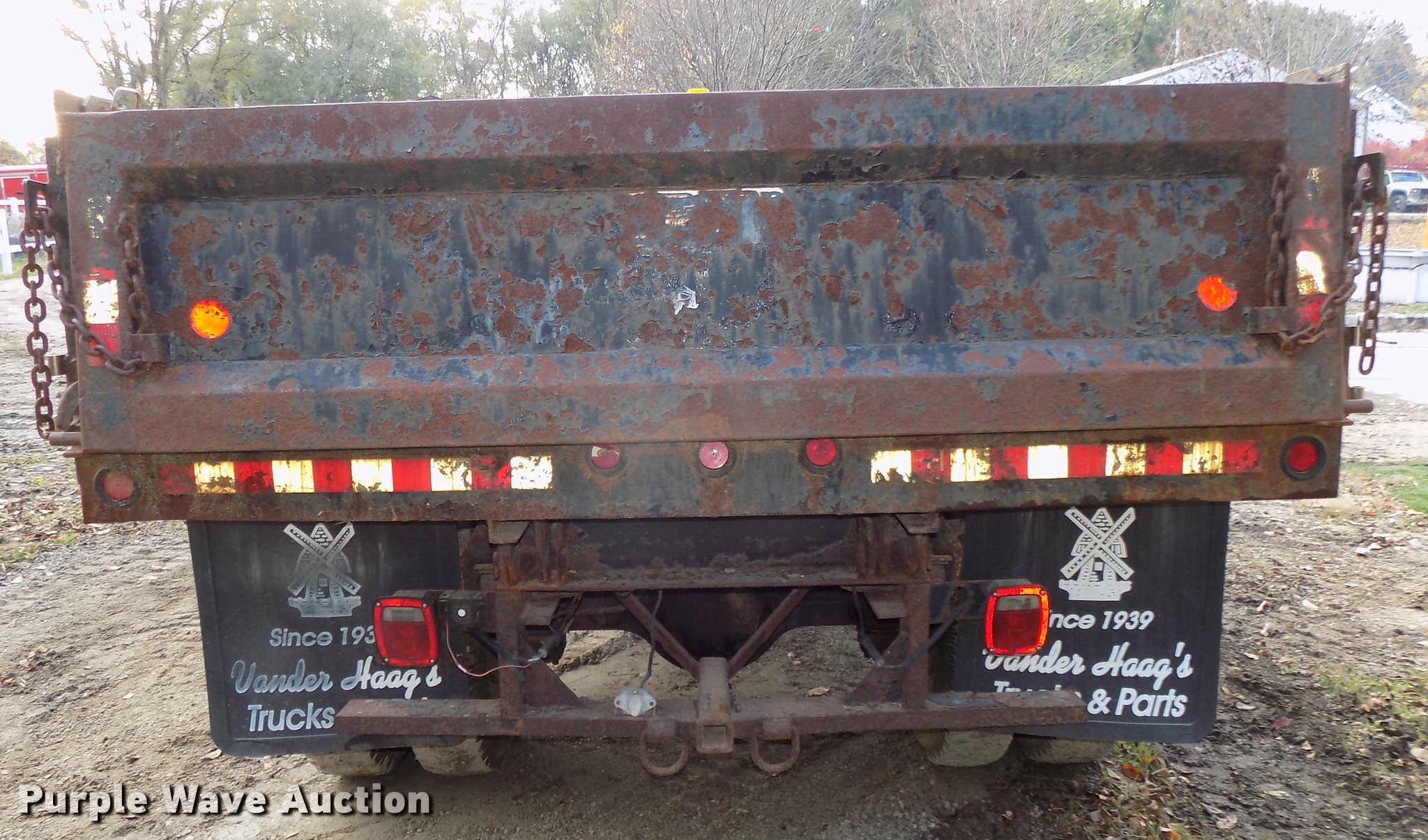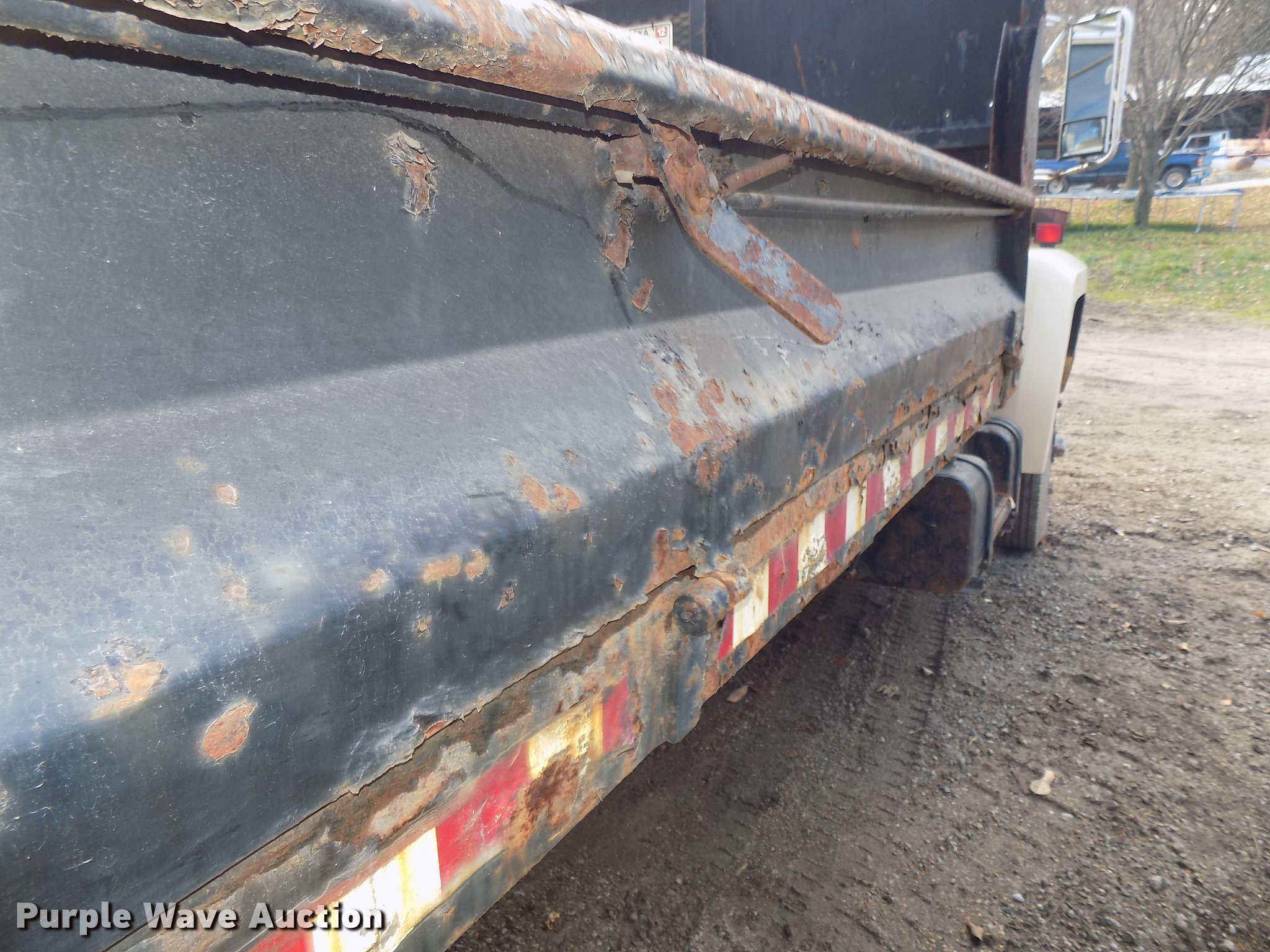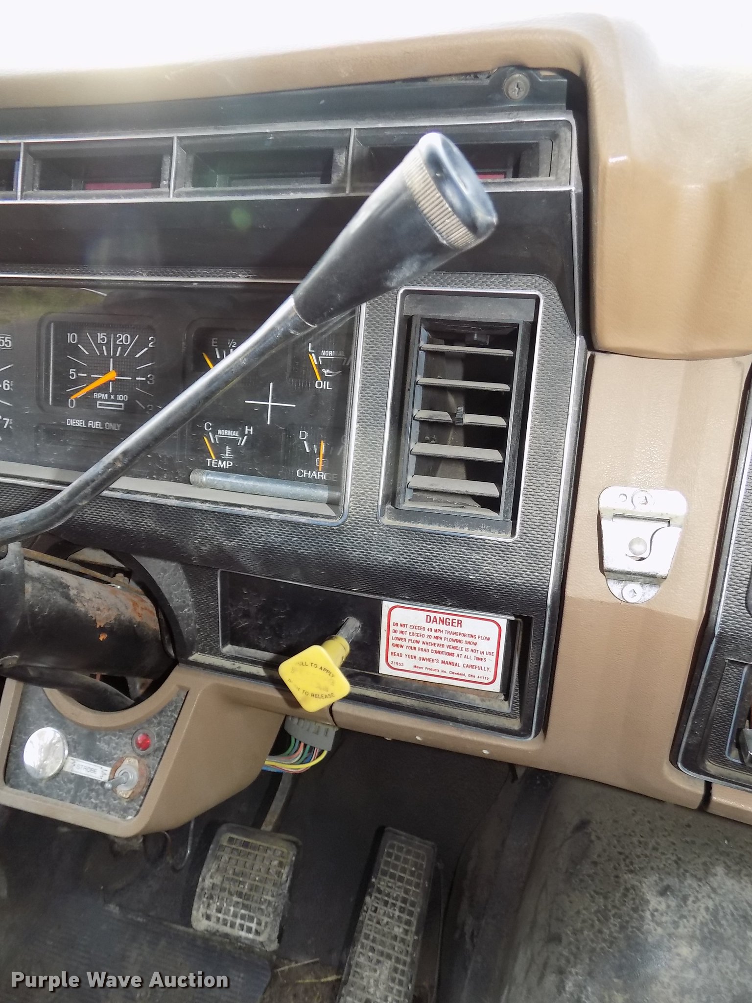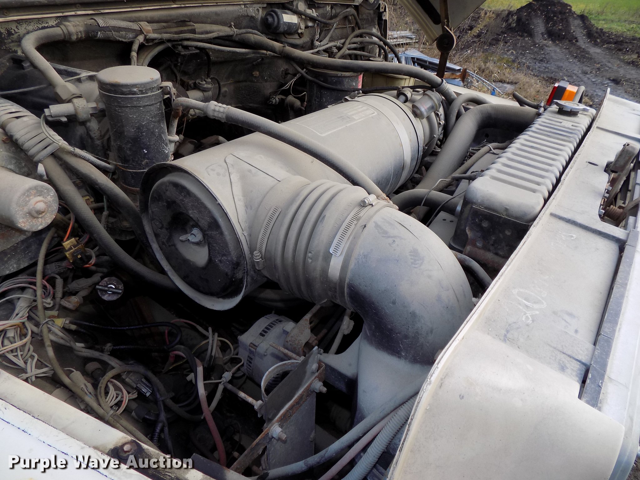 Purple Wave is selling a used Construction Dump Truck in Nebraska. This item is a 1989 Ford F600 dump truck with the following: 34,155 miles on odometer, 6.6L L6 turbo diesel engine, Automatic transmission, Single axle, AC and heat, AM/FM/cassette, Suspension seat, 12'L x 96"W steel dump bed, 14" side height, Single cylinder hoist, Electric over hydraulic operation, Manual operated end gate, Receiver hitch, Trailer wiring, Spring suspension, Air brakes, 8.25-20 tires, GVWR 24,000 lbs, Additional unused filters included, Snow plow controls and mounts not included, Right rear brake line leaks
