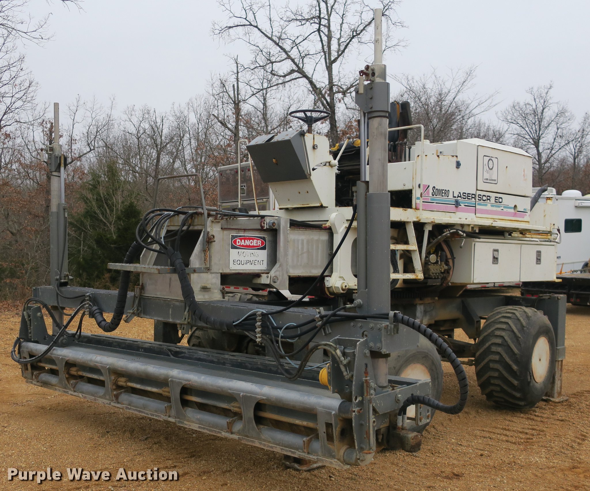 Purple Wave is selling a used Paver or Screed in Missouri. This item is a Somero S-240 laser screed with the following: 5,061 hours on meter, Deutz three cylinder diesel engine, Hydrostatic transmission, Two wheel steer, Four wheel steer, Crab steer, (3) receivers, (4) storage compartments, Hydraulic stabilizers, 38 x 20.00-16 tires