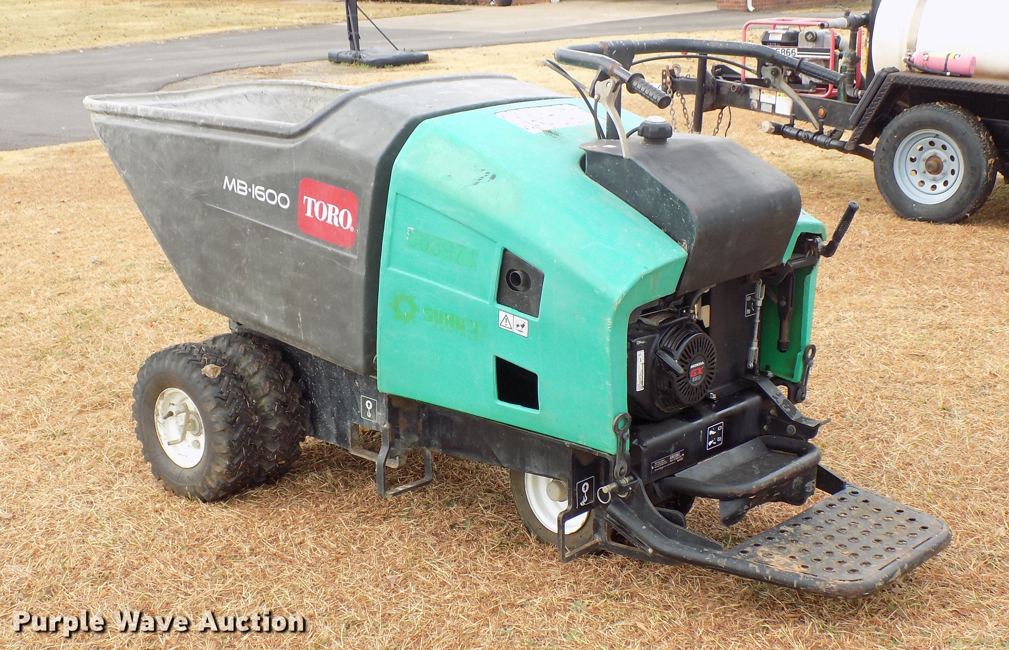 Purple Wave is selling a used Concrete Dispenser in Oklahoma. This item is a 2013 Toro MB1600 power buggy with the following: Model 68038G, Honda GX390 single cylinder gas engine, Hydraulic drive, 1F-1R gears, 16 cu. ft. hopper, 5.70-8 foam-filled tires, Serial 313000182