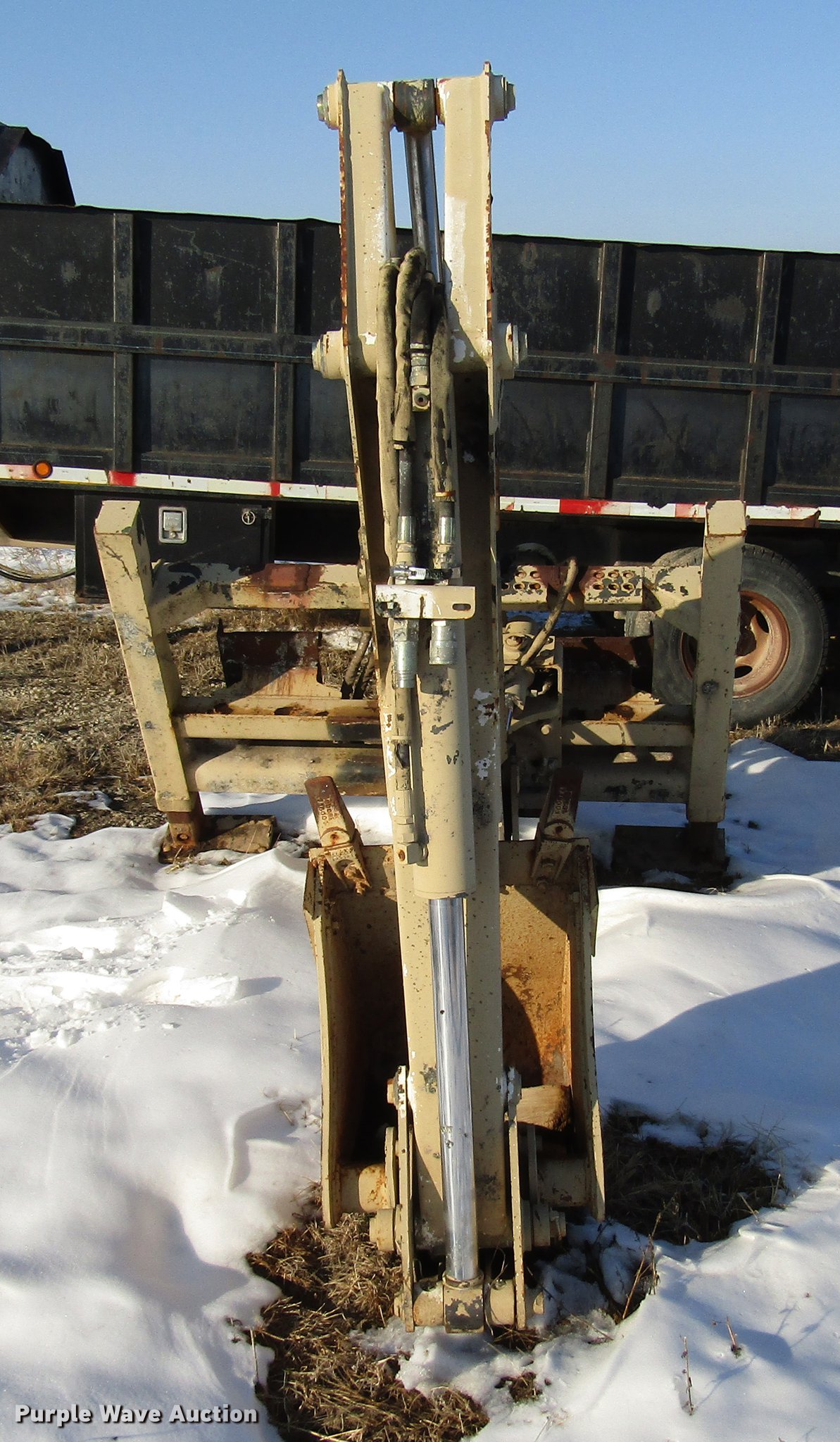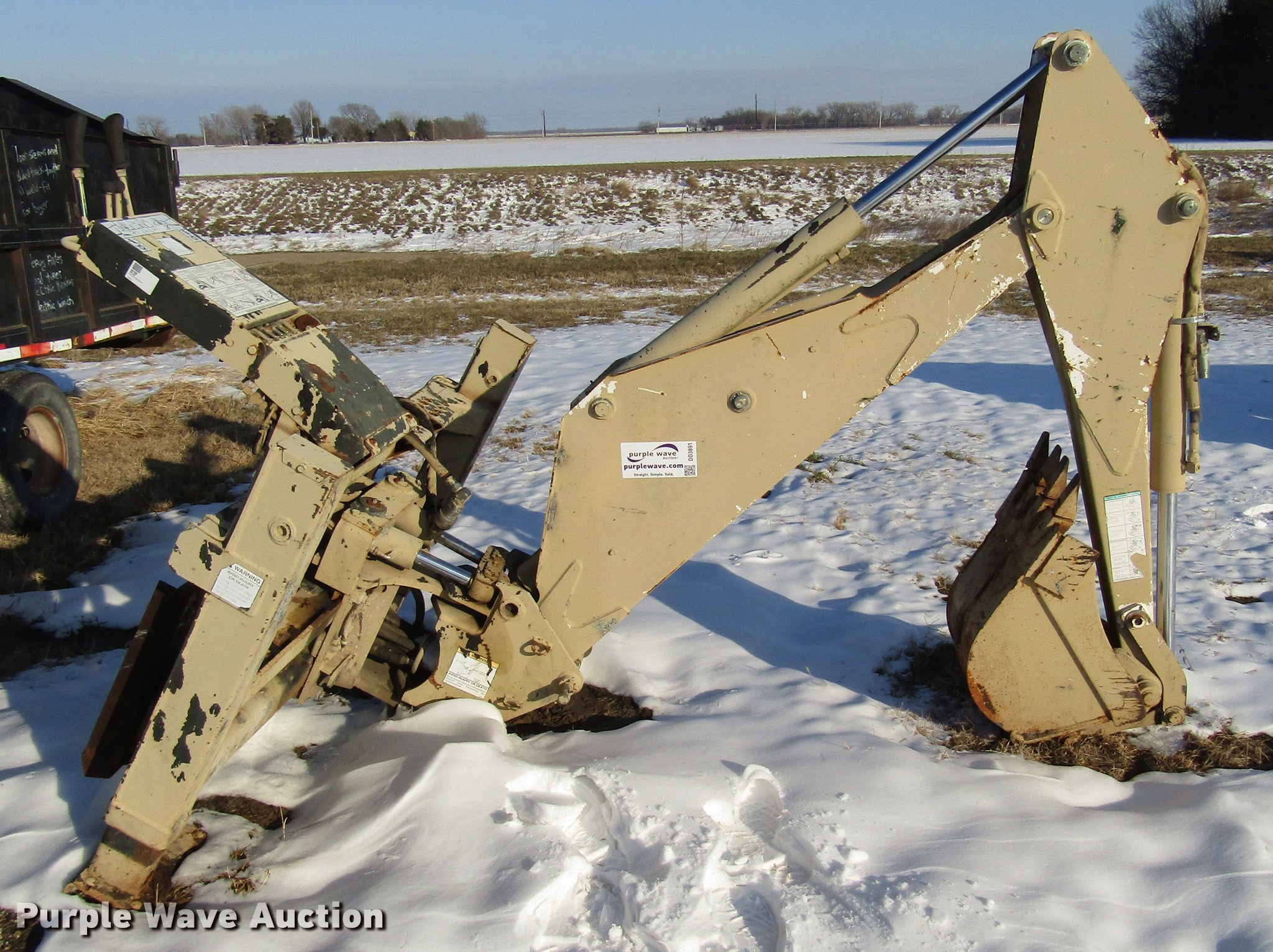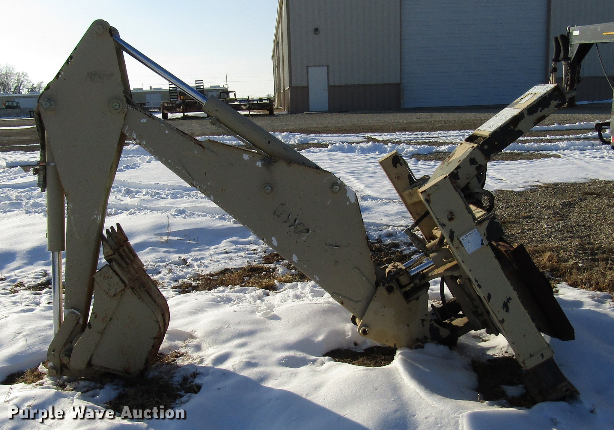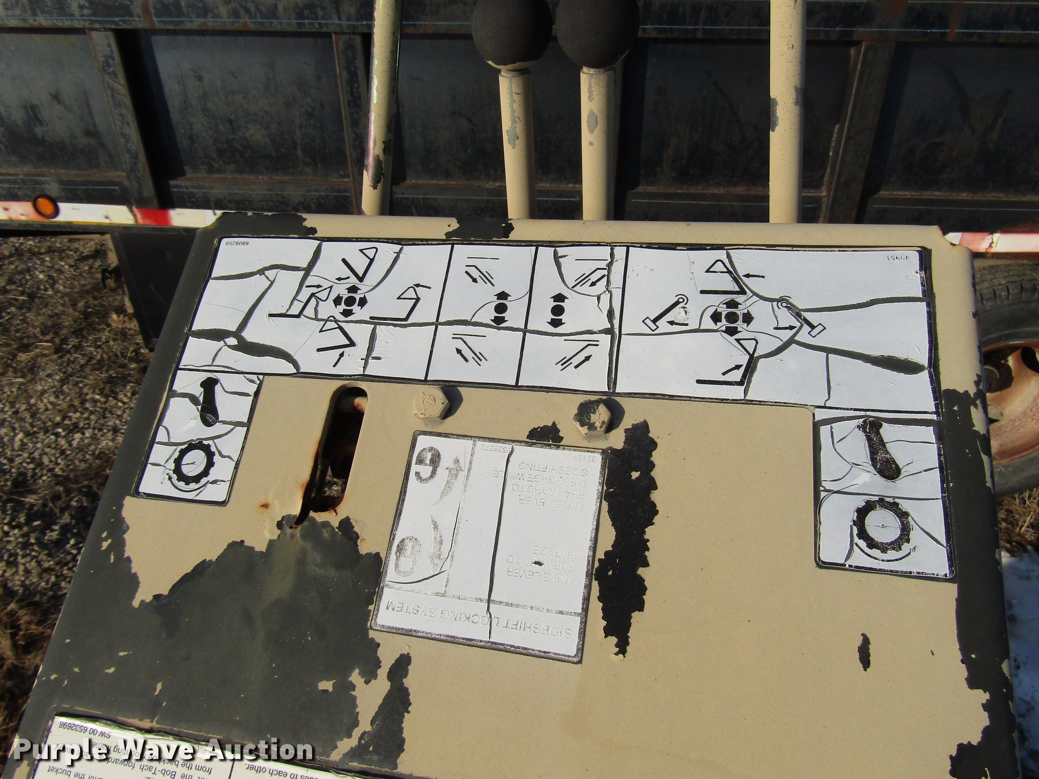Purple Wave is selling a used Skid Steer Attach. in Kansas. This item is a Bobcat 835S skid steer backhoe with the following: Four lever controls, 17"W backhoe bucket, Bolt-on teeth, Stabilizers, Auxiliary hydraulics, Serial 233501085