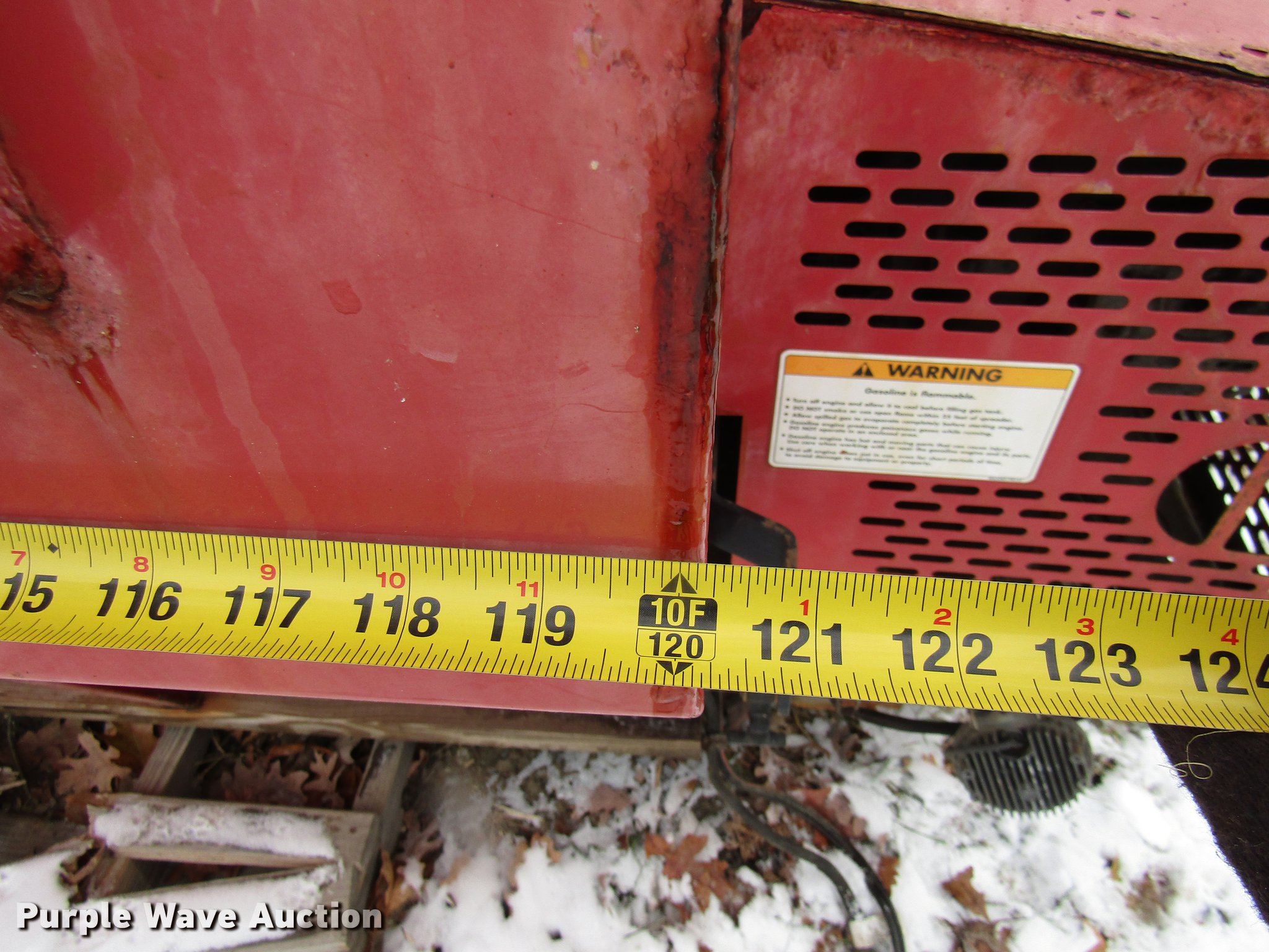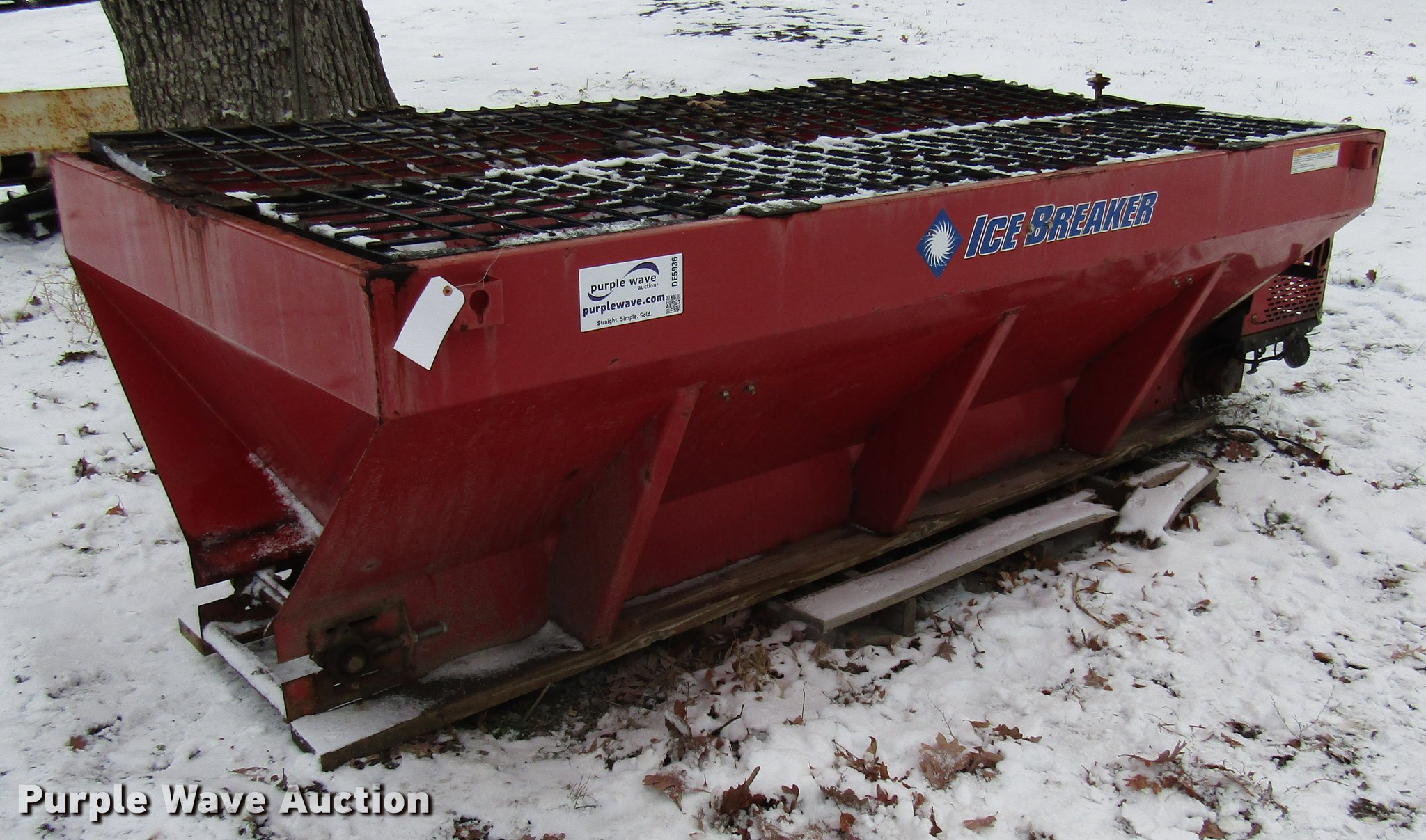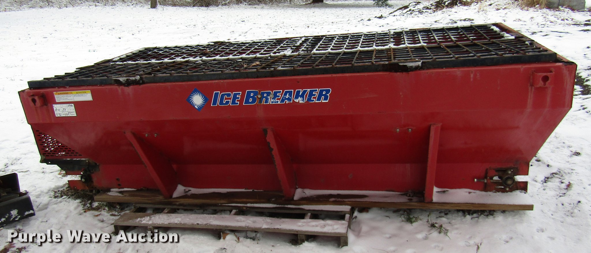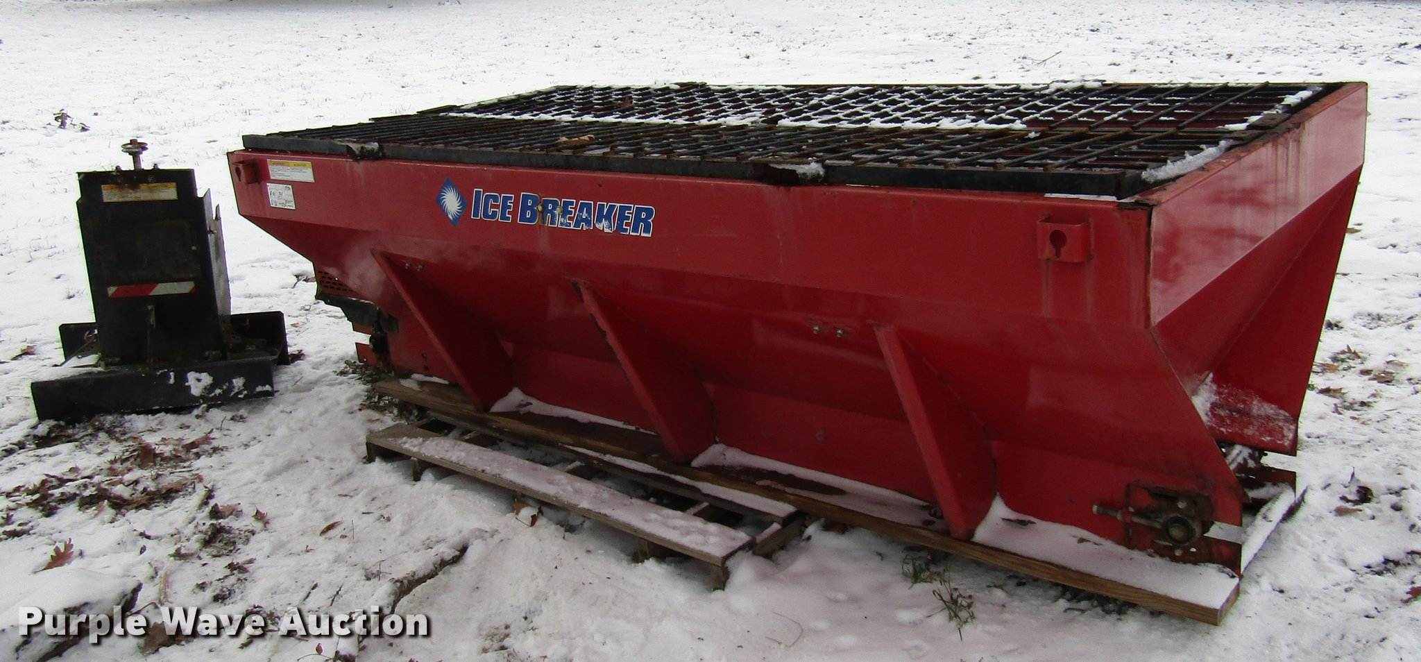 Western Ice Breaker spreader. Honda gas engine 11 HP, 10'L x 58"W, 12"W chain, 14" diameter spinner, Possible bearing issues, Unknown operating condition, 8'W endgate spreader 18" spreader fan, Serial 09050430653994819-2. Freitag Seasonal Services. 20200 N 250 East Rd. Danvers, IL 61732