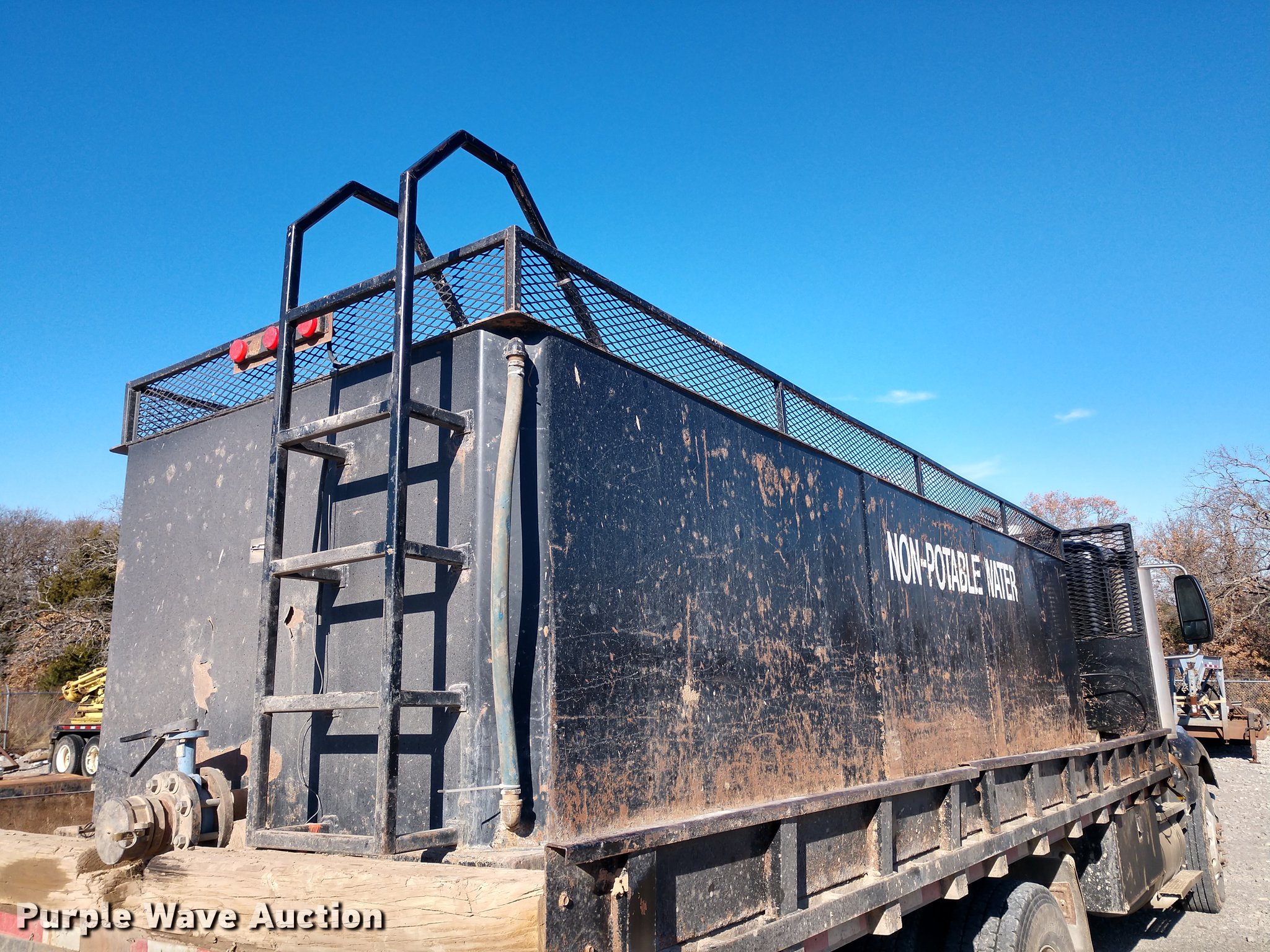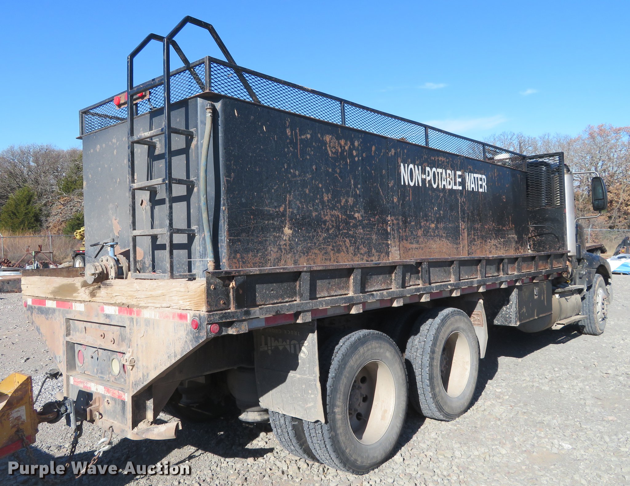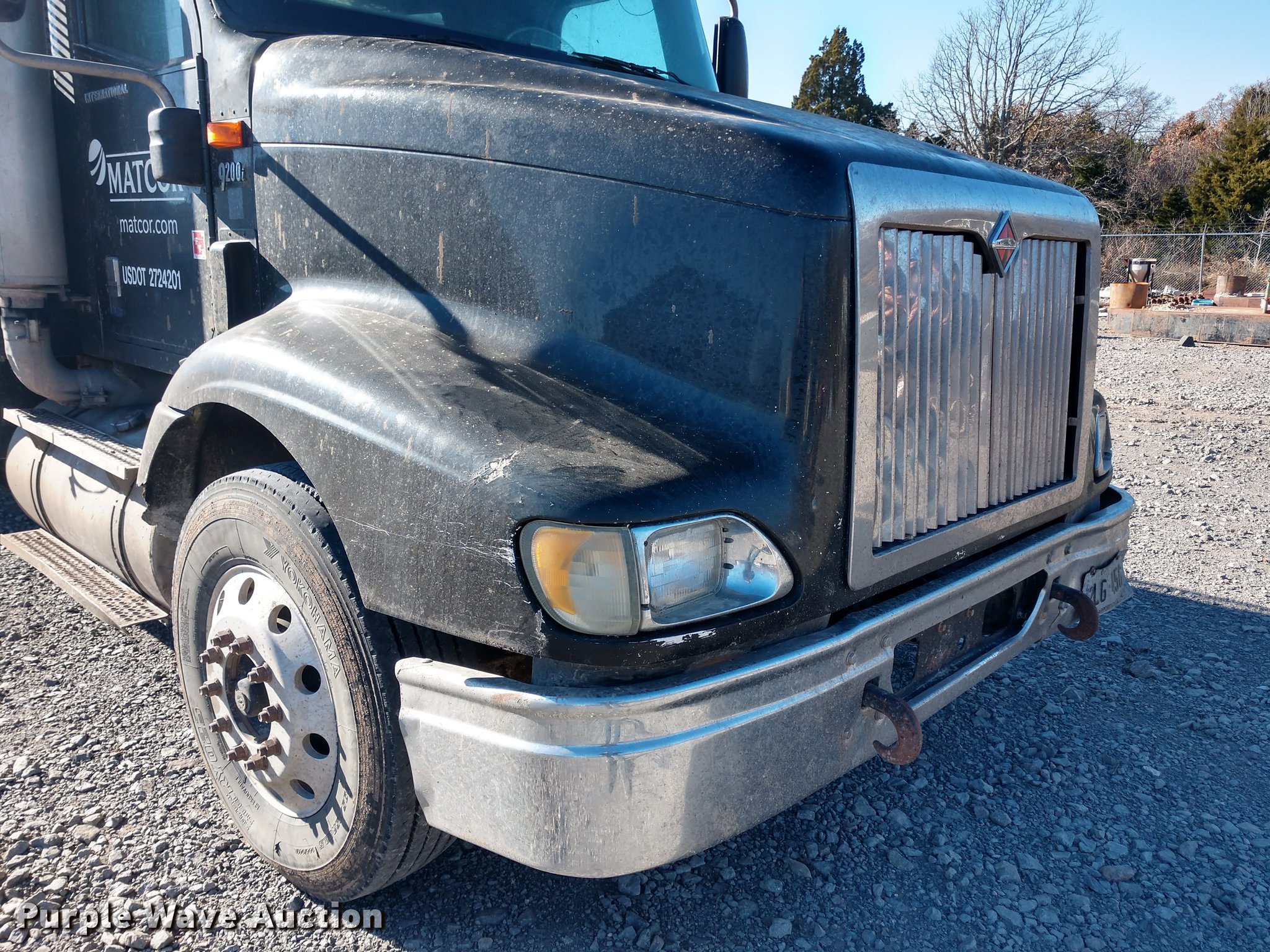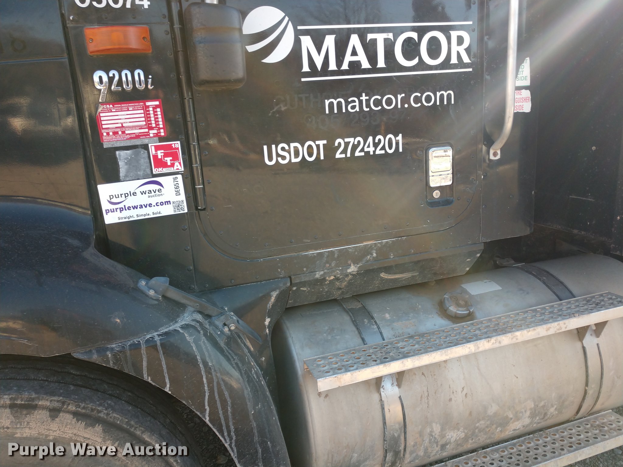 Purple Wave is selling a used Flat Bed Truck in Oklahoma. This item is a 2005 International 9200i flatbed truck with the following: 456,693 miles on odometer, Cummins ISX 14.9L L6 turbo diesel engine, 10 speed manual transmission, Inter-axle differential lock, AC and heat, Cruise, AM/FM, Air suspension seat, Exterior visor, 20'L x 8'W flatbed, 19'L x 67" x 45" tank, Air suspension, Air brakes, 295/75R22.5 tires, Non-operational AC, Unit# 4018