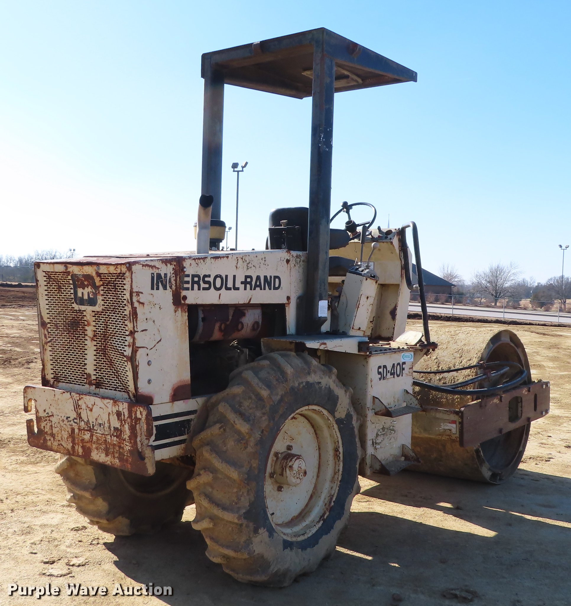 Purple Wave is selling a used Single Drum Roller Compactor in Kansas. This item is a 1988 Ingersoll Rand SD40F single drum vibratory roller with the following: 2,754 hours on meter, John Deere four cylinder diesel engine, Hydrostatic transmission, OROPS, Suspension seat, 54"W drum, Combination/shell kit, Double vibratory system, 12.4-24 tires, Serial 5364