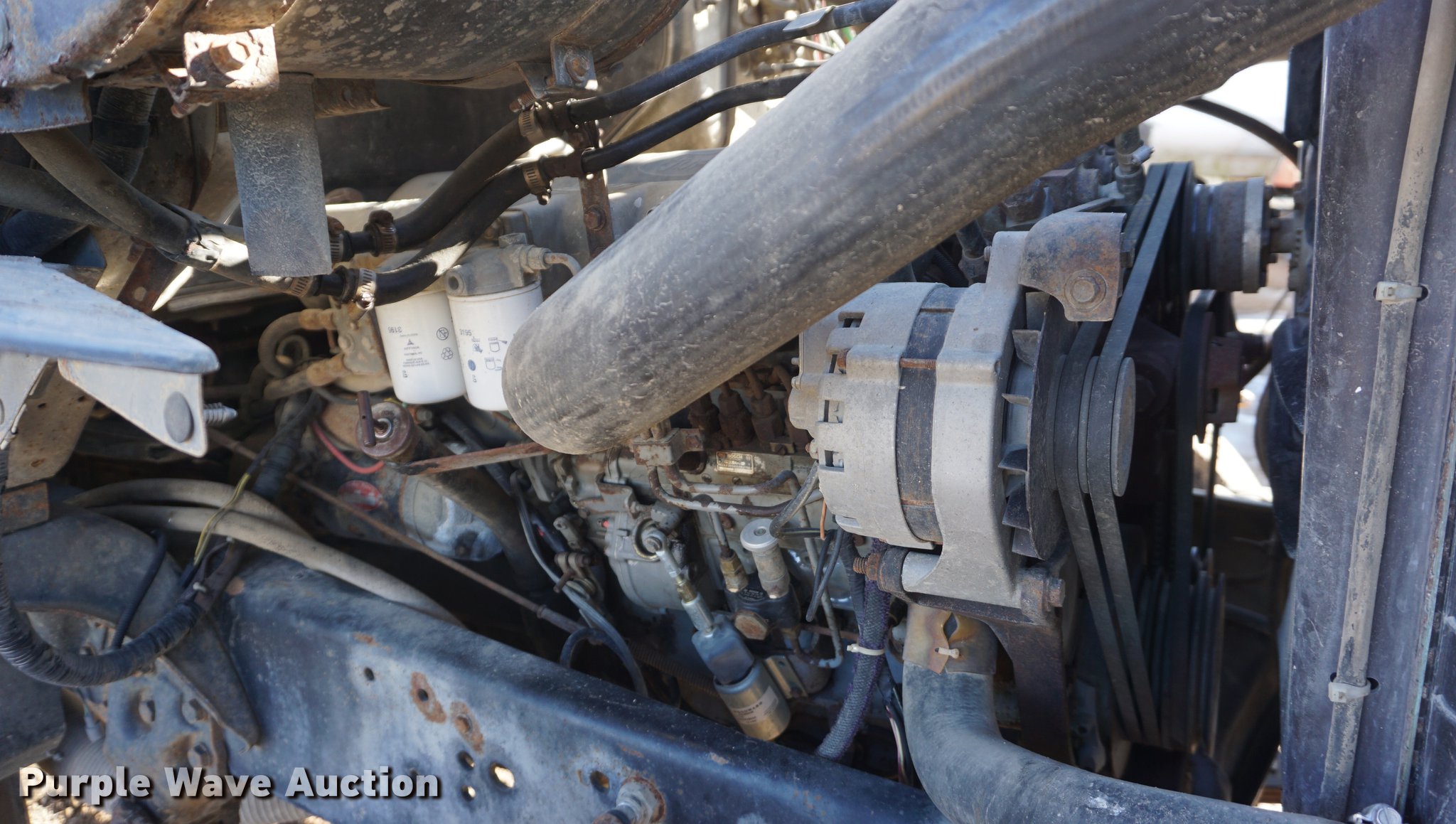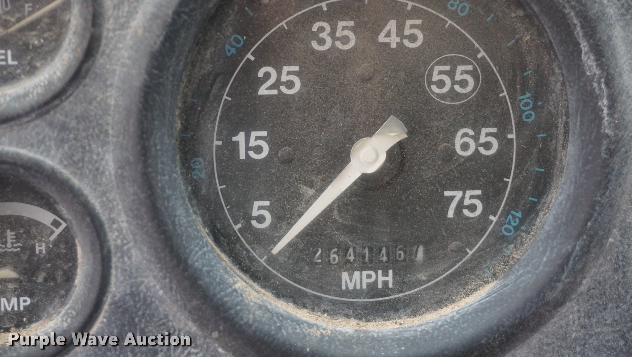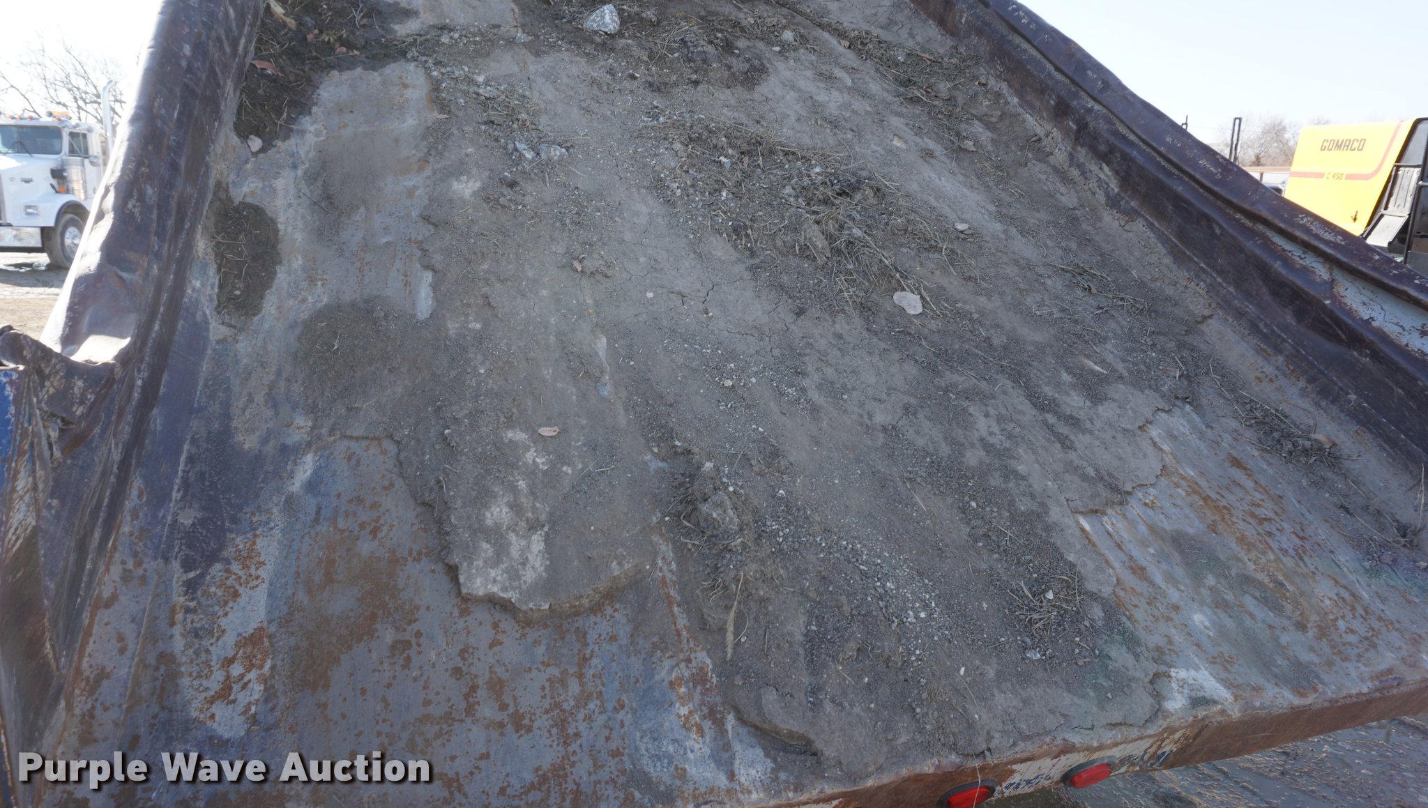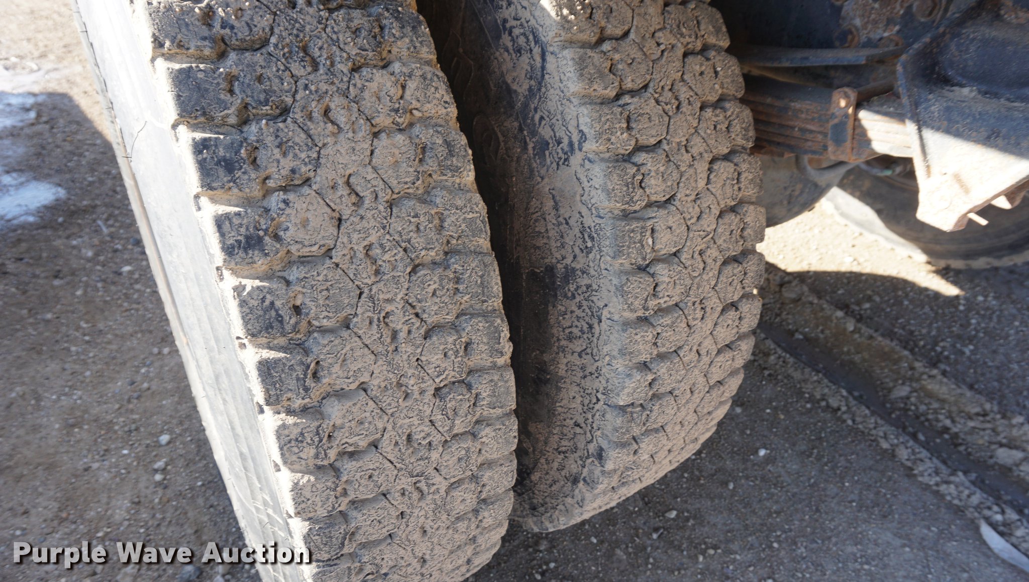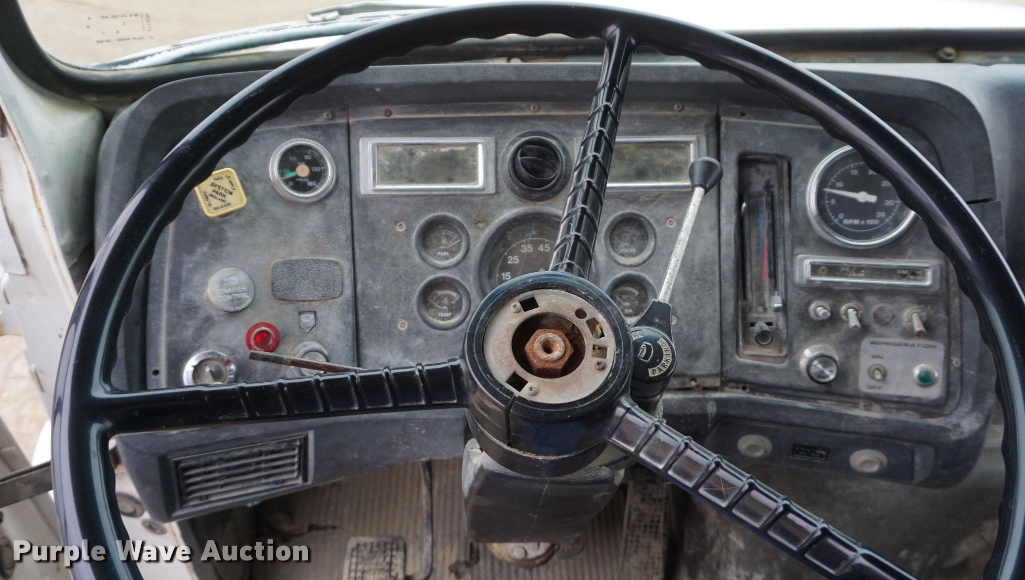 Purple Wave is selling a used Flat Bed Truck in Kansas. This item is a 1990 Ford L7000 dump flatbed truck with the following: 264,146 miles on odometer, 6.6L six cylinder diesel engine, 185 HP, Five speed manual transmission, Single axle, Heat, PTO, Crysteel steel flatbed, 14'L x 94"W, 12" side height, Single ram hoist, Single fuel tank, Pintle hitch, Spring suspension, Air brakes, 11R22.5 tires