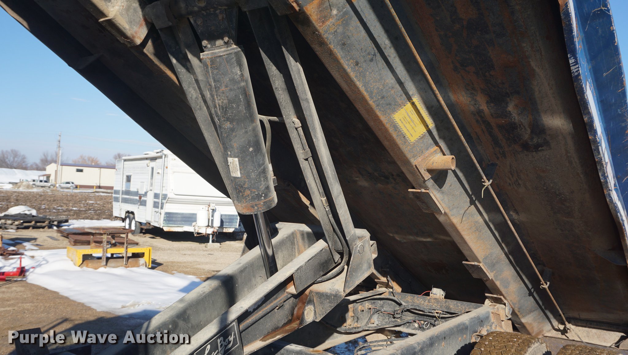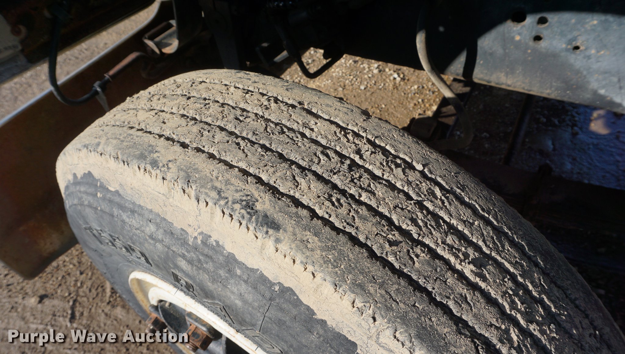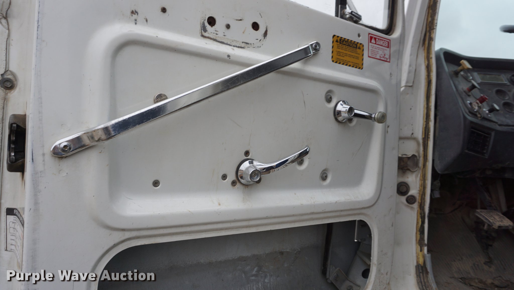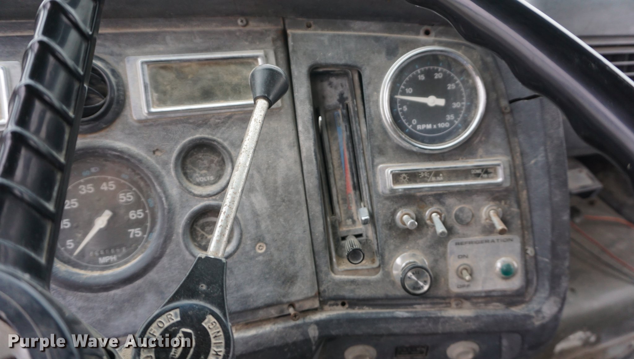 Purple Wave is selling a used Flat Bed Truck in Kansas. This item is a 1990 Ford L7000 dump flatbed truck with the following: 264,146 miles on odometer, 6.6L six cylinder diesel engine, 185 HP, Five speed manual transmission, Single axle, Heat, PTO, Crysteel steel flatbed, 14'L x 94"W, 12" side height, Single ram hoist, Single fuel tank, Pintle hitch, Spring suspension, Air brakes, 11R22.5 tires