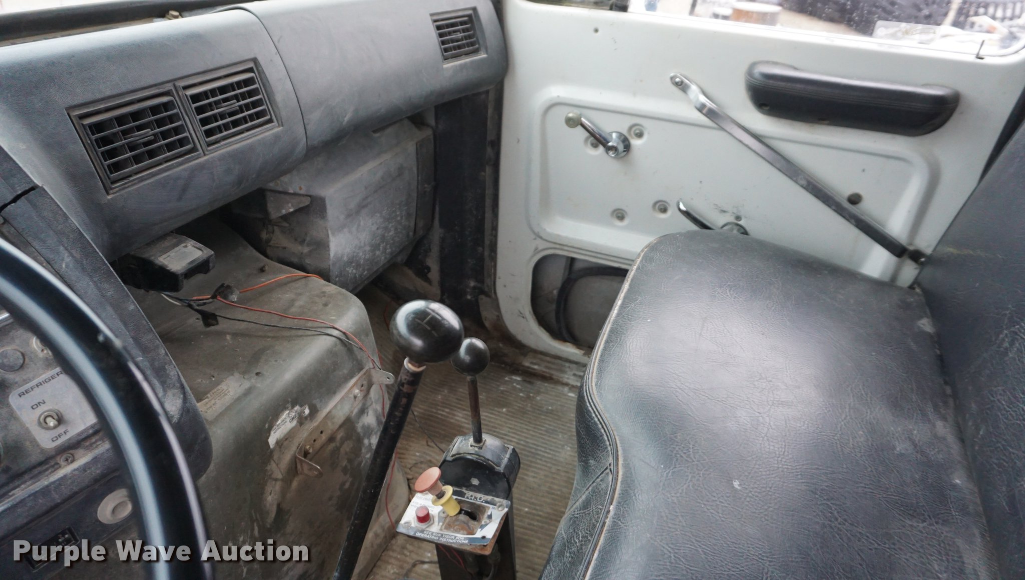 1990 Ford L7000 dump flatbed truck. 264,146 miles on odometer, 6.6L six cylinder diesel engine 185 HP, Five speed manual transmission, Single axle, Heat, PTO, Crysteel steel flatbed 14'L x 94"W, 12" side height, Single ram hoist, Single fuel tank, Pintle hitch, Spring suspension, Air brakes, 11R22.5 tires. Kansas title. Title distribution may be delayed up to 30 days from verification of funds. 1FDWR72P9LVA02822. Ebert Construction Inc.. 103 W Valley Street. Wamego, KS 66547