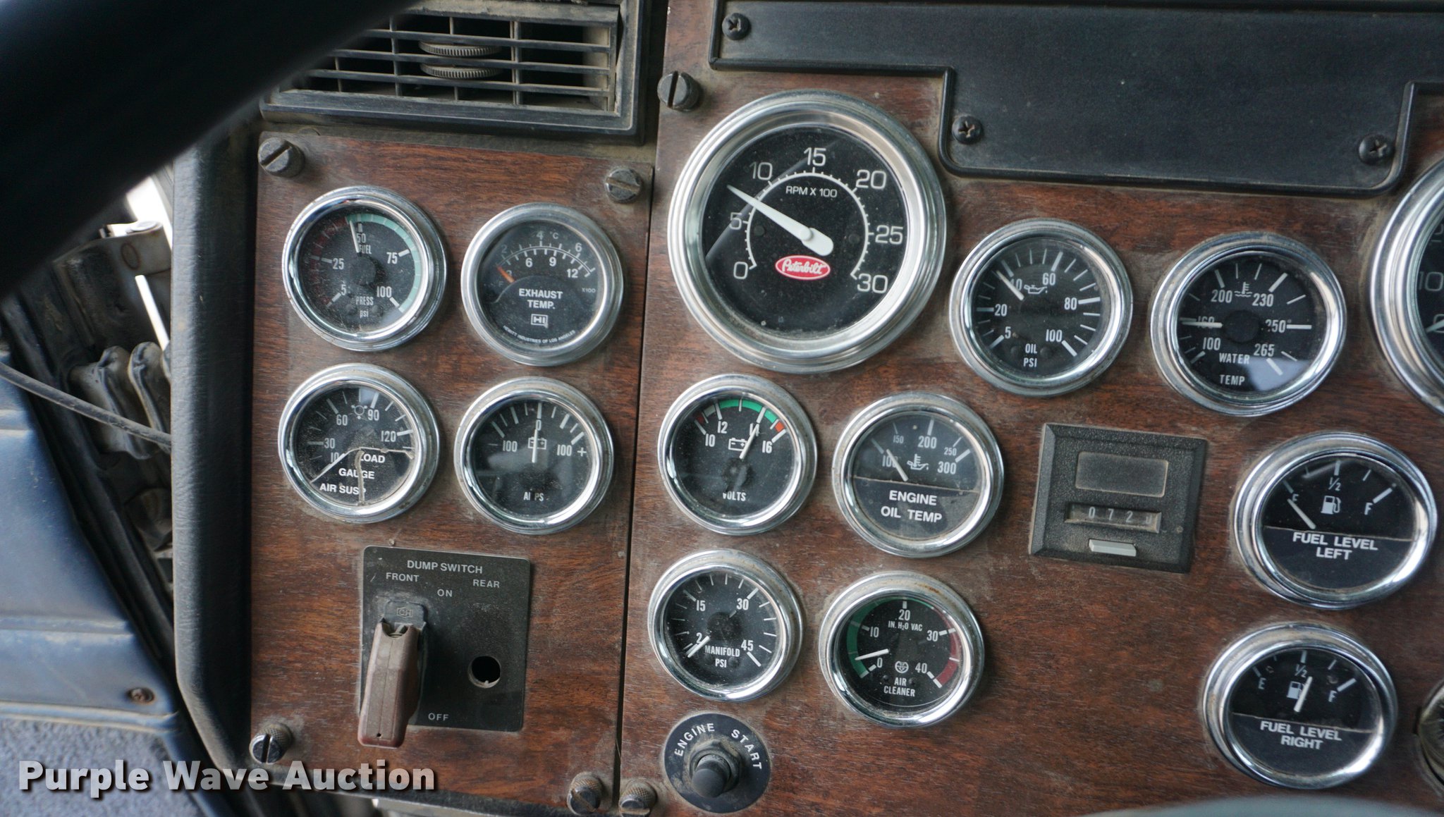 Purple Wave is selling a used Truck Tractor in Kansas. This item is a 1997 Peterbilt 379 semi truck with the following: 448,661 miles on odometer, 1,258 hours on meter, Caterpillar 3406 14.6L L6 turbo diesel engine, 455 HP, Eaton Fuller 18 speed manual transmission, Tandem axle, Inter-axle differential lock, AC and heat, Tilt, Cruise, AM/FM/CD, Air suspension seat, Air ride cab, PTO, Wet kit, Dump valves, Dual exhaust stacks, Aluminum deck plate, Sliding fifth wheel plate, Dual fuel tanks, Stainless steel full fenders, Air suspension, Air brakes, 11R24.5 tires, GVWR 56,000 lbs, FAWR 12,000 lbs, IAWR 22,000 lbs, RAWR 22,000 lbs, Front cover oil leak, Unit# 317