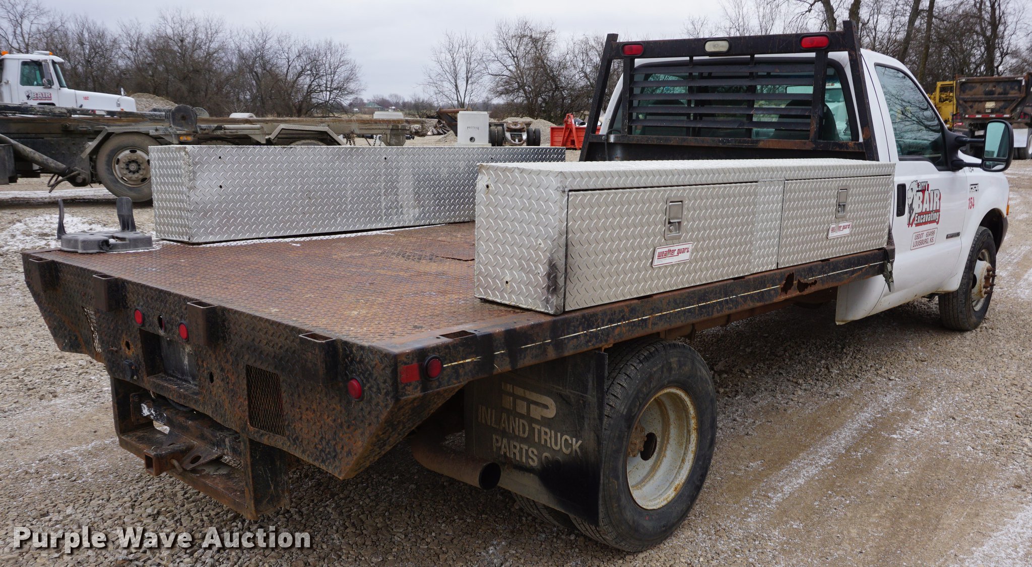 Purple Wave is selling a used 3/4 or 1 Ton Pickup or Van in Kansas. This item is a 2000 Ford F350 Super Duty flatbed pickup truck with the following: 359,645 miles on odometer, 7.3L V8 OHV 16V turbo diesel engine, Five speed manual transmission, AC and heat, AM/FM, Vinyl interior, 11'L x 94"W flatbed, Toolbox, Gooseneck hitch, Receiver hitch, 215/85R16 tires, Windshield cracked