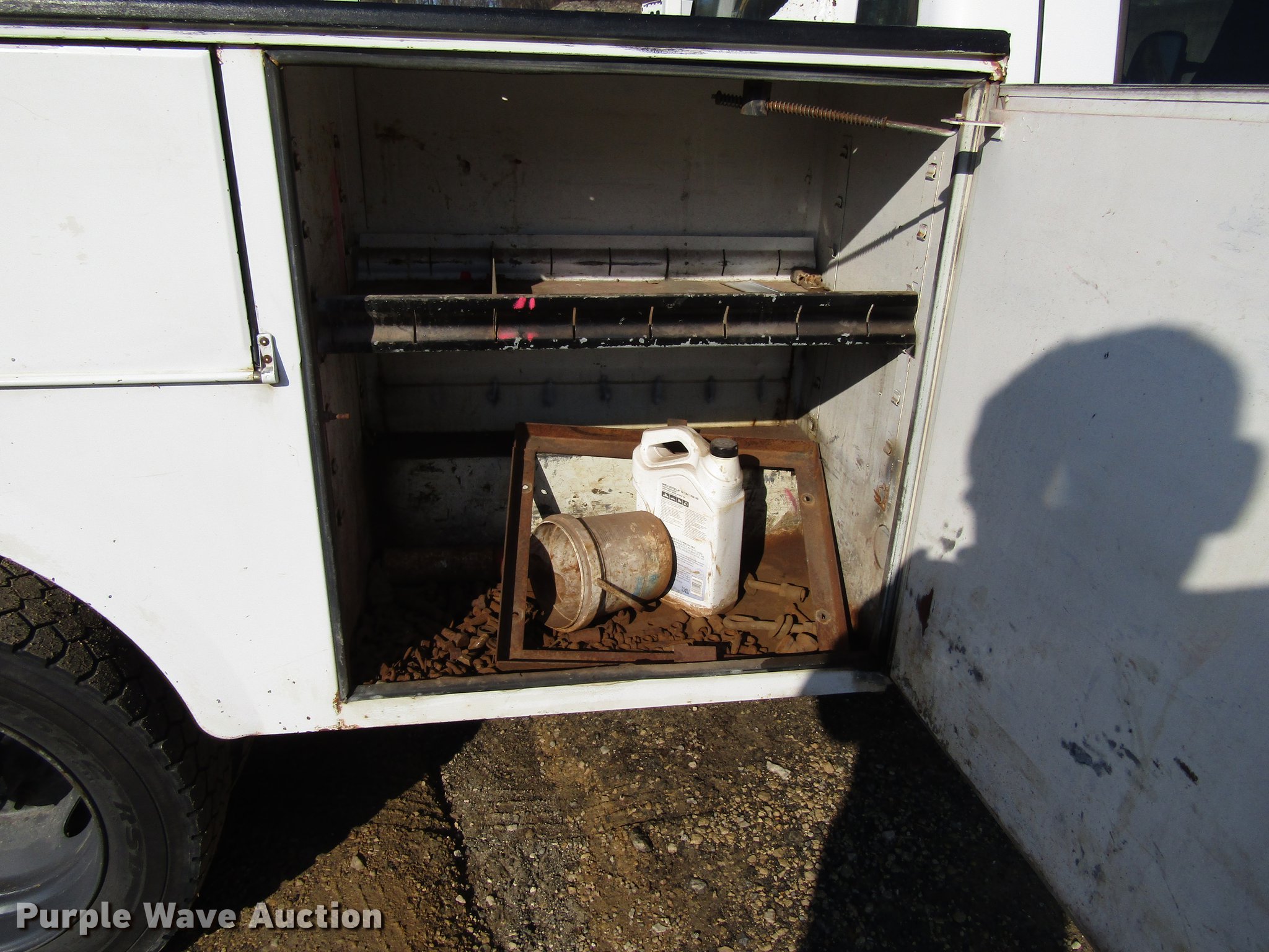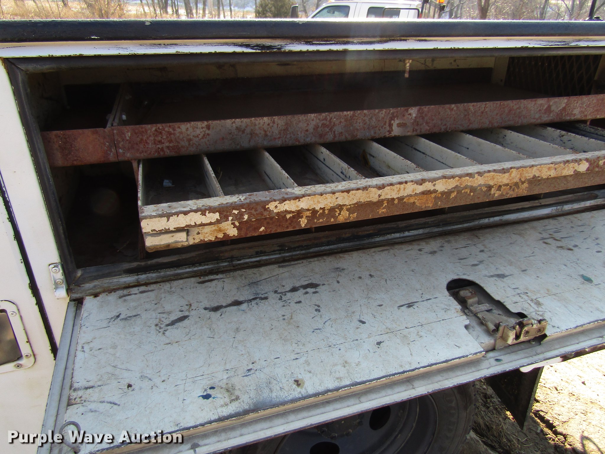 Purple Wave is selling a used Service Truck in Iowa. This item is a 2004 Ford F550 Super Duty Crew Cab utility truck with the following: 206,116 miles on odometer, 6.0L V8 OHV 32V turbo diesel engine, Five speed manual transmission, AC and heat, AM/FM, Trailer brake controller, Front tow hooks, 9'L utility bed, Shelving, Slide-out drawers, Receiver hitch, 176" wheelbase, Spring suspension, Hydraulic brakes, 225/70R19.5 tires, Service Records available upon request