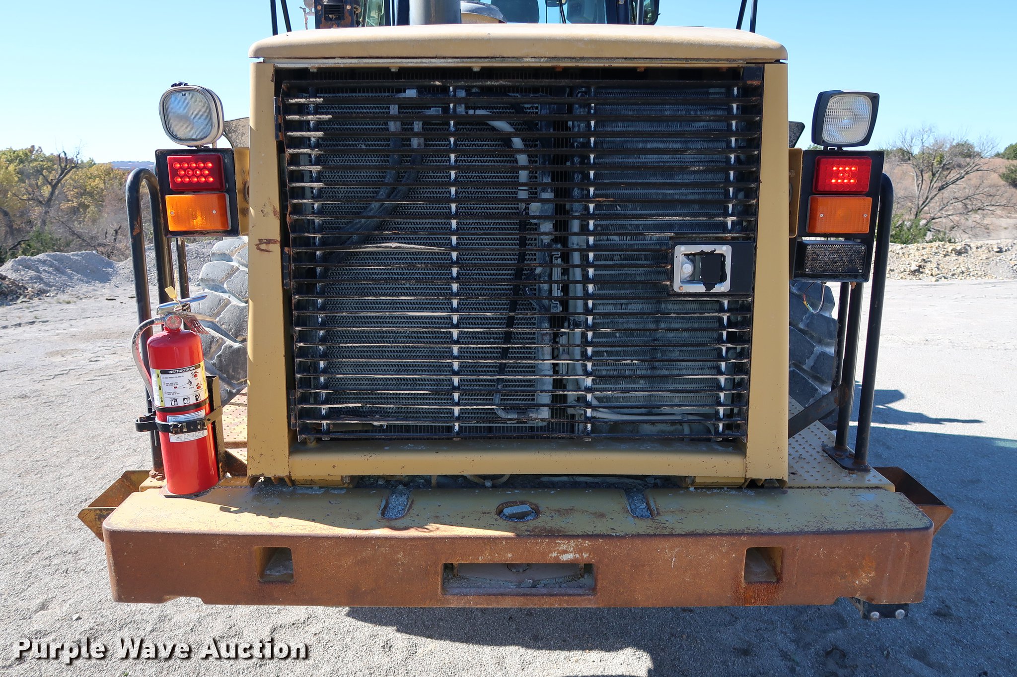 Purple Wave is selling a used Wheel Loader in Oklahoma. This item is a 2002 Caterpillar 980G Series II wheel loader with the following: 31,265 hours on meter, Caterpillar 3406 14.6L six cylinder turbo diesel engine, 333 HP, Serial BET01384, Powershift transmission, 4F-4R gears, EROPS, AC and heat, Tilt steering wheel, Two-lever bucket controls, Suspension seat, Front and rear work lights, Wipers, Backup alarm, Load-Rite Force scale system, Caterpillar 134"W bucket, Bolt-on cutting edge, Counterweight, Yokohama 29.5R25 tires, Manual, Serial CAT0980GVAWH00253, Unit# 106319