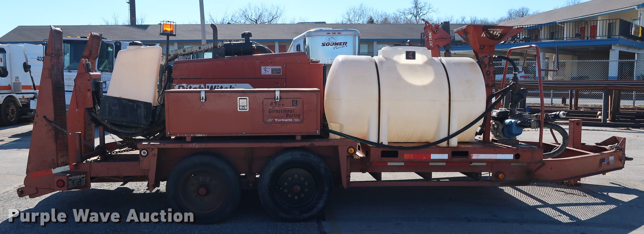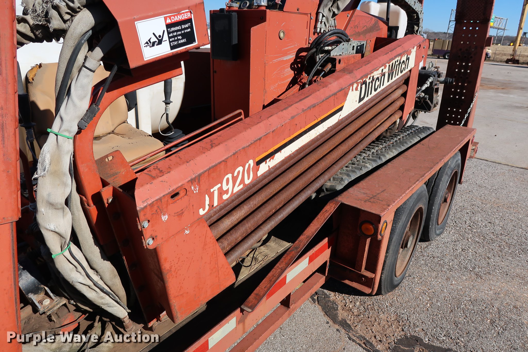 Purple Wave is selling a used Directional Boring Unit in Oklahoma. This item is a 2004 Ditch Witch JT920 directional boring unit with the following: 1,214 hours on meter, Lister Petter four cylinder diesel engine, 33.6 kW, 17'L x 4'W overall, Bean A04130 water pump, 9 gpm, 100 gallon water tank, 5.50" drill bit width, (50) 10'L x 1.50" diameter drill stems, 9.5"W rubber tracks, 2003 Ditch Witch MM5 fluid mix system, 300 gallon tank, Honda GX160 gas engine, VIN 2X0126, Belshe T-16 equipment trailer, 22'L x 96"W overall, 16'L x 78"W deck, 2'L dovetail, 6'L ramps, Toolbox, Pintle hitch, Spring suspension, Electric brakes, Tandem axle, 215/75R17.5 tires, GVWR 16,000 lbs, VIN 16JF0162X21037553, Serial 2Y0453