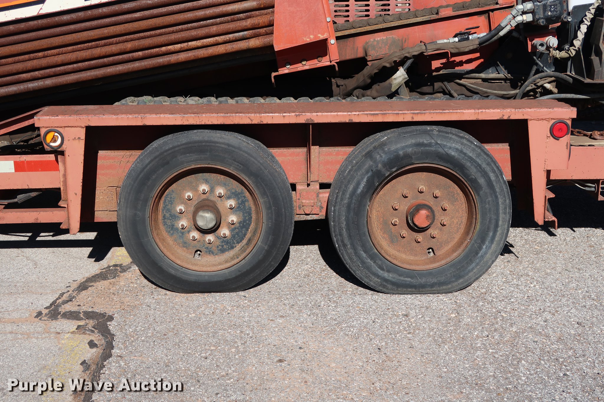 2004 Ditch Witch JT920 directional boring unit. 1,214 hours on meter, Lister Petter four cylinder diesel engine 33.6 kW, 17'L x 4'W overall, Bean A04130 water pump 9 gpm, 100 gallon water tank, 5.50" drill bit width, (50) 10'L x 1.50" diameter drill stems, 9.5"W rubber tracks, 2003 Ditch Witch MM5 fluid mix system 300 gallon tank, Honda GX160 gas engine, VIN 2X0126, Belshe T-16 equipment trailer 22'L x 96"W overall, 16'L x 78"W deck, 2'L dovetail, 6'L ramps, Toolbox, Pintle hitch, Spring suspension, Electric brakes, Tandem axle, 215/75R17.5 tires, GVWR 16,000 lbs, VIN 16JF0162X21037553, Serial 2Y0453. Oklahoma title. Title distribution may be delayed up to 30 days from verification of funds. Benco Machinery, LLC. 7600 N Bryant Ave. Oklahoma City, OK 73121