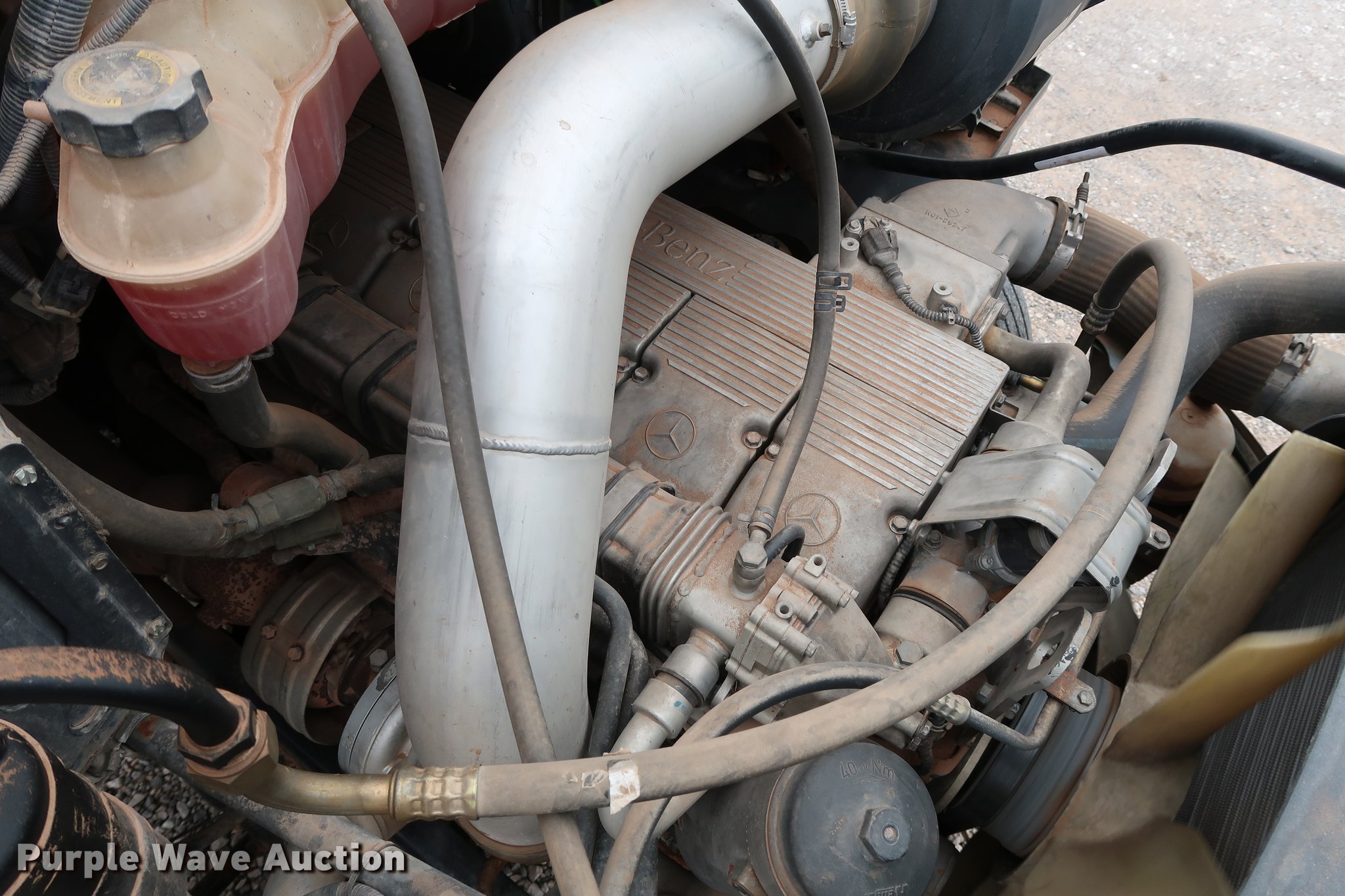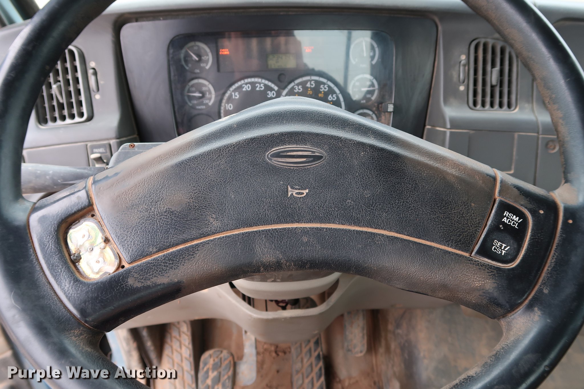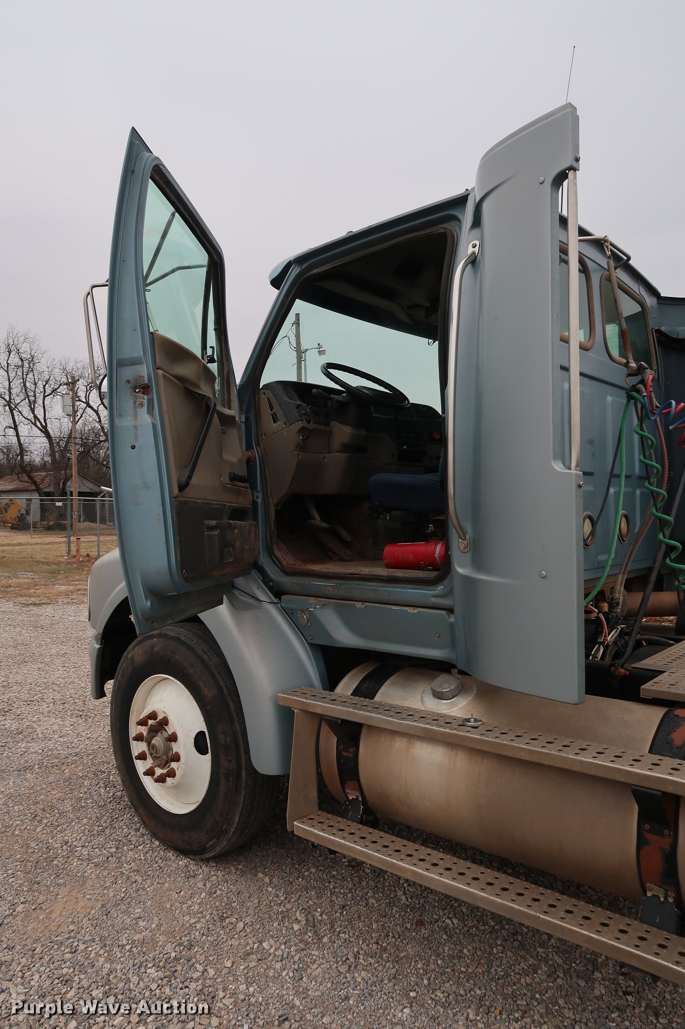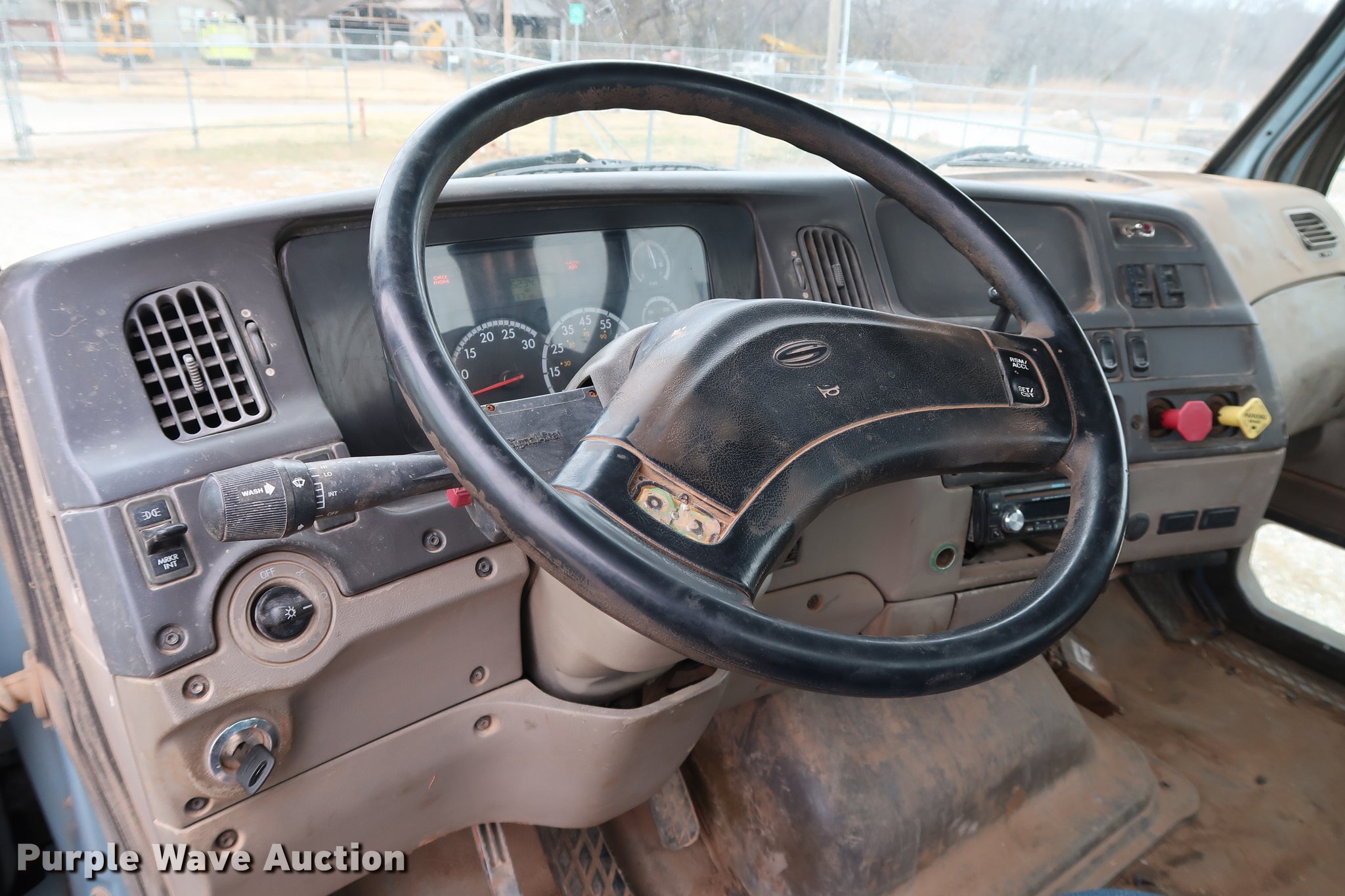 Purple Wave is selling a used Truck Tractor in Oklahoma. This item is a 2005 Sterling A-Line semi truck with the following: 523,475 miles on odometer, Mercedes Benz MBE4000 12.0L L6 turbo diesel engine, 450 HP, Serial 0460799852, Eaton Fuller Road Ranger 10 speed manual transmission, Tandem axle, Inter-axle differential lock, AC and heat, Cruise, AM/FM/CD, Heated mirrors, Air suspension seat, Air ride cab, Block heater, Front tow hooks, Exterior visor, Single rear exhaust stack, Aluminum deck plate, Air operated sliding fifth wheel plate, Dual fuel tanks, Quarter fenders, Mud flaps, 202" wheelbase, Air suspension, Air brakes, Engine brake, 11R24.5 tires, GVWR 52,000 lbs, FAWR 12,000 lbs, IAWR 20,000 lbs, RAWR 20,000 lbs, Check engine light illuminated