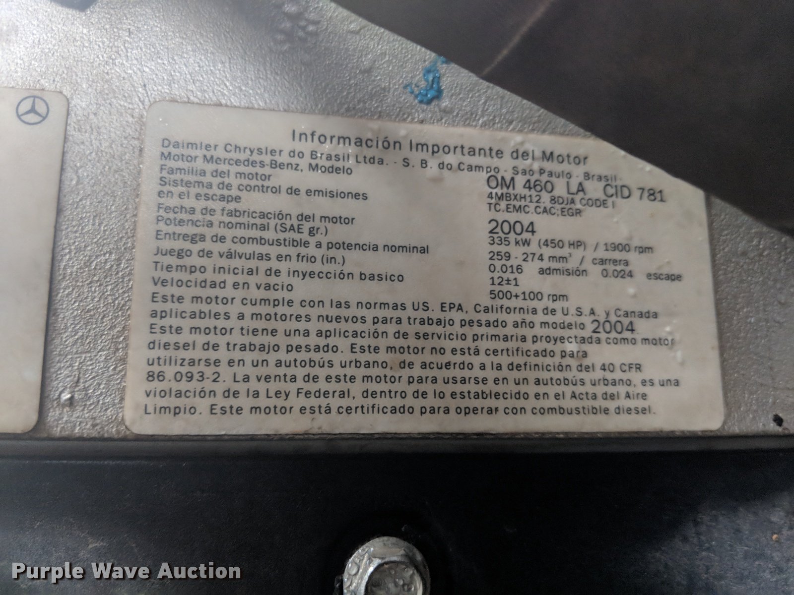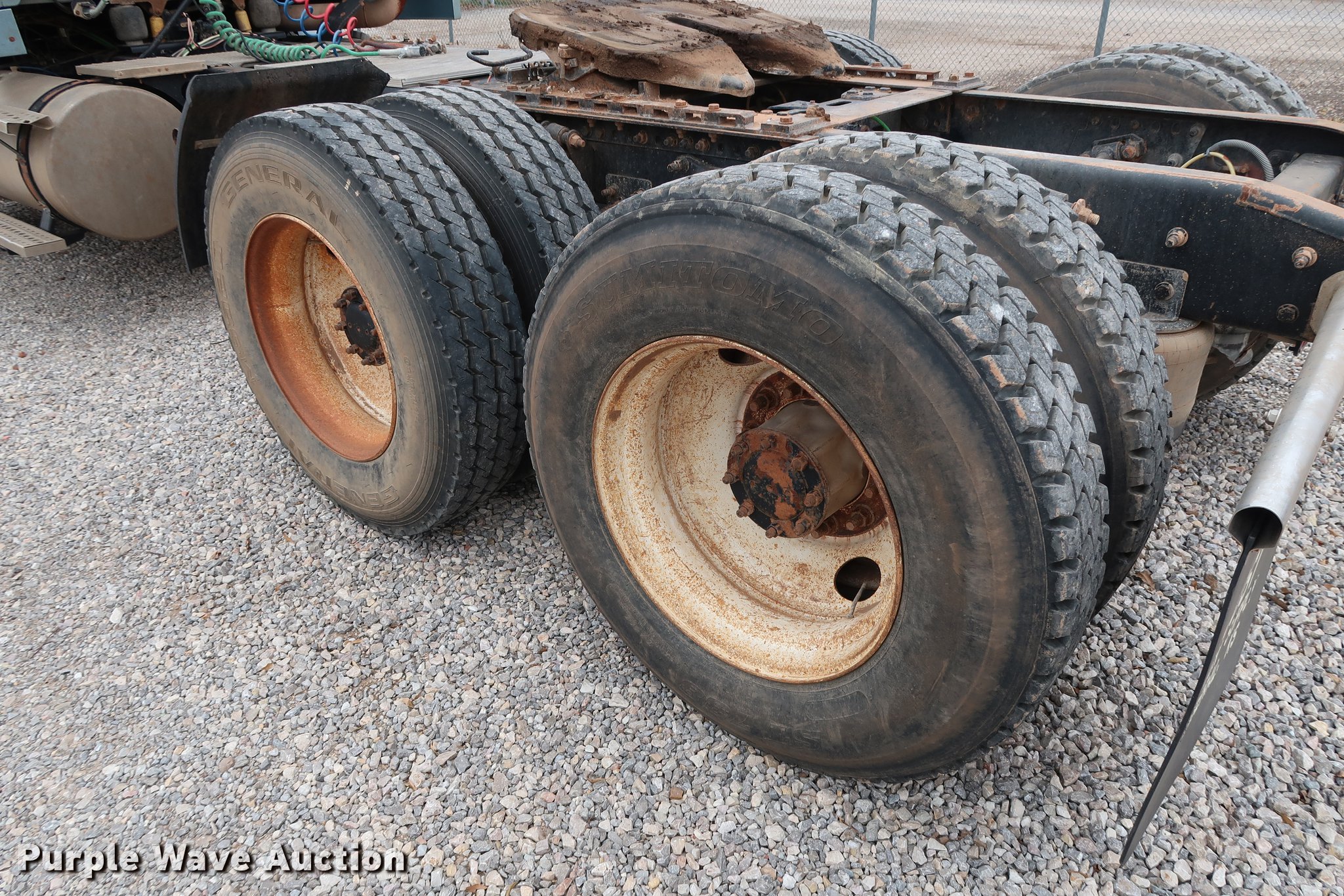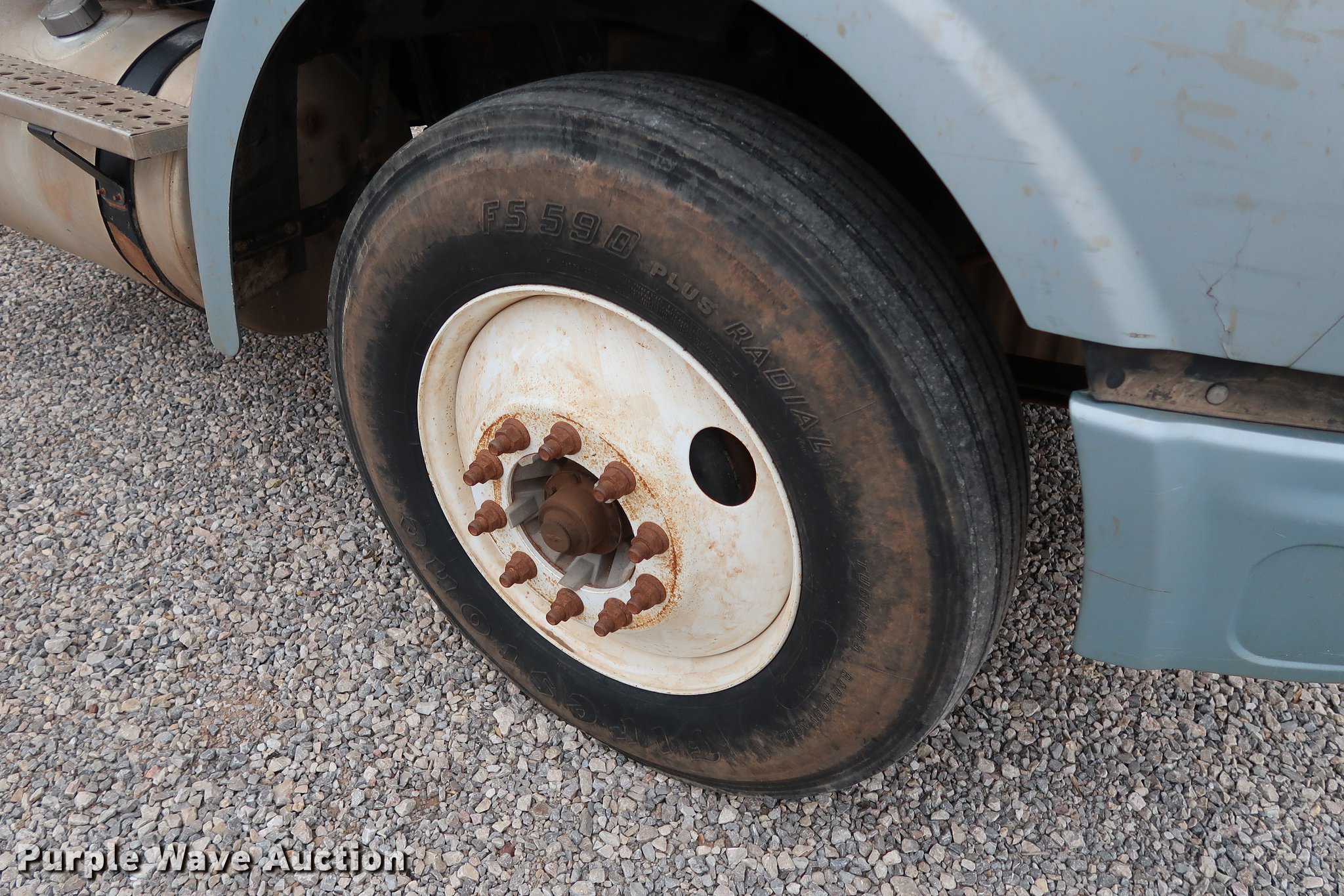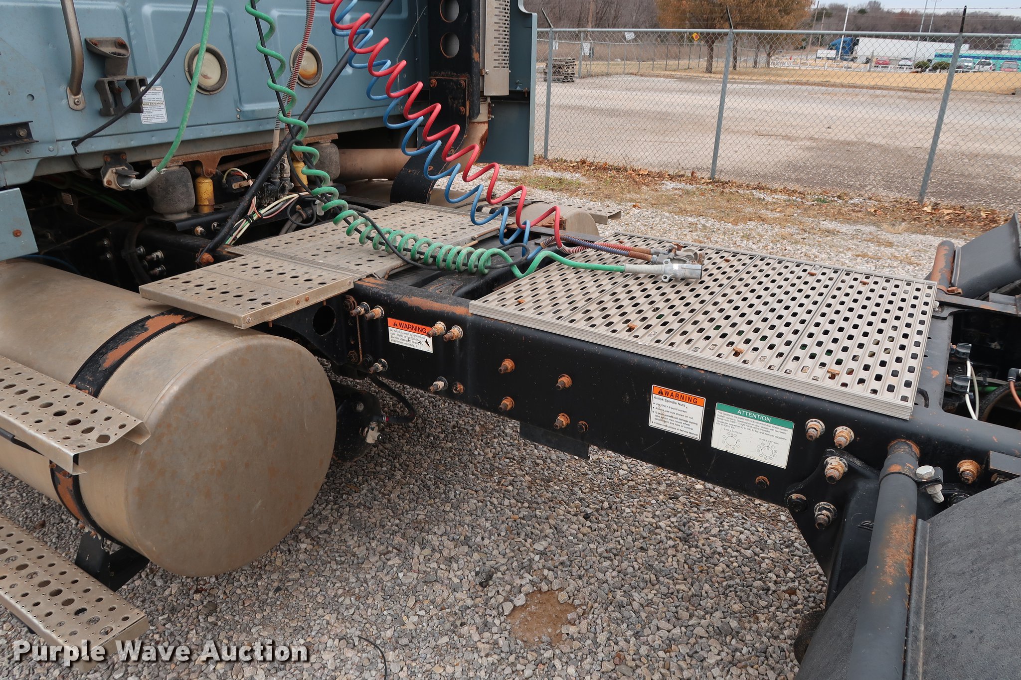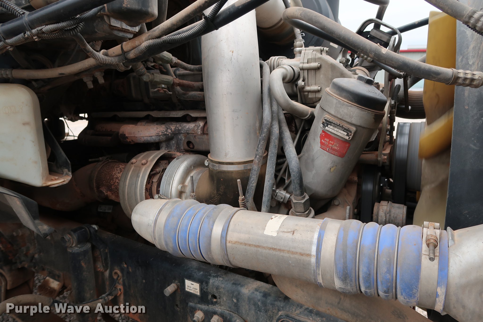 Purple Wave is selling a used Truck Tractor in Oklahoma. This item is a 2005 Sterling A-Line semi truck with the following: 523,475 miles on odometer, Mercedes Benz MBE4000 12.0L L6 turbo diesel engine, 450 HP, Serial 0460799852, Eaton Fuller Road Ranger 10 speed manual transmission, Tandem axle, Inter-axle differential lock, AC and heat, Cruise, AM/FM/CD, Heated mirrors, Air suspension seat, Air ride cab, Block heater, Front tow hooks, Exterior visor, Single rear exhaust stack, Aluminum deck plate, Air operated sliding fifth wheel plate, Dual fuel tanks, Quarter fenders, Mud flaps, 202" wheelbase, Air suspension, Air brakes, Engine brake, 11R24.5 tires, GVWR 52,000 lbs, FAWR 12,000 lbs, IAWR 20,000 lbs, RAWR 20,000 lbs, Check engine light illuminated