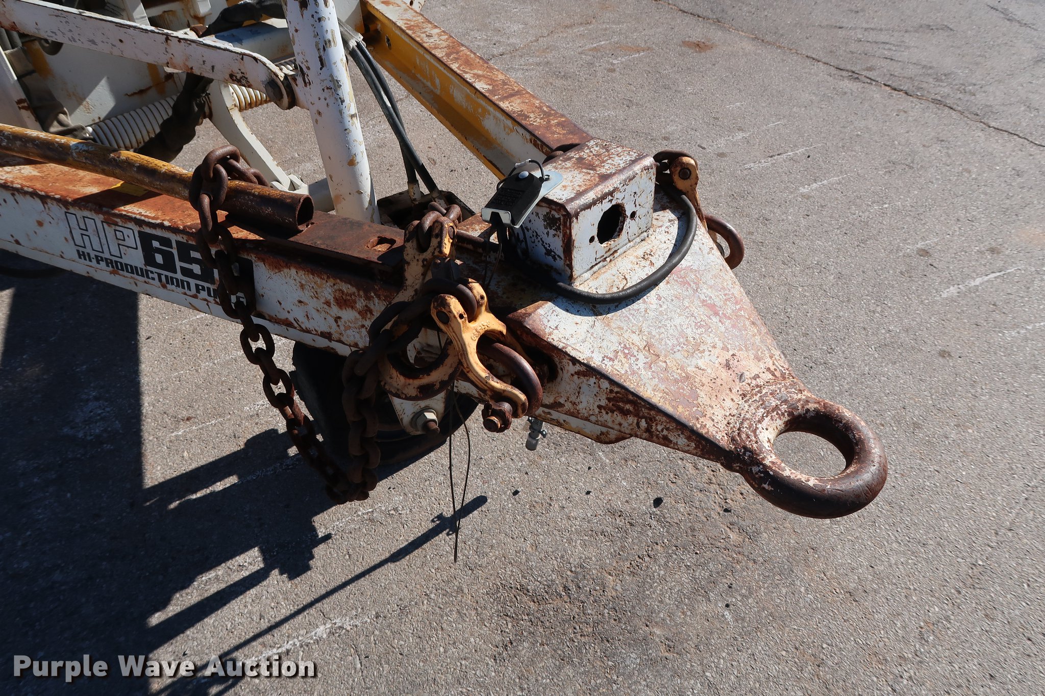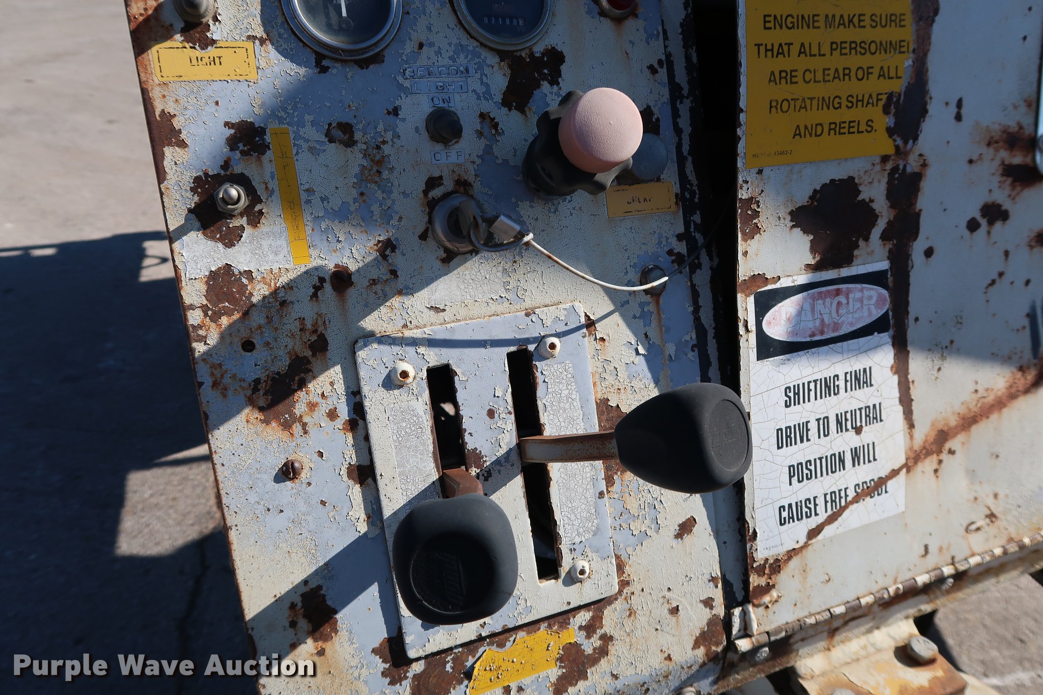 1991 Hogg Davis HP650 reel trailer. 16'L x 96"W overall dimensions, Four cylinder gas engine 2,180 hours on meter, Hydrastatic puller tensioner, Five valve hydraulic operation, 54"W x 96" diameter reel capacity, Pintle hitch, Spring suspension, Electric brakes, Steel wheels, 14/80R20 tires, GVWR 20,300 lbs. Transfer of ownership documentation will be a bill of sale. 1H9161319M1011004. Benco Machinery, LLC. 7600 N Bryant Ave. Oklahoma City, OK 73121