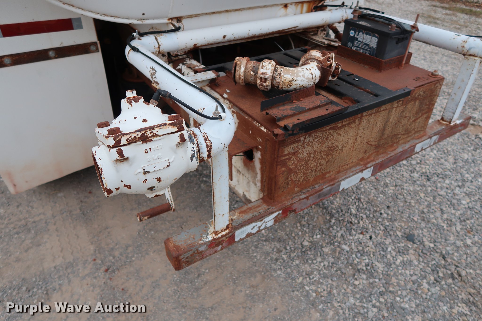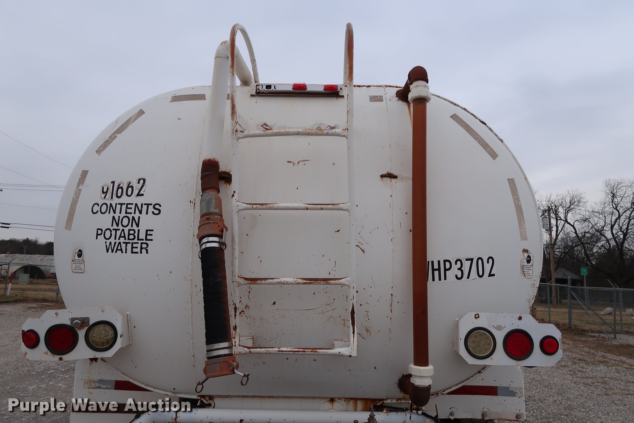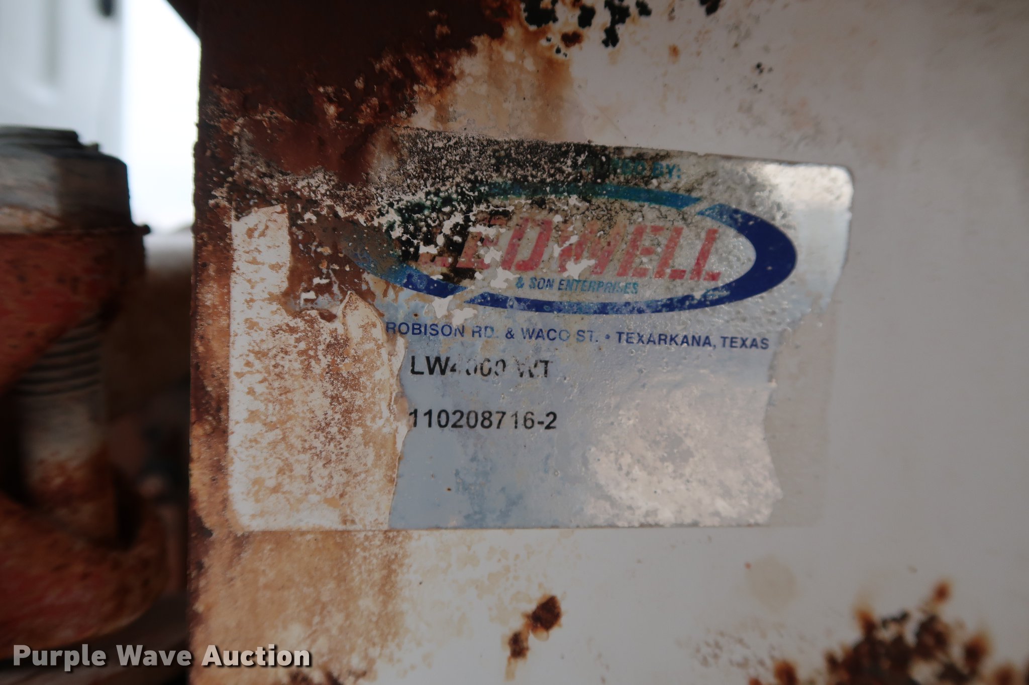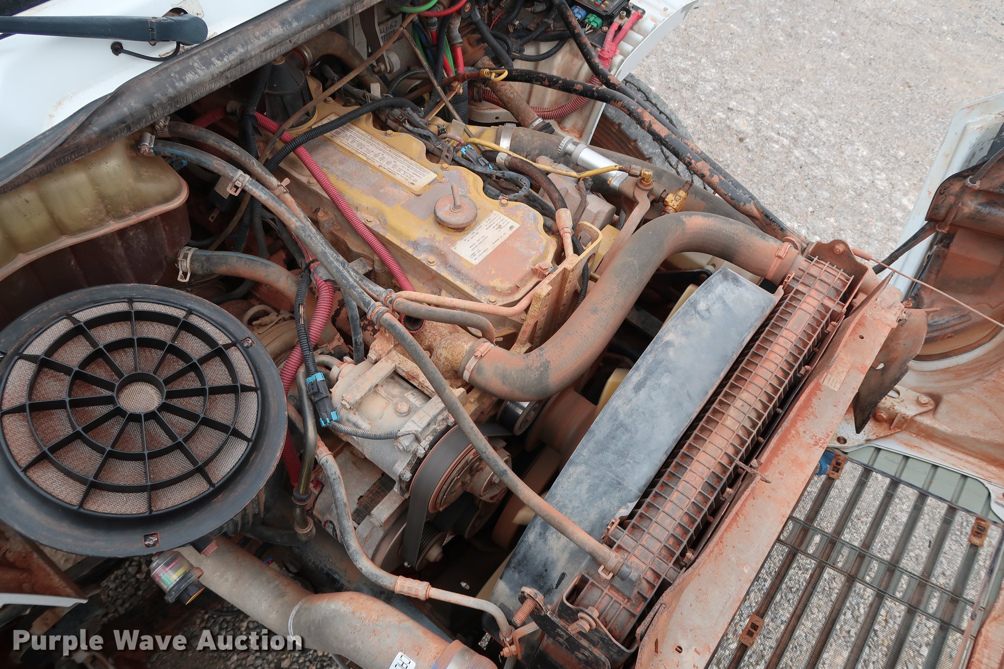Purple Wave is selling a used Tank Truck or Water Truck in Oklahoma. This item is a 2003 Freightliner Business Class M2 water truck with the following: 56,371 miles on odometer, Caterpillar 3126 7.2L L6 turbo diesel engine, 330 HP, Serial HEP04.35, Eaton fuller RT-8709B nine speed manual transmission, Tandem axle, Differential lock, AC and heat, Cruise, Power windows, Heated mirrors, Air suspension seat, Block heater, PTO, Front tow hooks, 2003 Ledwell LW4000WT tank bed, 16'L, 4,000 gallon capacity, Front and rear spray bars, Side and rear discharge, 2.5" plumbing, Top fill, Sight tube, Ladder, Serial 110208716-2, Dual fuel tanks, Air suspension, Air brakes, 196" wheelbase, 11R22.5 tires, GVWR 53,880 lbs