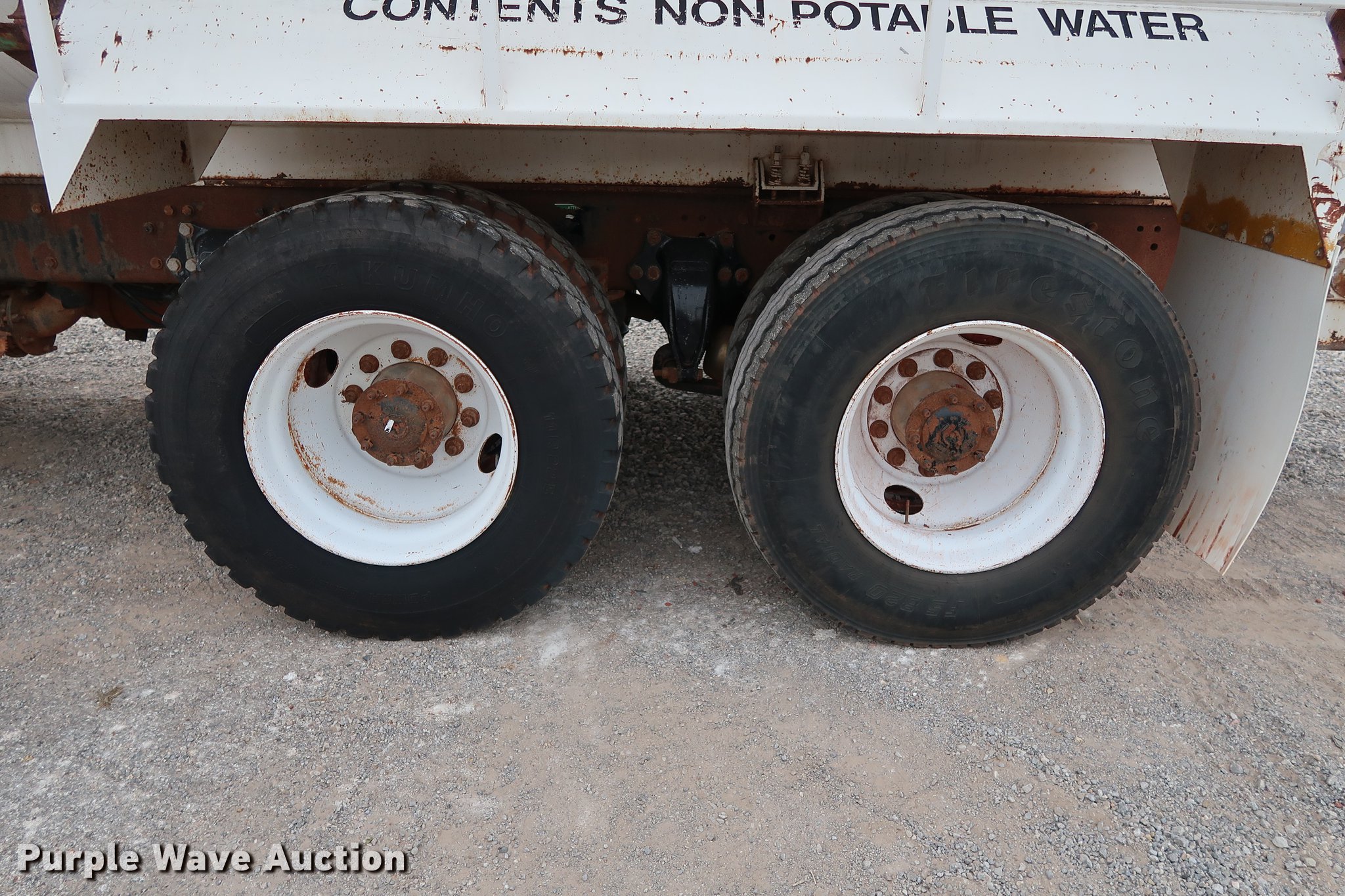 2003 Freightliner Business Class M2 water truck. 56,371 miles on odometer, Caterpillar 3126 7.2L L6 turbo diesel engine 330 HP, Serial HEP04.35, Eaton fuller RT-8709B nine speed manual transmission, Tandem axle, Differential lock, AC and heat, Cruise, Power windows, Heated mirrors, Air suspension seat, Block heater, PTO, Front tow hooks, 2003 Ledwell LW4000WT tank bed 16'L, 4,000 gallon capacity, Front and rear spray bars, Side and rear discharge, 2.5" plumbing, Top fill, Sight tube, Ladder, Serial 110208716-2, Dual fuel tanks, Air suspension, Air brakes, 196" wheelbase, 11R22.5 tires, GVWR 53,880 lbs. Oklahoma title. Title distribution may be delayed up to 30 days from verification of funds. 1FVHCYAK33HK91662. Benco Machinery, LLC. 7600 N Bryant Ave. Oklahoma City, OK 73121