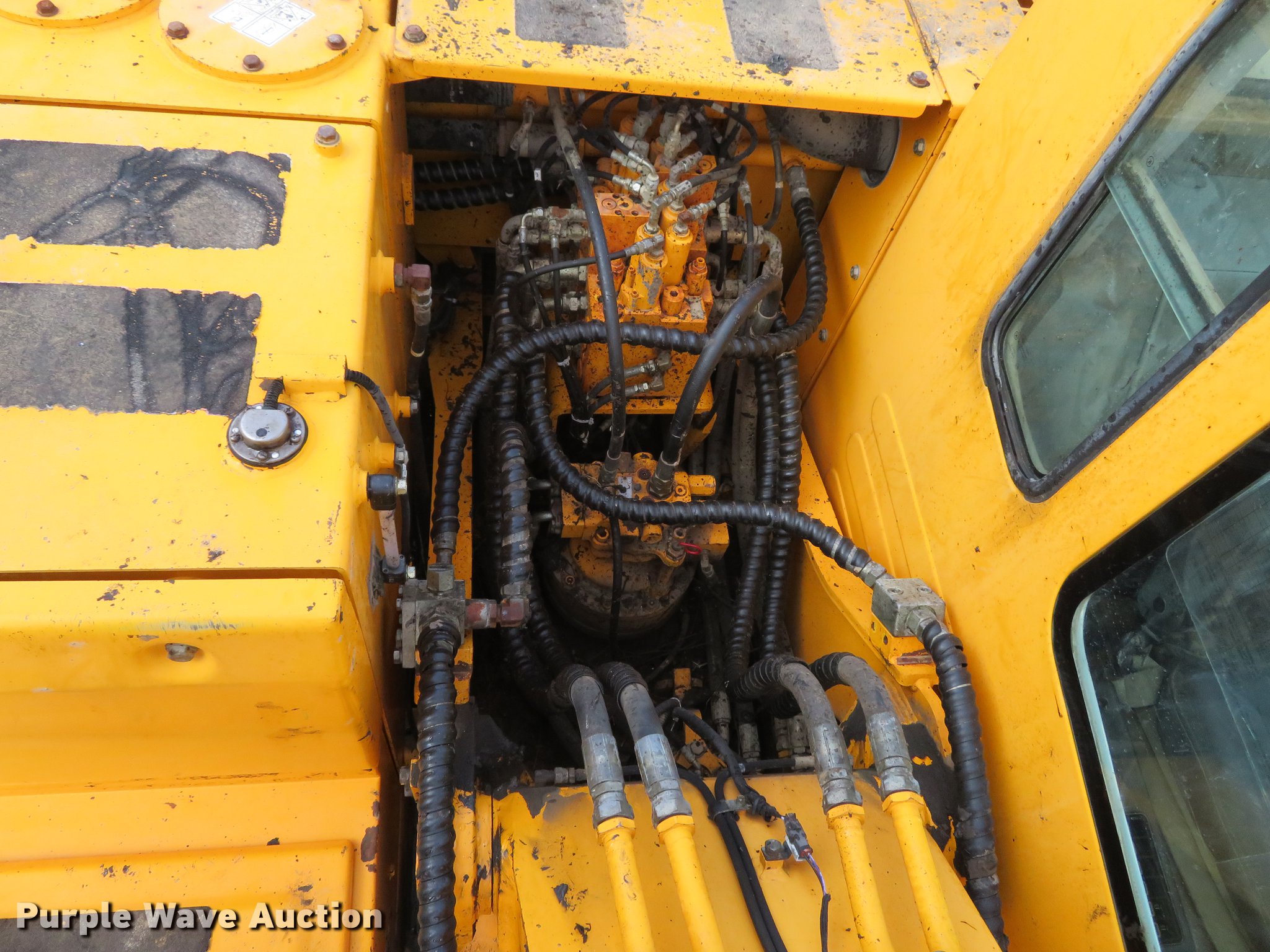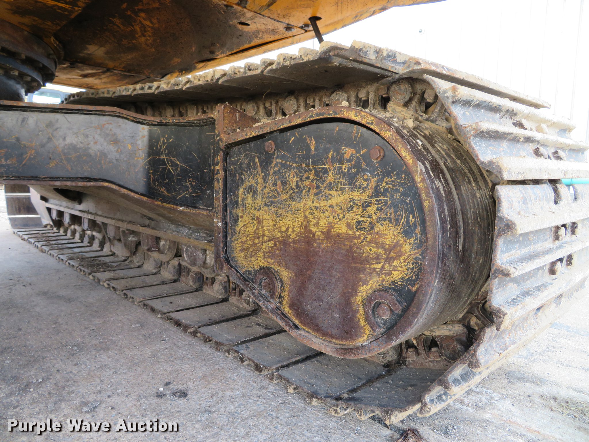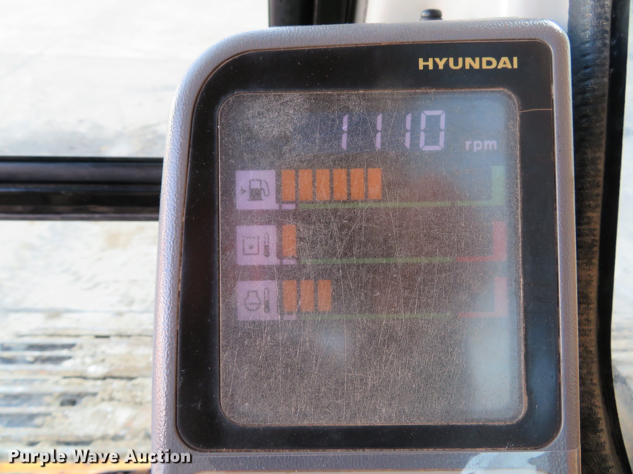 Purple Wave is selling a used Hydraulic Excavator in Missouri. This item is a 2004 Hyundai Robex 140LC-7 excavator with the following: 9,154 hours on meter, Cummins B3.9 four cylinder turbo diesel engine, 115 HP, Two speed hydrostatic transmission, EROPS, AC and heat, AM/FM, Suspension seat, Pattern changer, Front work lights, Travel alarm, Standard boom, 10' stick length, 44"W bucket, (5) teeth, Side cutters, Geth 23"W bucket, (3) teeth, Auxiliary hydraulics, 23.5"W steel triple grouser track pads, Maintenance records available upon request, Transmission will not shift out of low, Non-operational radio, Left track will not tension up with grease, Serial N40611565, Unit# E305