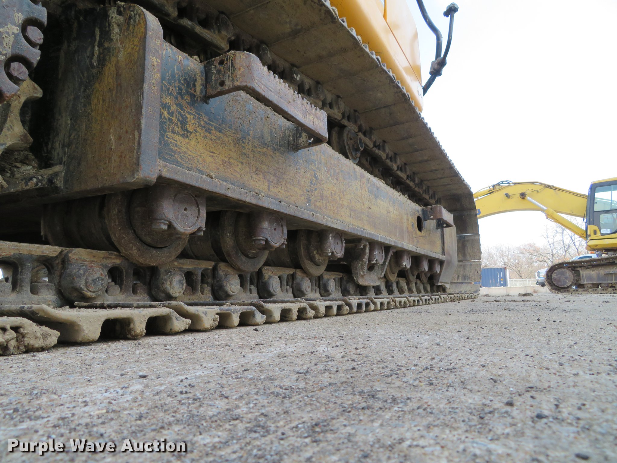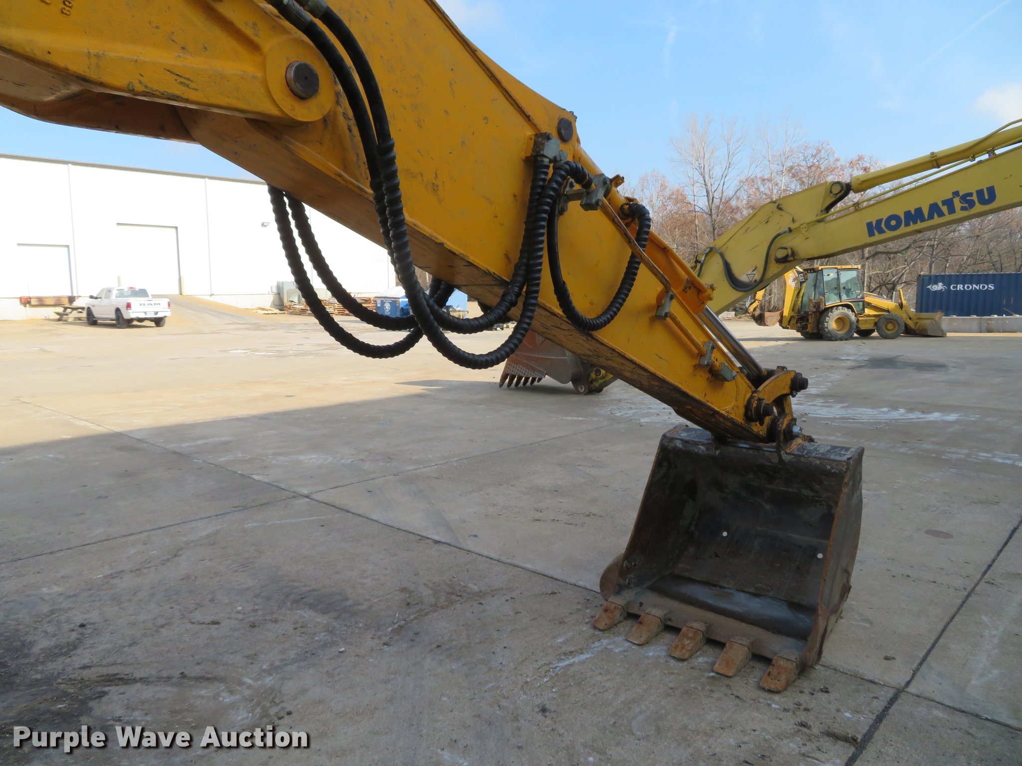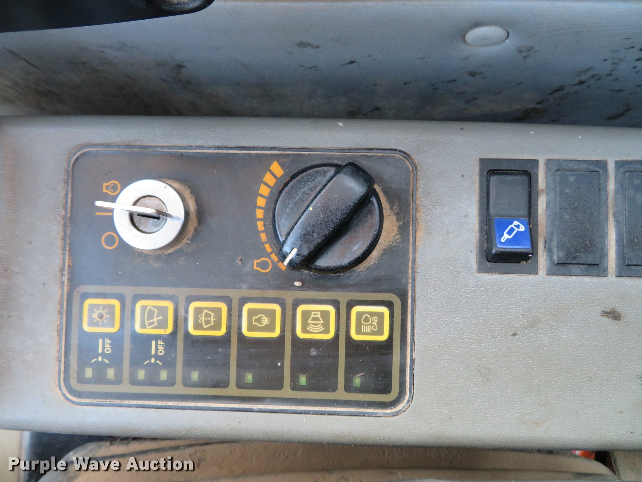 Purple Wave is selling a used Hydraulic Excavator in Missouri. This item is a 2004 Hyundai Robex 140LC-7 excavator with the following: 9,154 hours on meter, Cummins B3.9 four cylinder turbo diesel engine, 115 HP, Two speed hydrostatic transmission, EROPS, AC and heat, AM/FM, Suspension seat, Pattern changer, Front work lights, Travel alarm, Standard boom, 10' stick length, 44"W bucket, (5) teeth, Side cutters, Geth 23"W bucket, (3) teeth, Auxiliary hydraulics, 23.5"W steel triple grouser track pads, Maintenance records available upon request, Transmission will not shift out of low, Non-operational radio, Left track will not tension up with grease, Serial N40611565, Unit# E305