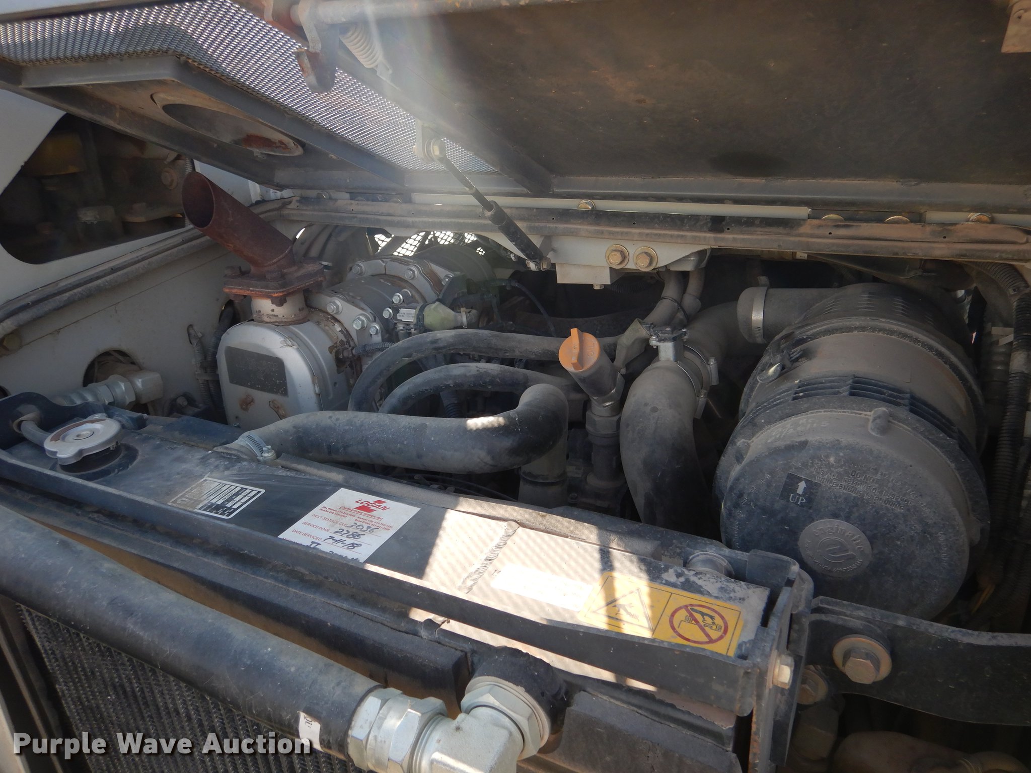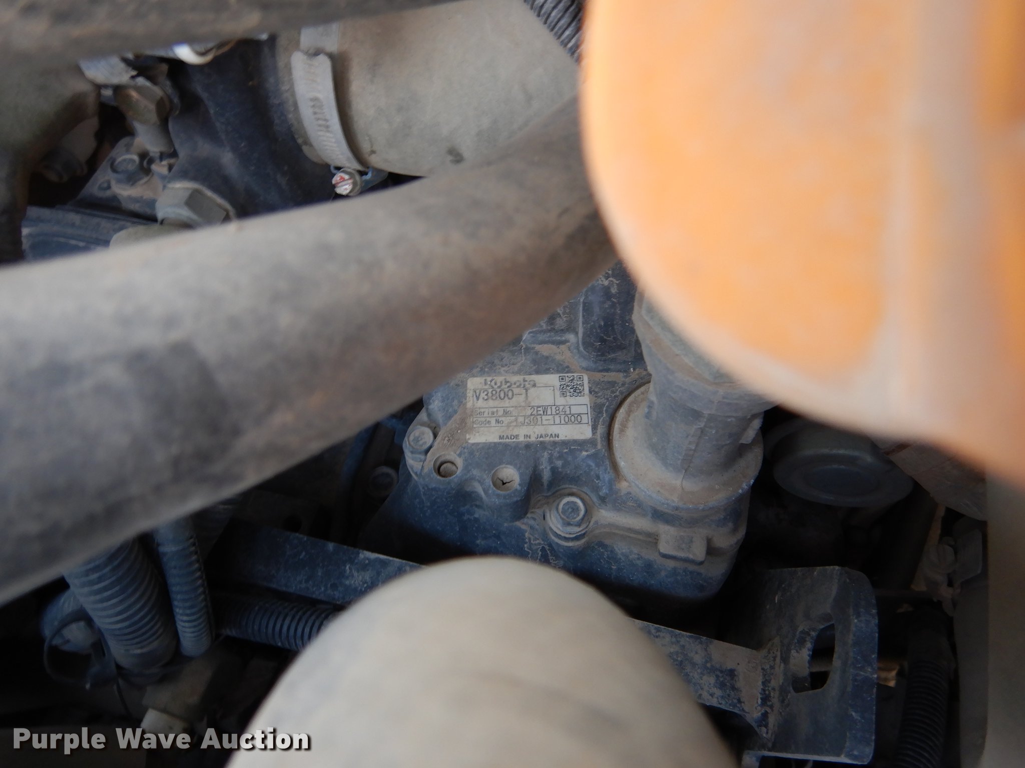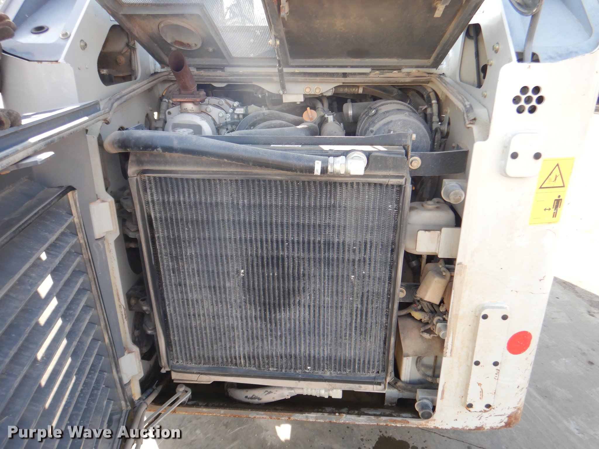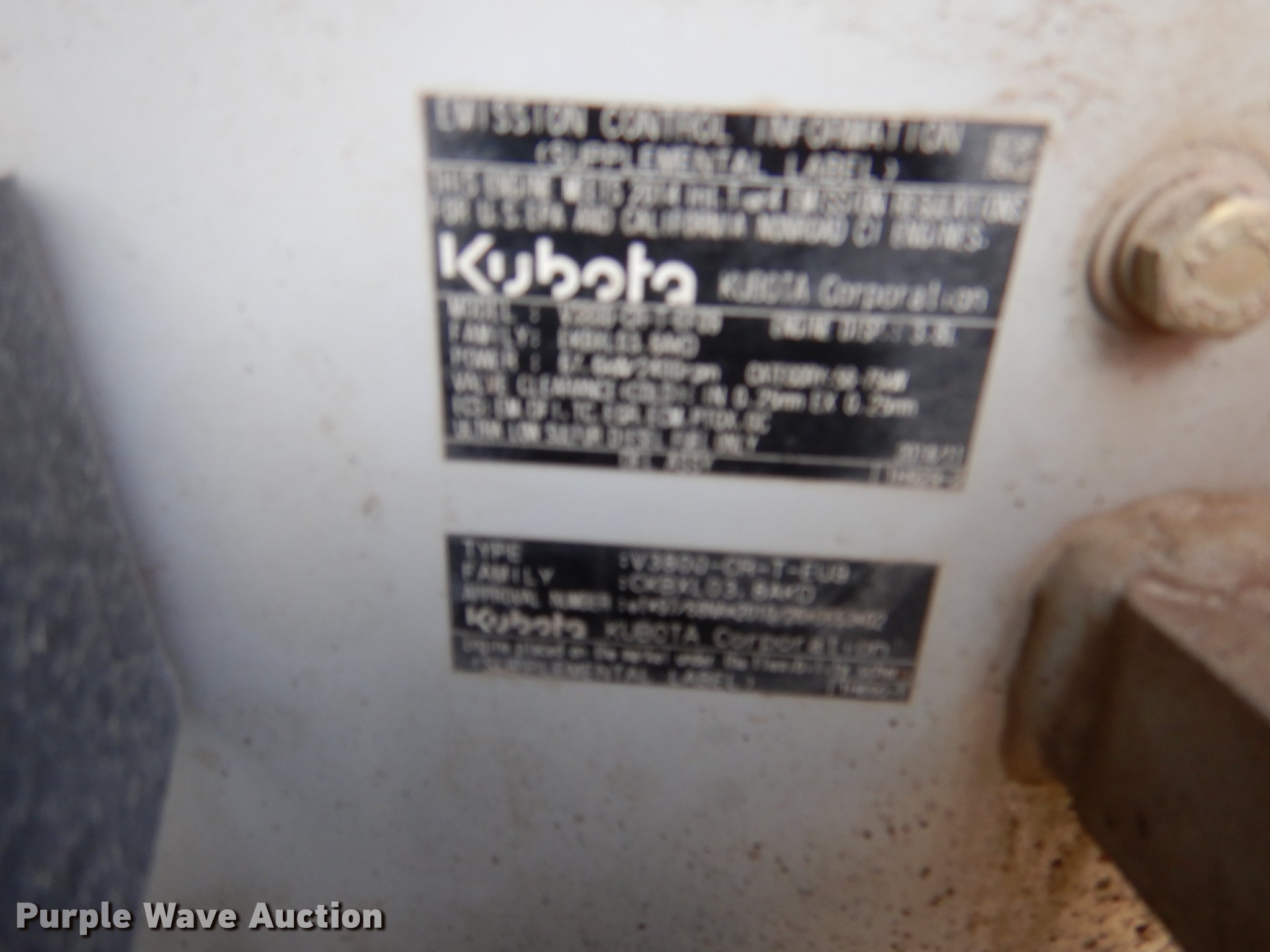 Purple Wave is selling a used Skid Steer Loader in Kansas. This item is a 2015 Takeuchi TL10 skid steer with the following: 2,894 hours on meter, Kubota V3800-T four cylinder turbo diesel engine, 92 HP, Serial 2EW1841, Two speed hydrostatic transmission, Enclosed cab, AC and heat, AM/FM, Joystick controls, EMS panel, Spring suspension seat, Wipers, Front and rear work lights, Backup alarm, Hydraulic quick coupler, Auxiliary hydraulics, Auxiliary electrical outlet, 18 tracks, Serial 201001726