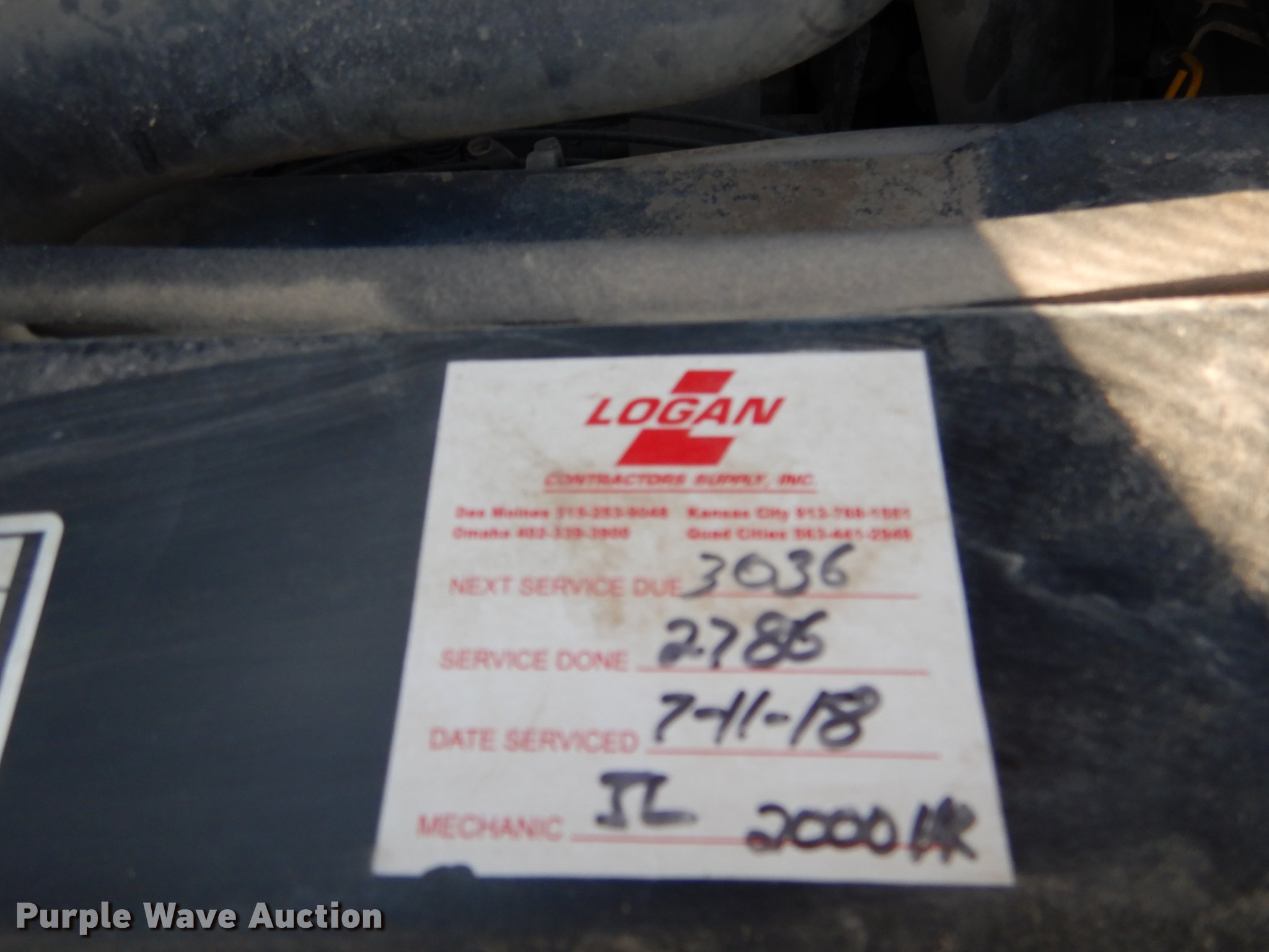 2015 Takeuchi TL10 skid steer. 2,894 hours on meter, Kubota V3800-T four cylinder turbo diesel engine 92 HP, Serial 2EW1841, Two speed hydrostatic transmission, Enclosed cab AC and heat, AM/FM, Joystick controls, EMS panel, Spring suspension seat, Wipers, Front and rear work lights, Backup alarm, Hydraulic quick coupler, Auxiliary hydraulics, Auxiliary electrical outlet, 18 tracks, Serial 201001726. Logan Contractor Supply. 1325 S Enterprise St. Olathe, KS 66061