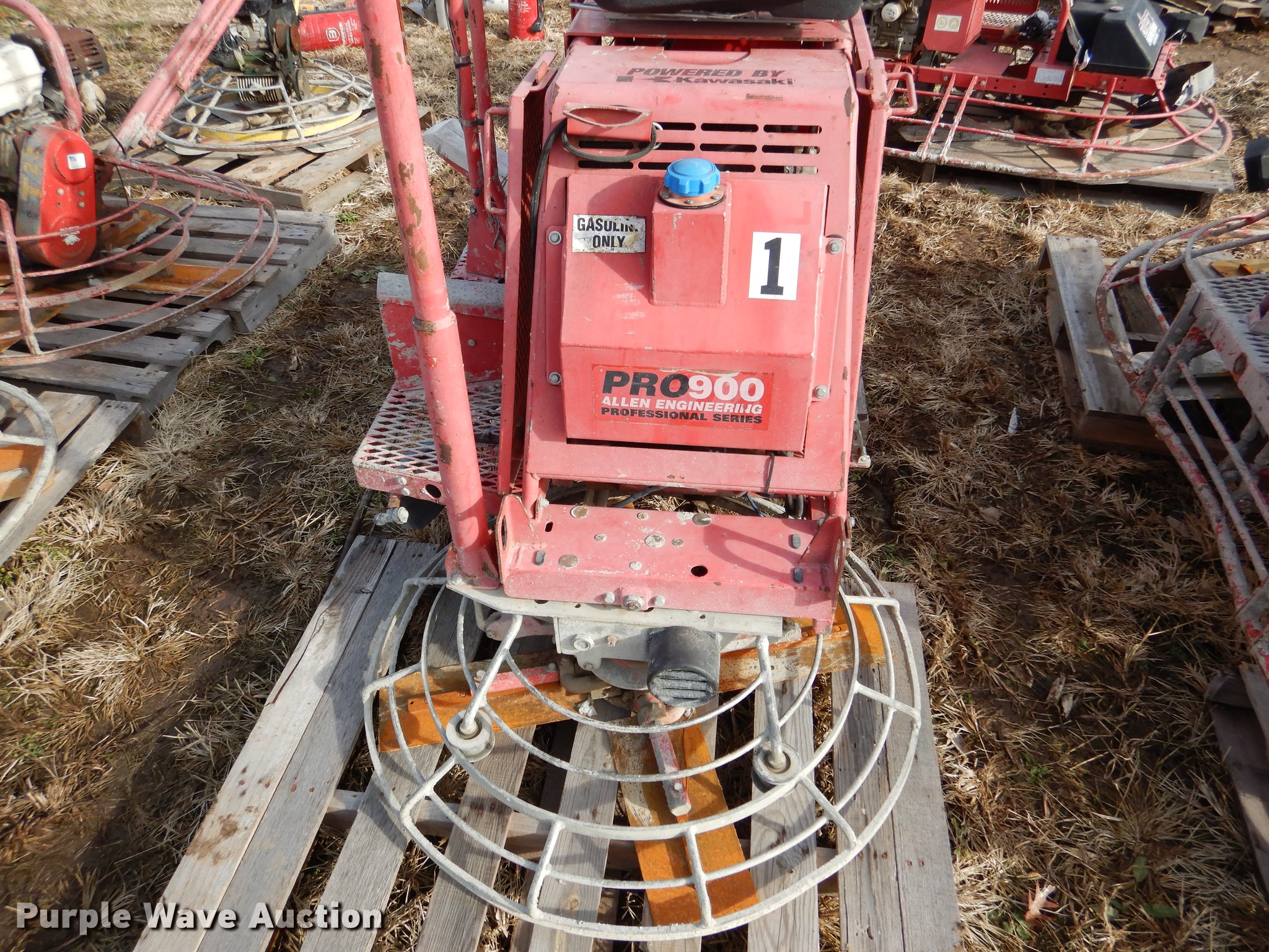 Purple Wave is selling a used Concrete Equip. or Acces. in Missouri. This item is a Allen Pro 900 power trowel with the following: 151 hours on meter, Kawasaki 617cc v-twin gas engine, Two stick controls, 7' working width, Work lights