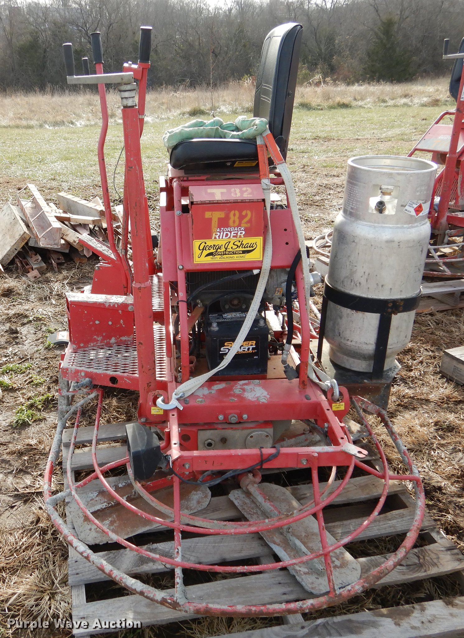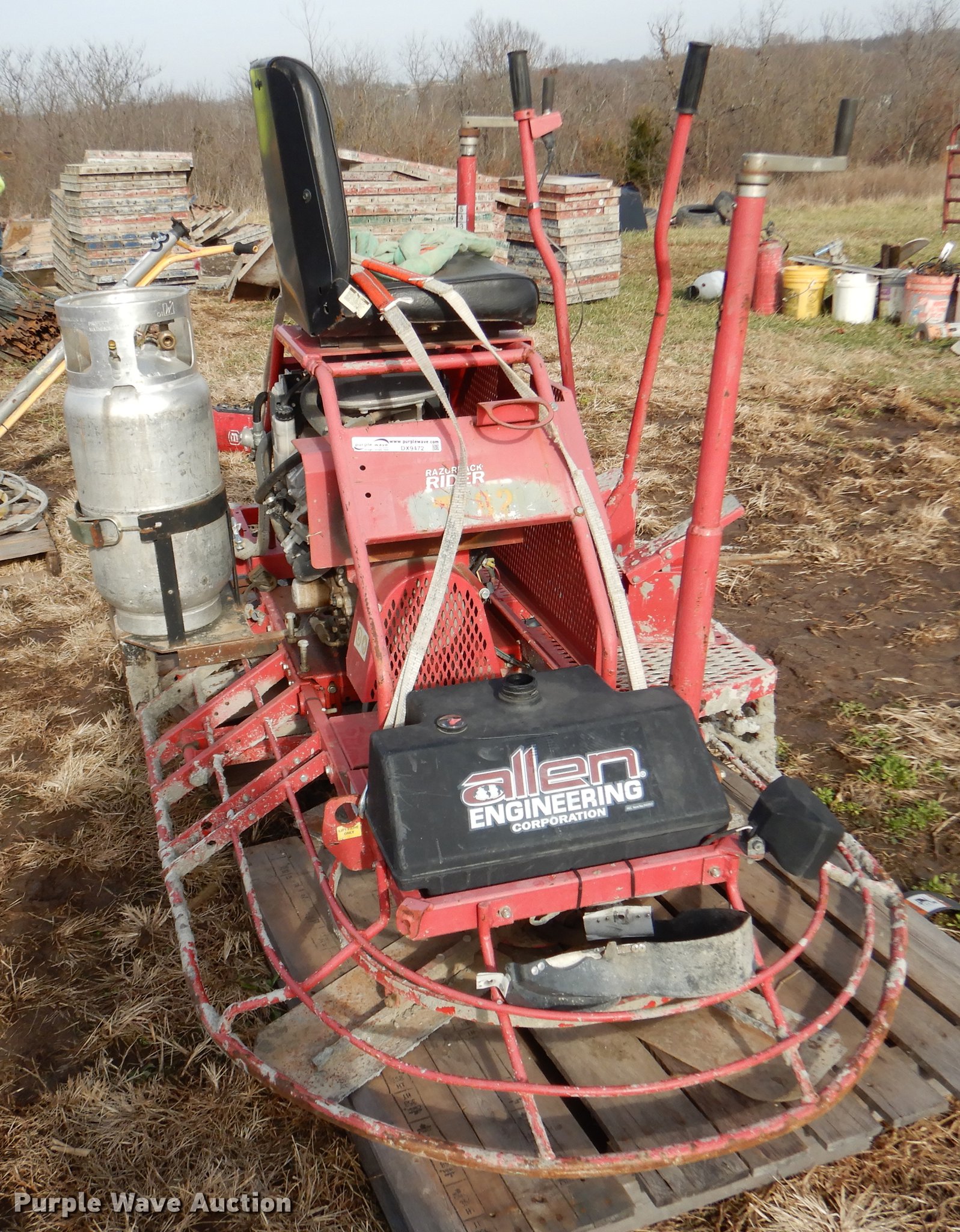 Purple Wave is selling a used Concrete Equip. or Acces. in Missouri. This item is a Allen Razorback power trowel with the following: 236 hours on meter, Kawasaki 745cc v-twin propane engine, Two stick controls, 8' working width, Water reservoir, Work lights