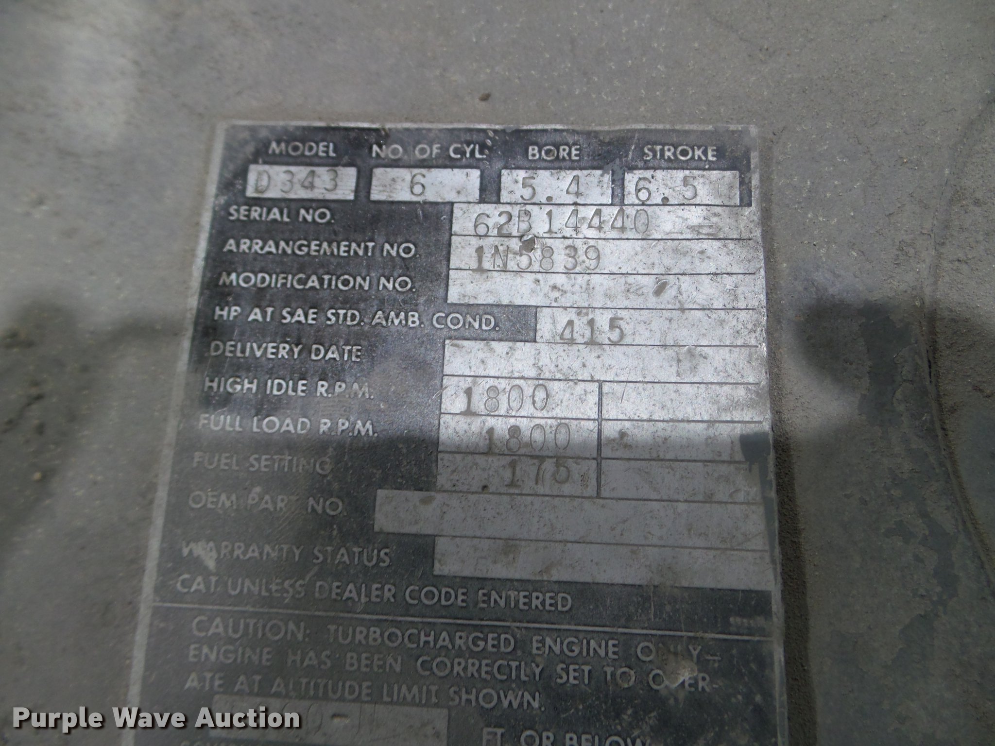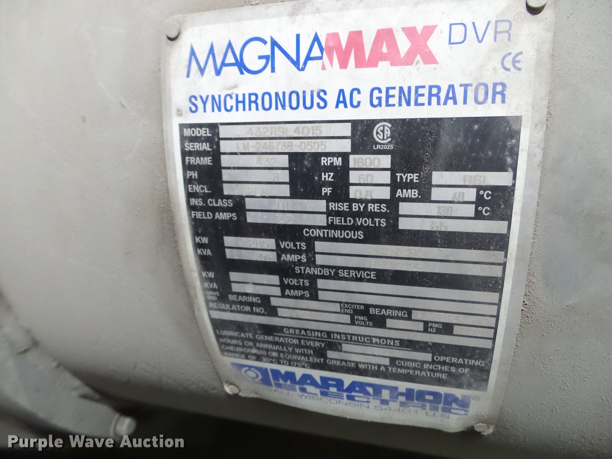 Purple Wave is selling a used Generator Set in Iowa. This item is a Magnamax 432RSL4015 generator with the following: Caterpillar D343 six cylinder turbo diesel engine, Serial 62B14440, 285 kW, Three phase