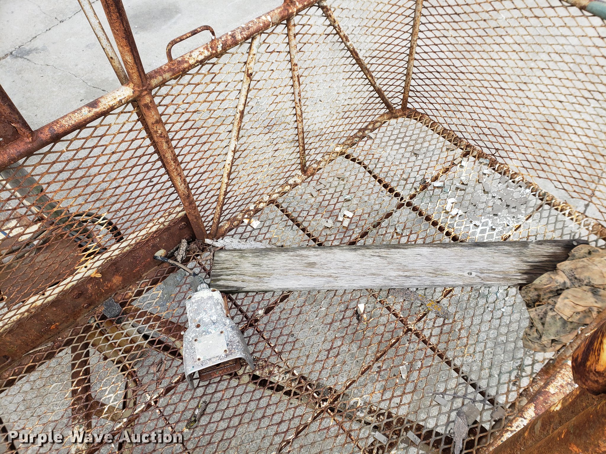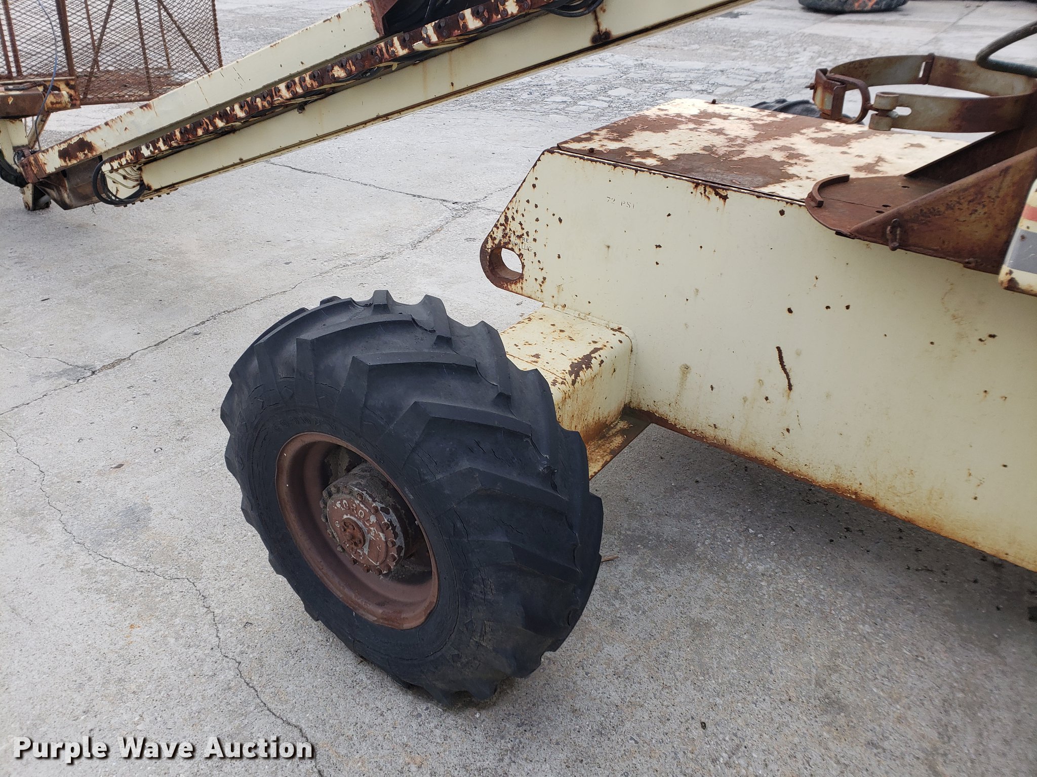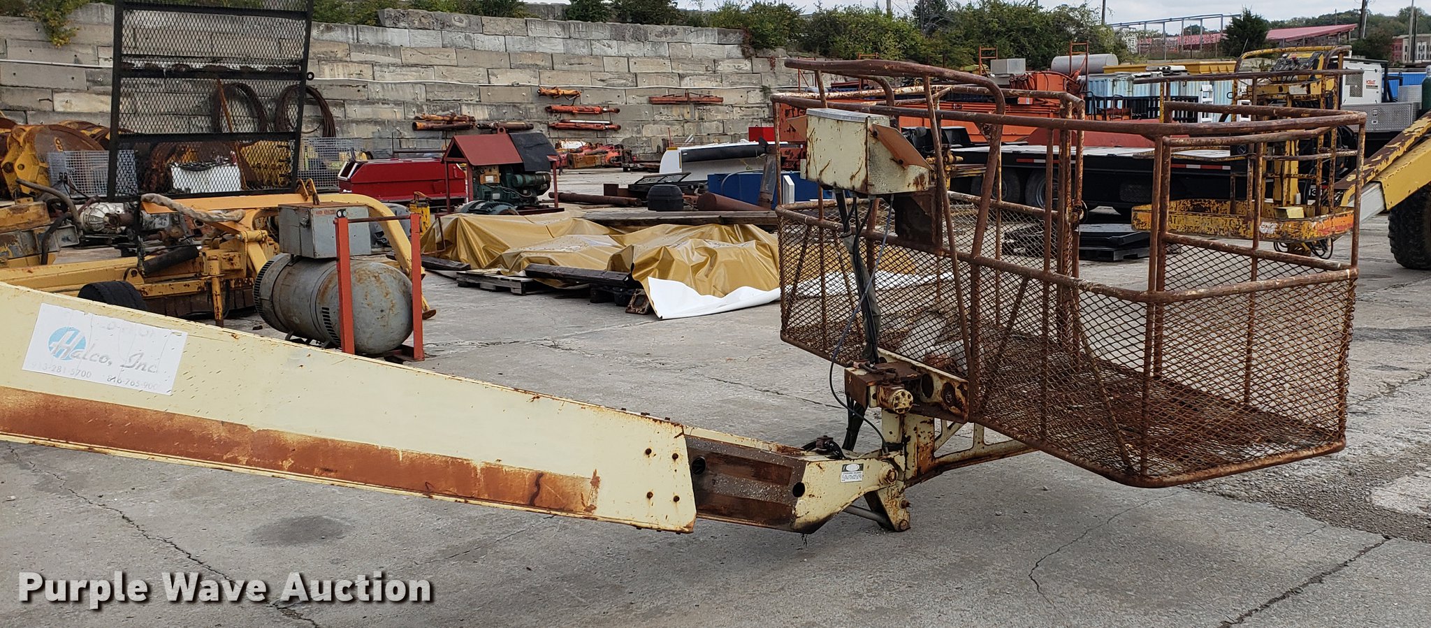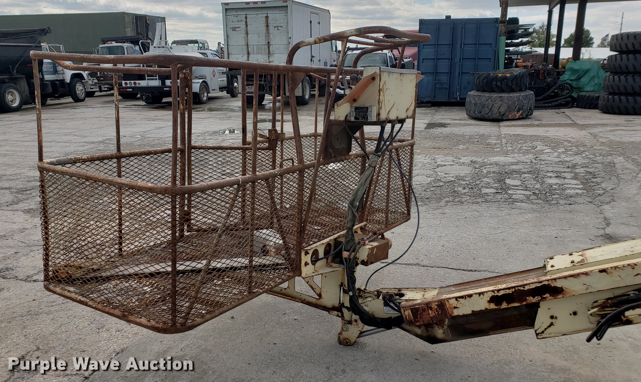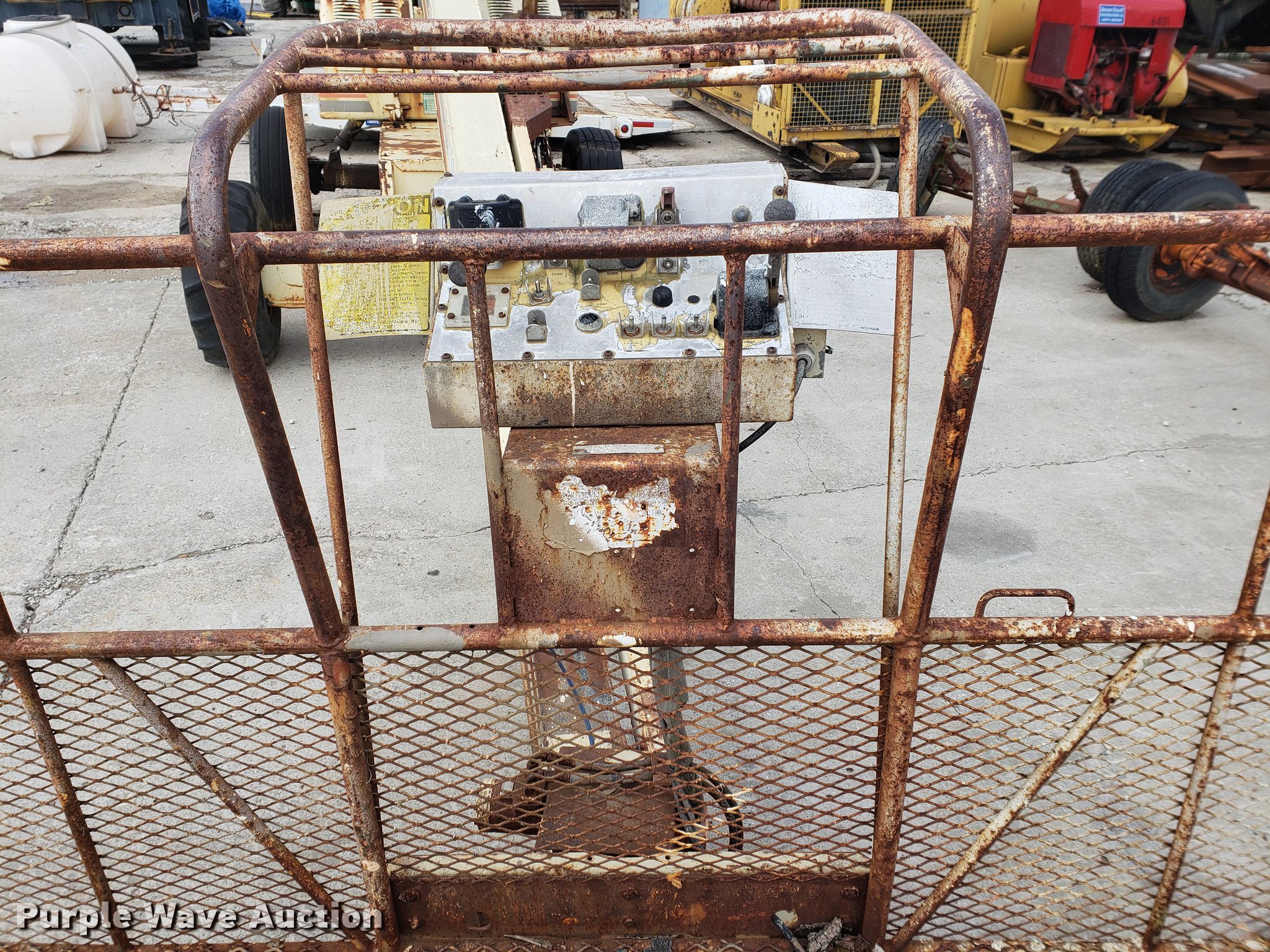 JLG 40H boom lift. Four cylinder propane engine, Hydrostatic transmission, 40' max lift height, 500 lbs max lift capacity, 36" x 8' platform 42"H hand rails, 12.5-15 tires, Flat tires, Serial 0308509530. Damon Pursell Construction Company. 300 N Church Rd. Liberty, MO 64068